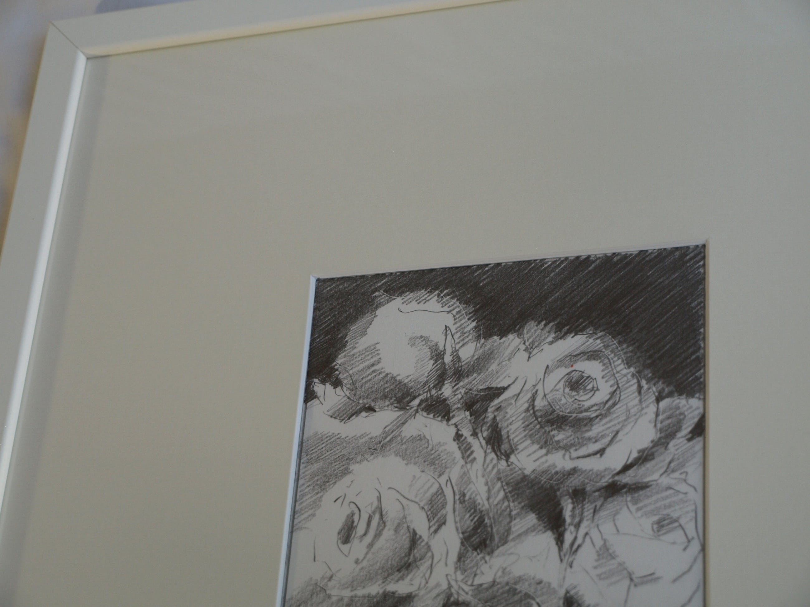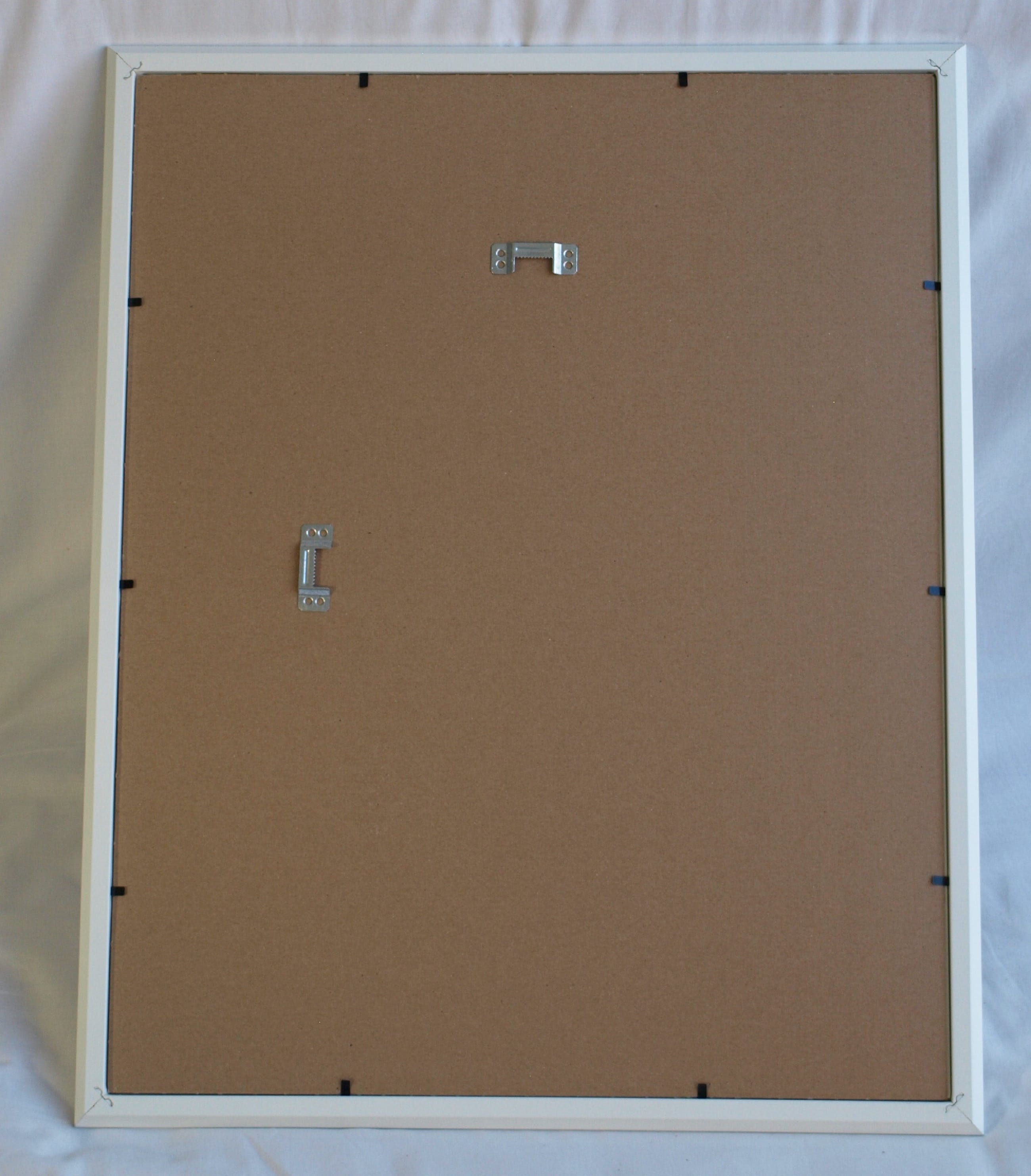 een eenvoudige witte lijst met een kartonnen passe-partout.