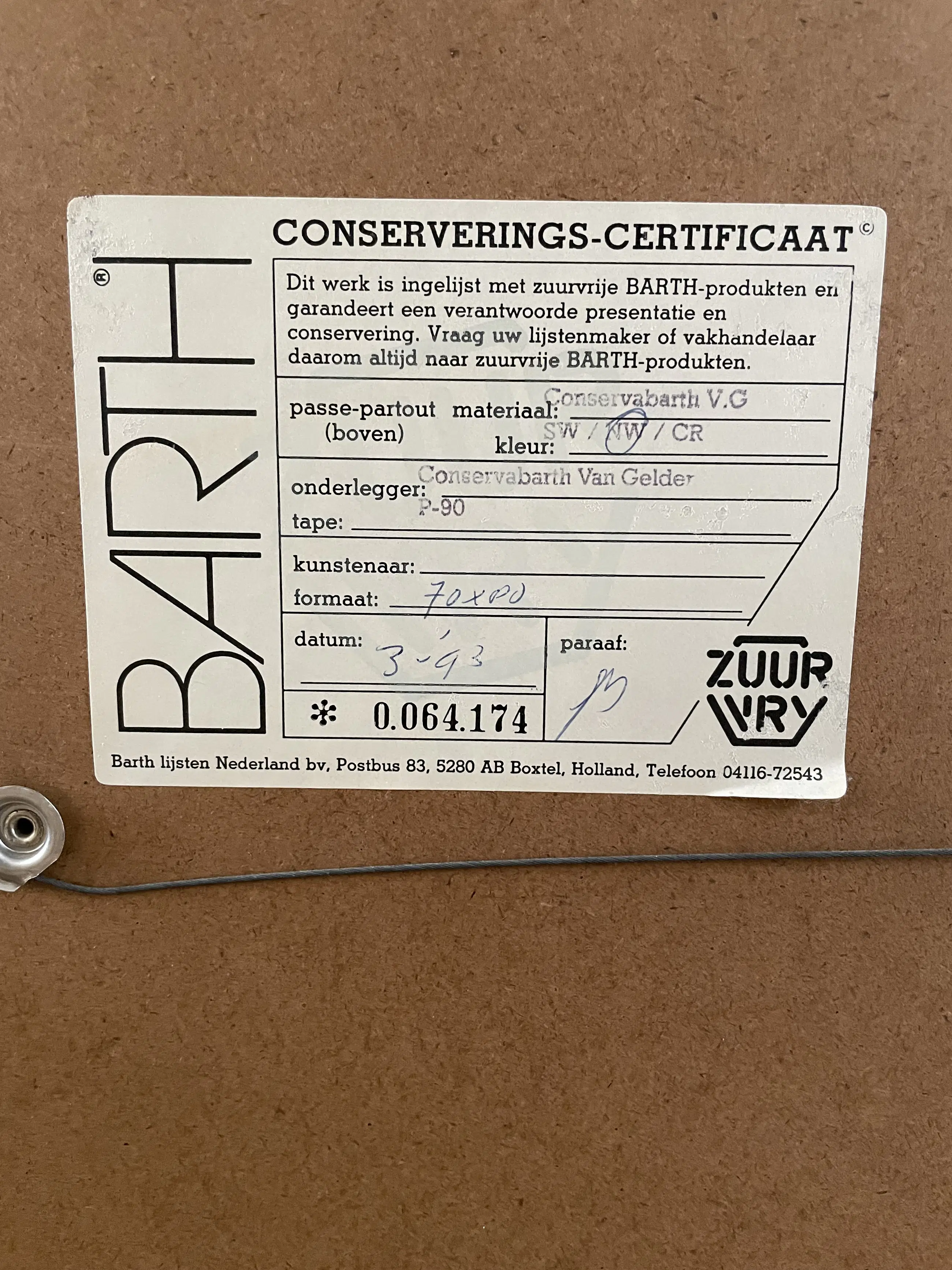 Fraai ingelijst werk Herkomst: uit ING collectie (zelf gekocht in veiling) Conserveringscertificaat aanwezig