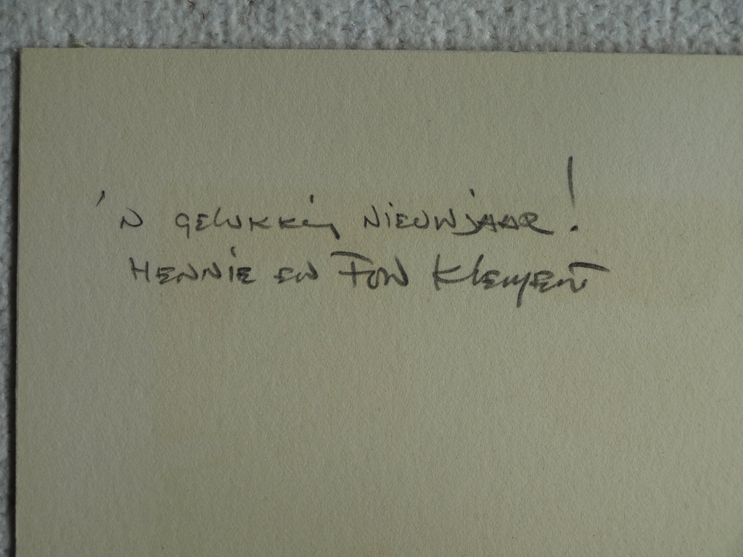 gedateerd met potlood en ook met een geschreven boodschap (“een Gelukkig Nieuwjaar!’)