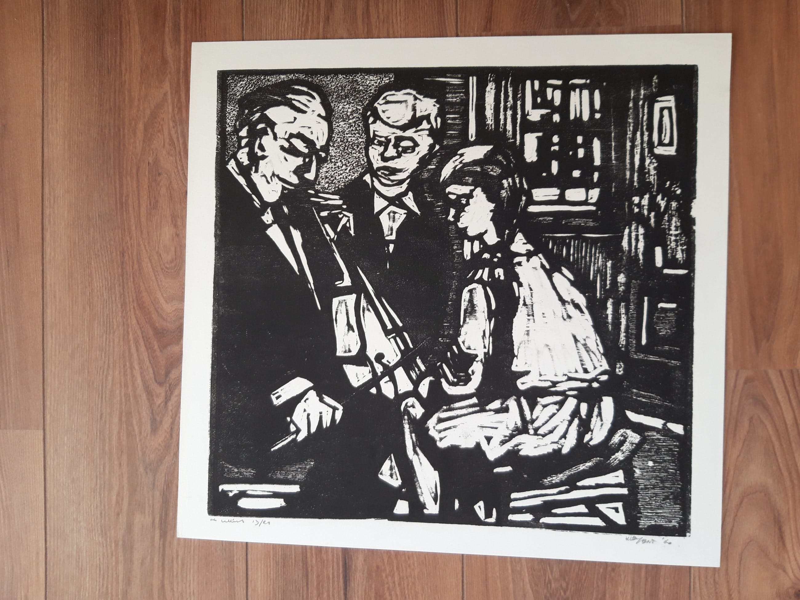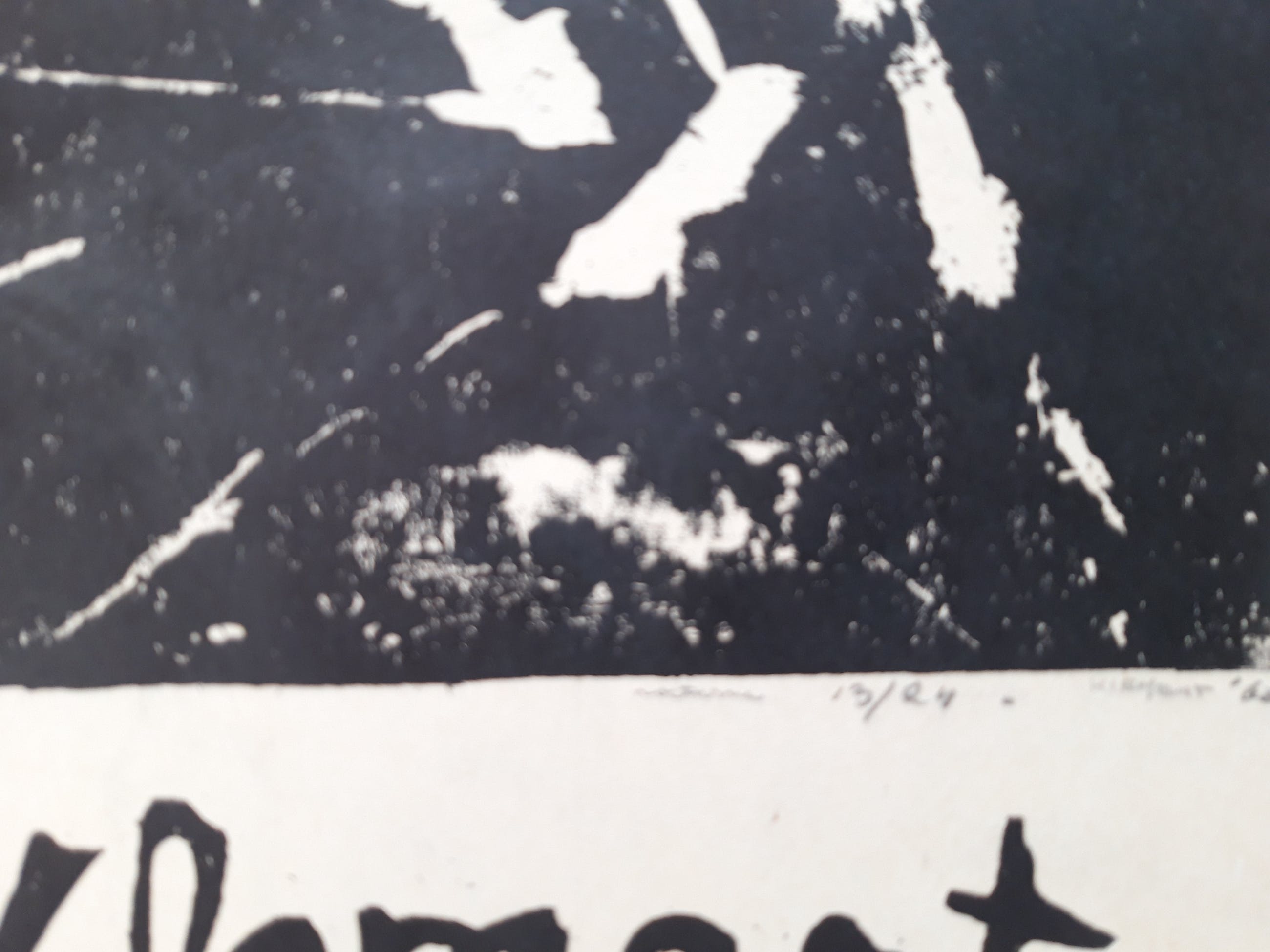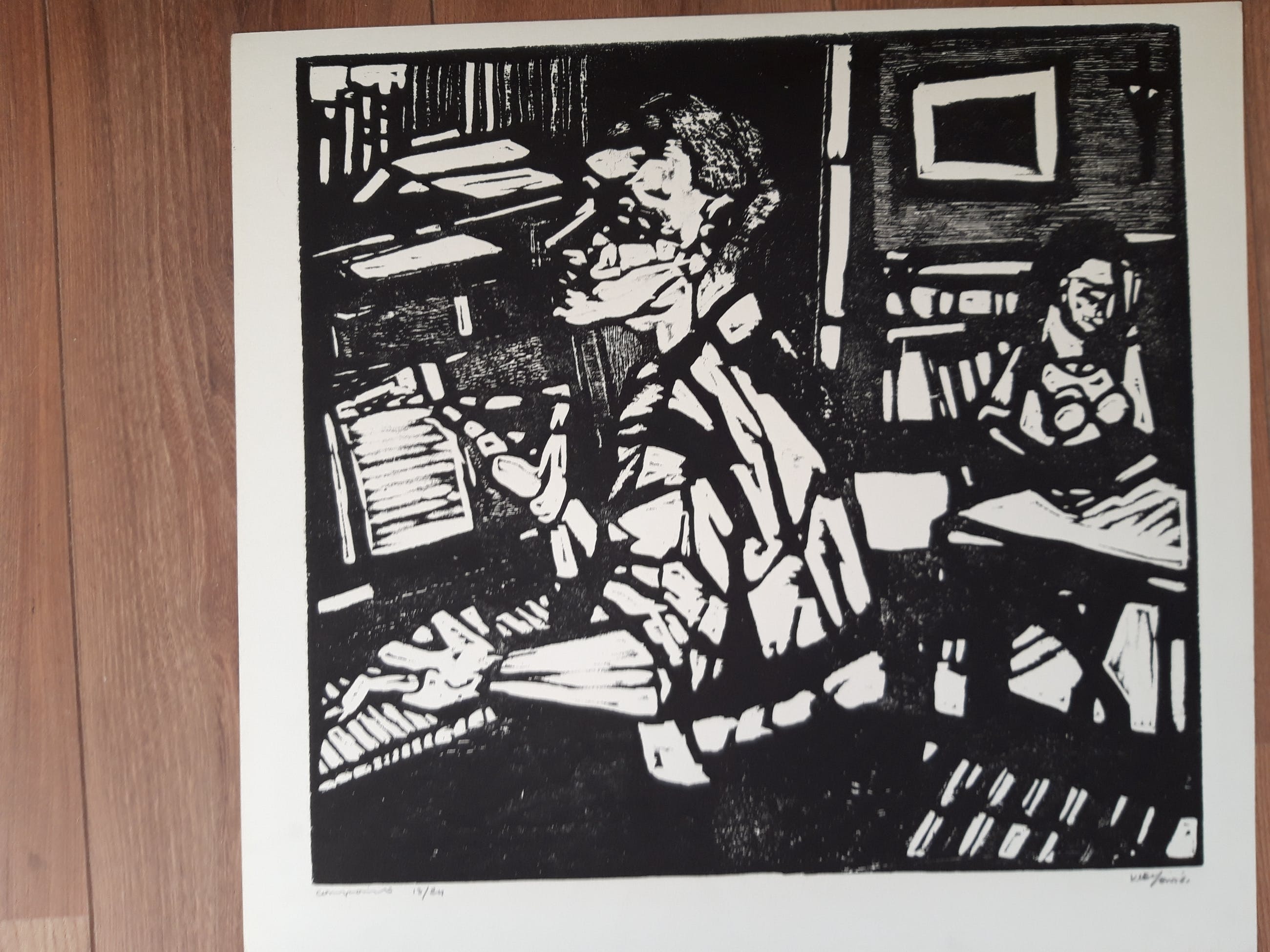 8 fraaie linosneden -waarvan 3 stuks in kleur en 5 stuks in zwart-wit- alle met de hand gesigneerd- in een ook met de hand gesigneerde zwart-wit map van de kunstenaar FON KLEMENT - in goede staat - 1960