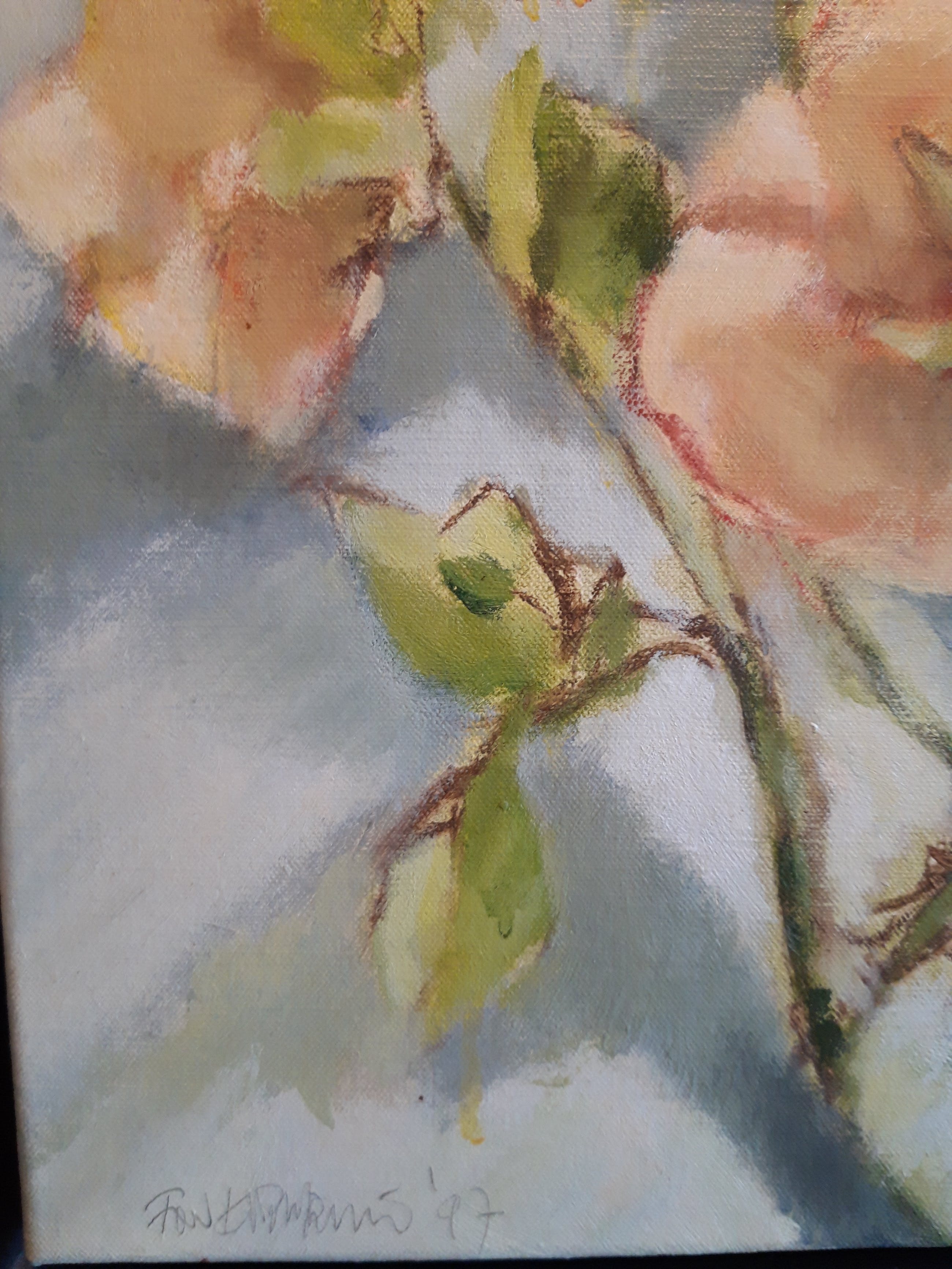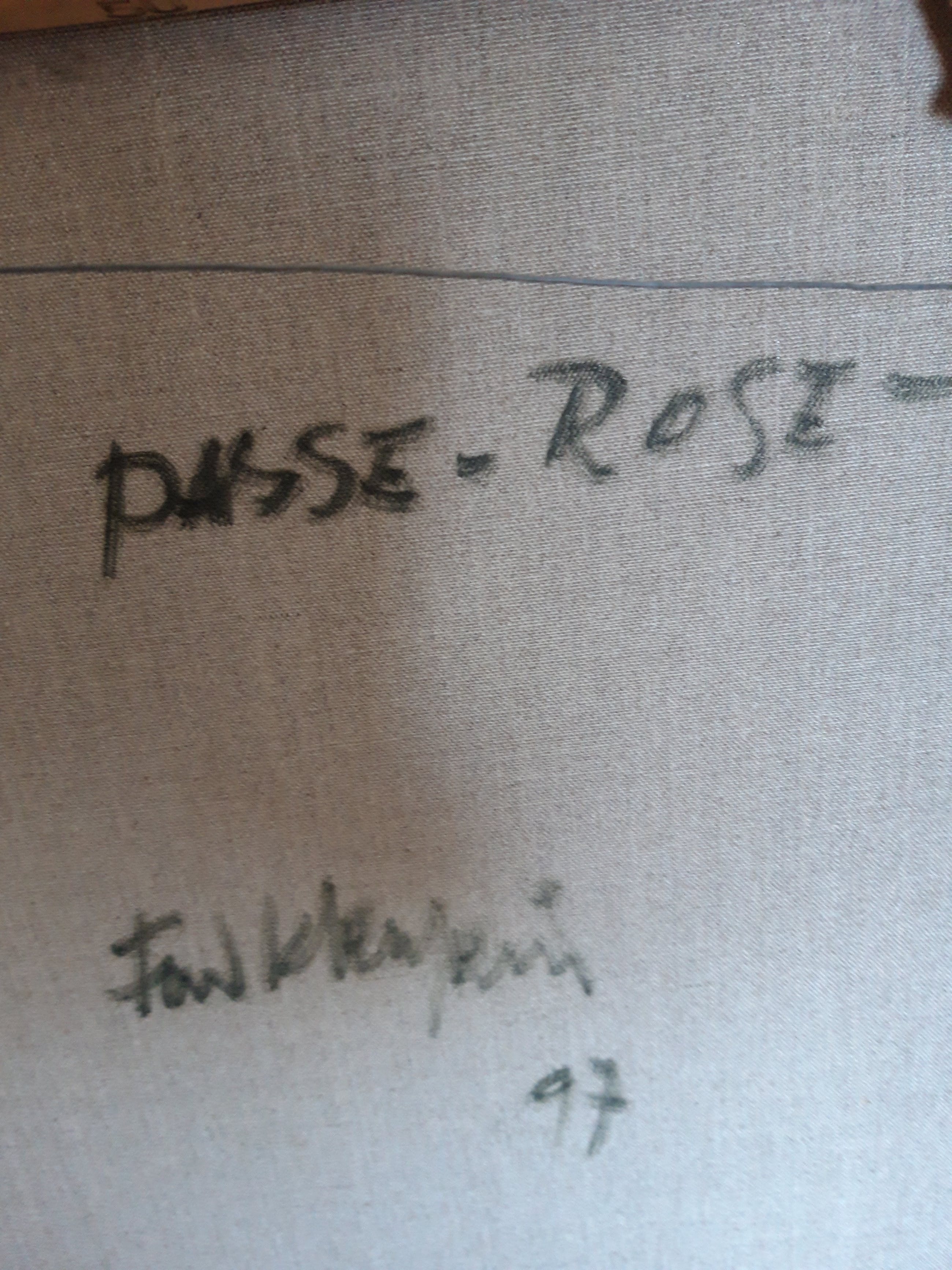 fraai doek van Fon Klement-passe -rose - acryl - geschilderd 1997-voorzien van een 2 cm gouden lijst- prima staat