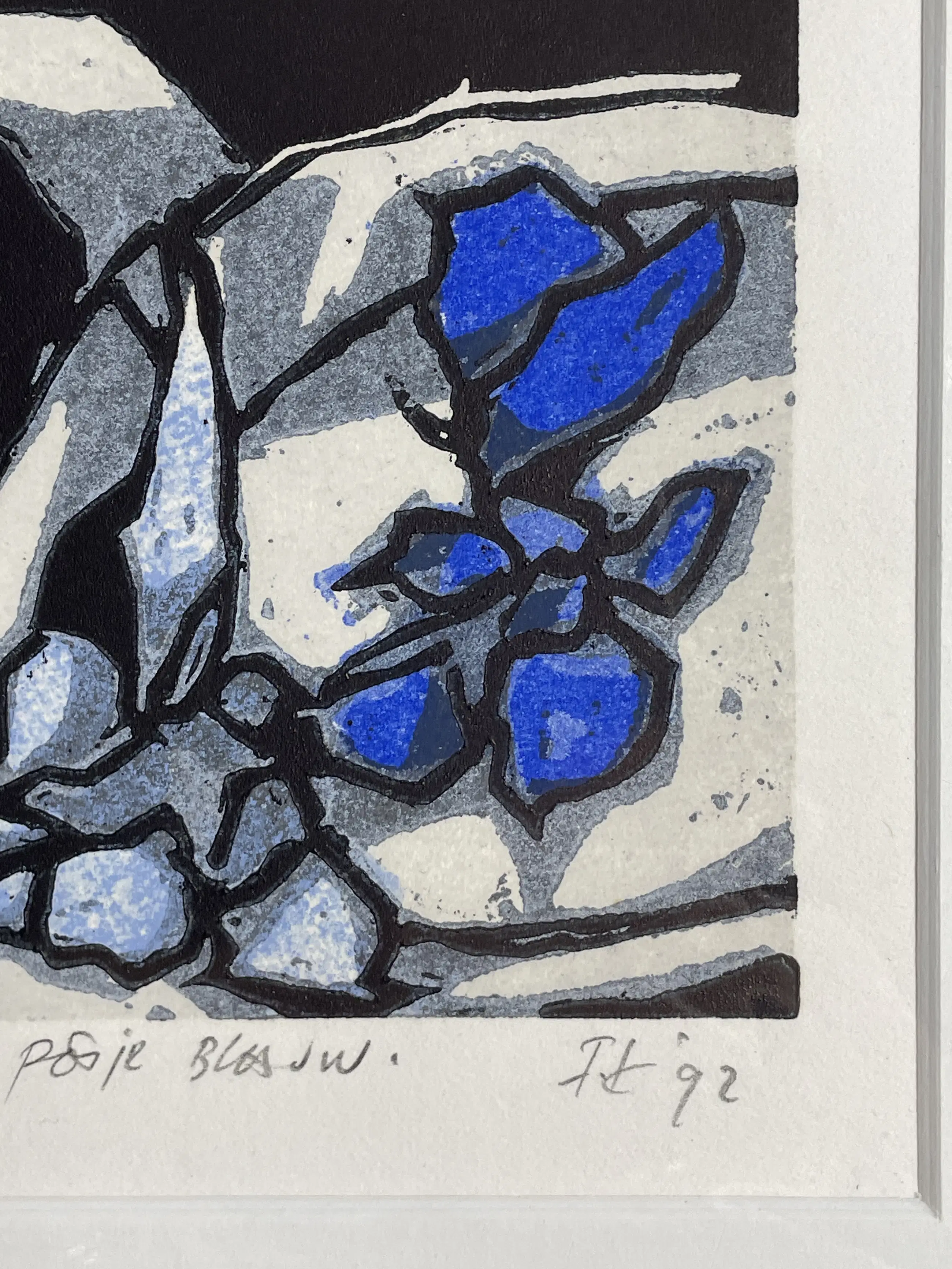 Schitterende boardsnede uit 1992 Afmeting passe-partout: 35 x 30 cm Komt direct van de kunstenaar