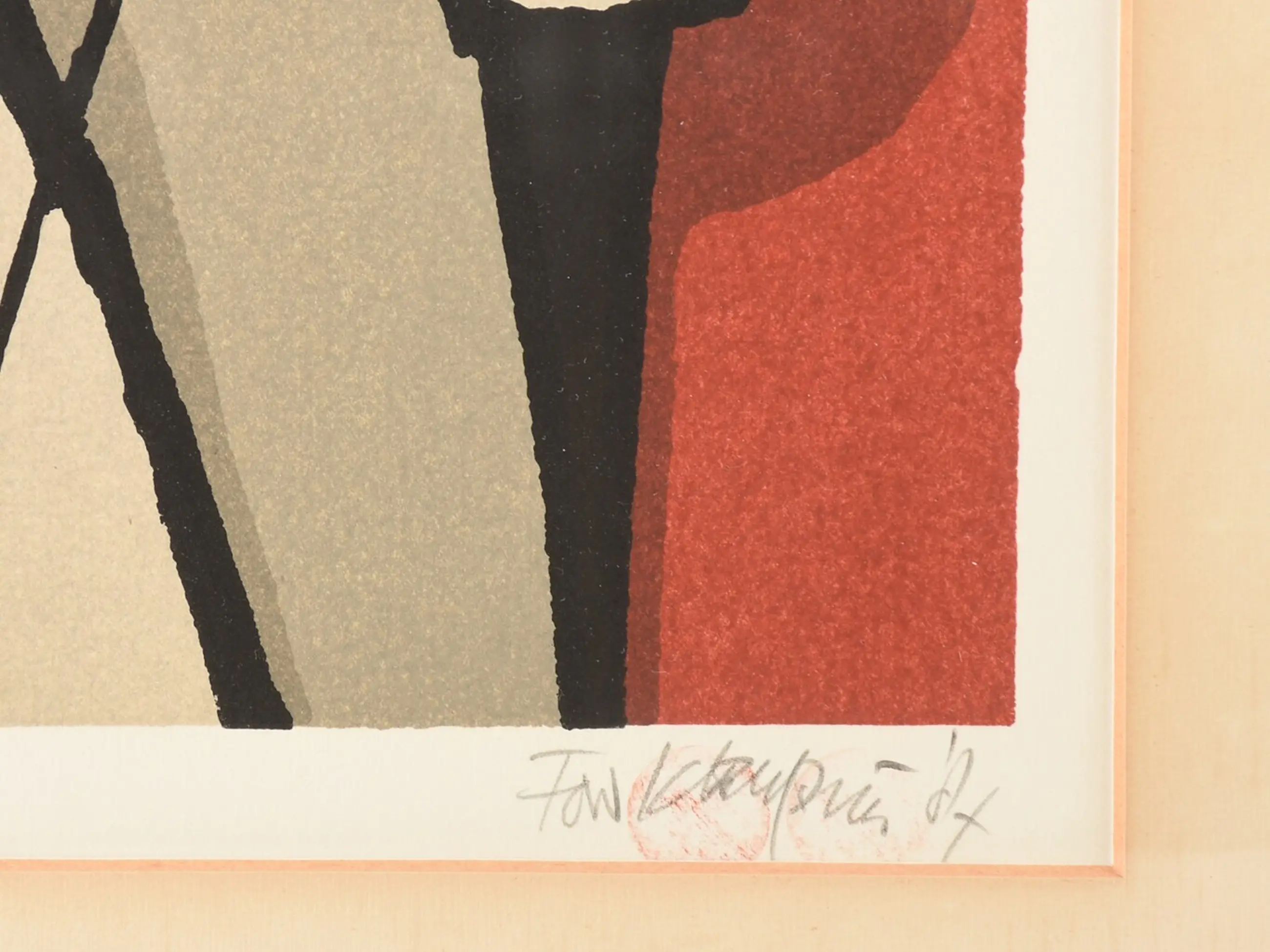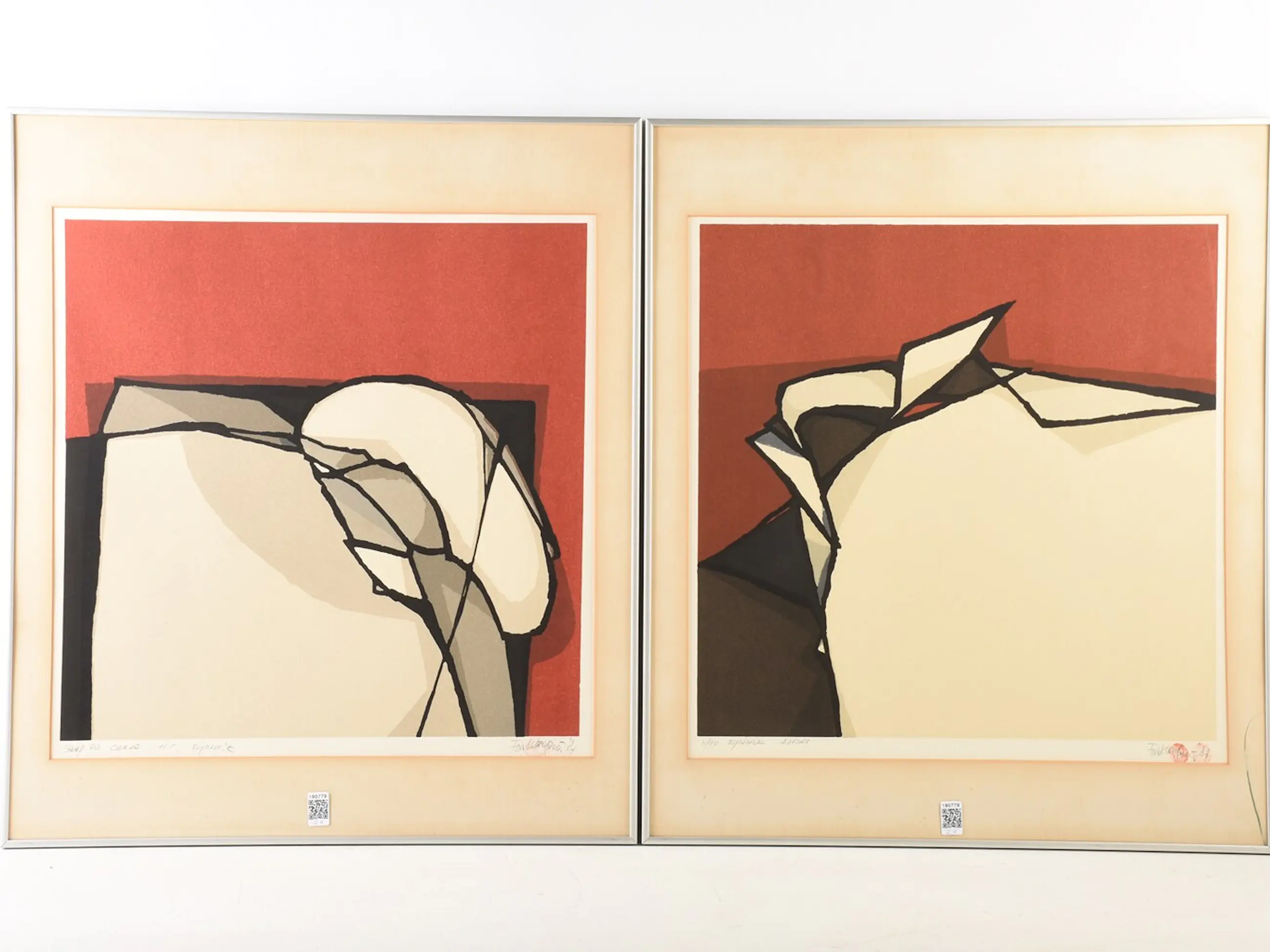 2 kunstwerken . Behoren bij elkaar. A. (Fon) Klement ges. ('88) (Amsterdam 1930-2000 Amsterdam) - "Sanp du Corte" en " Aurore" - kleurenlinosnede HC eigendruk en eigendruk nr. 11/90 - 53 x 52 cm (1 glasplaat gebroken)