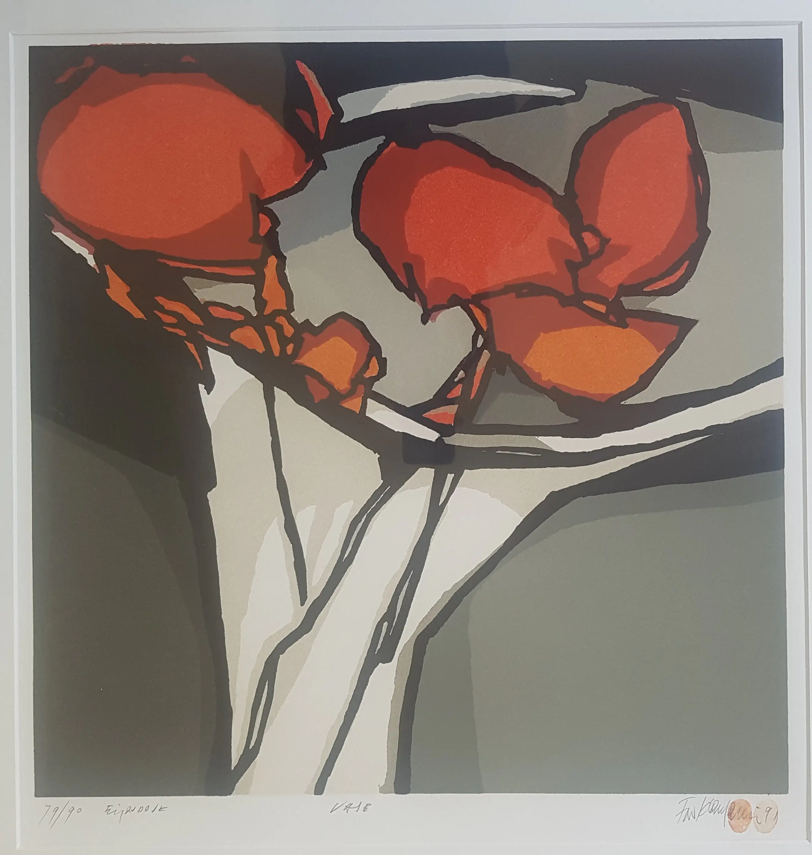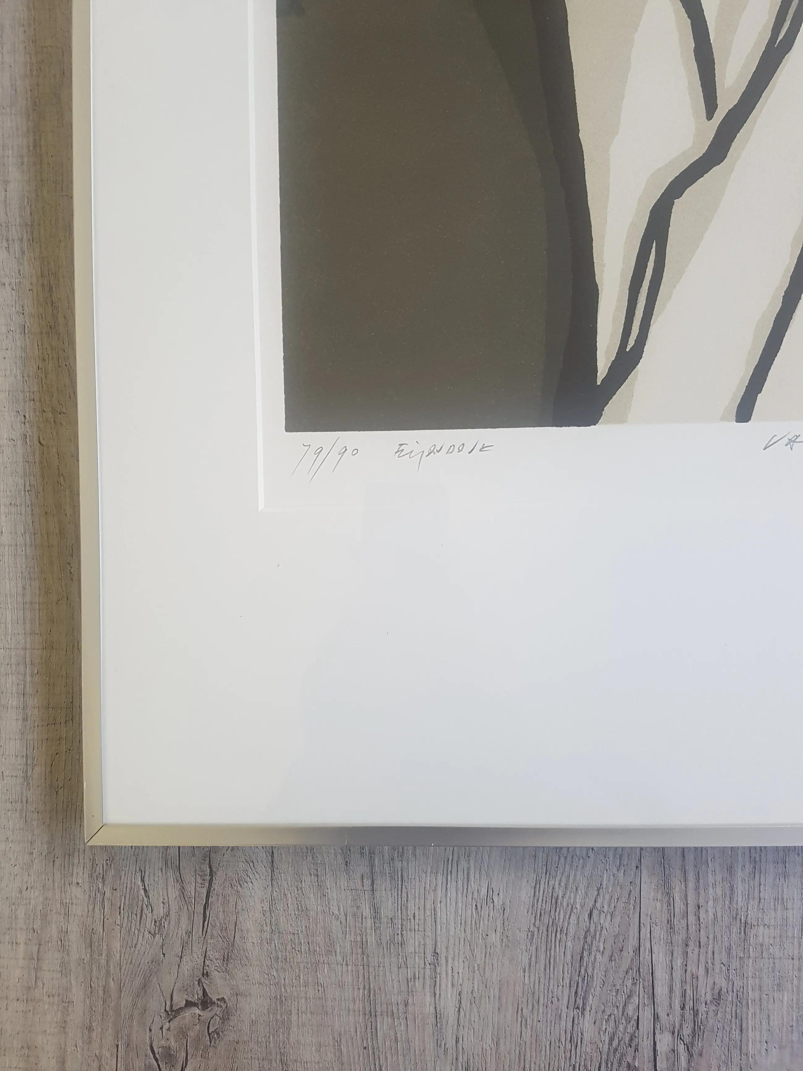 Fon Klement boardsnede 1991 eigen druk Gesigneerd rechtsonder Genummerd 71/90 in zeer goede staat mooi ingelijst