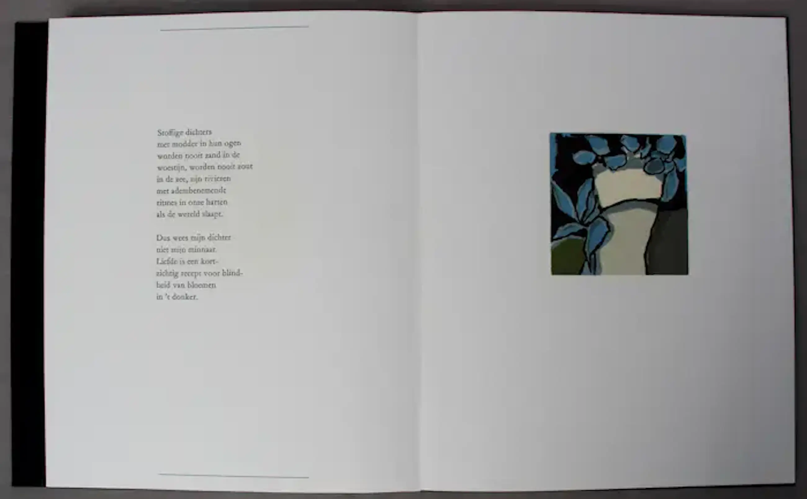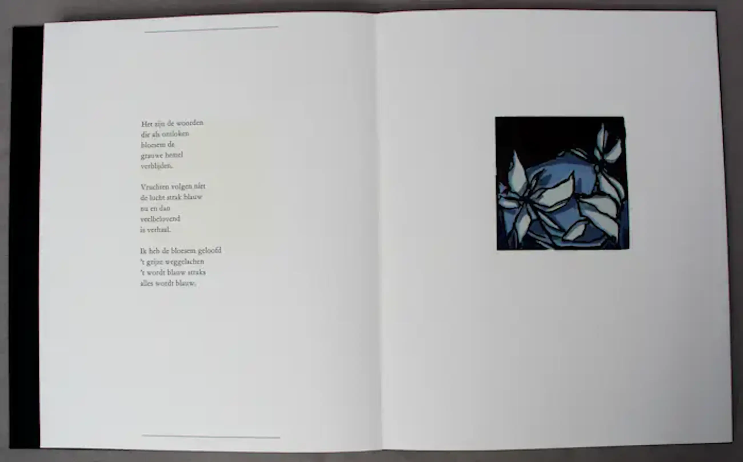 Uitgave door Fon Klement en Marion bloem, uitgegeven in 1992. Bevat acht werken van Klement en zeven gedichten van Bloem. Voorzien van zwarte stoffen kaft en omslag/cassette.