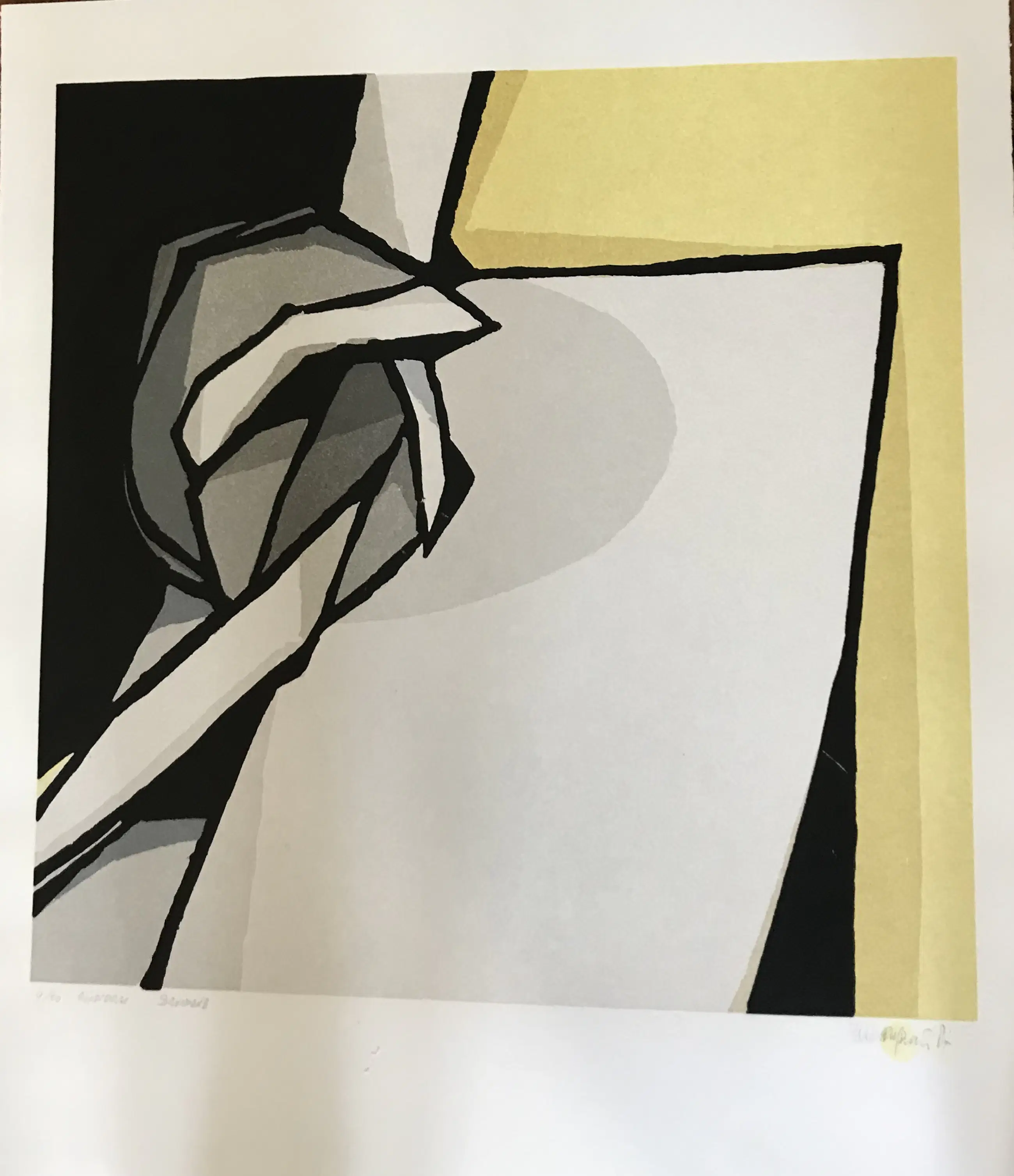Deze boardsnede is door Fon Klement zelf afgedrukt , aantal afdrukken 9 /40 vermeld in potlood , alsmede de titel " Saubane " en eigen druk. Gesigneerd op de afdruk , voorzien van twee vingerafdrukken.