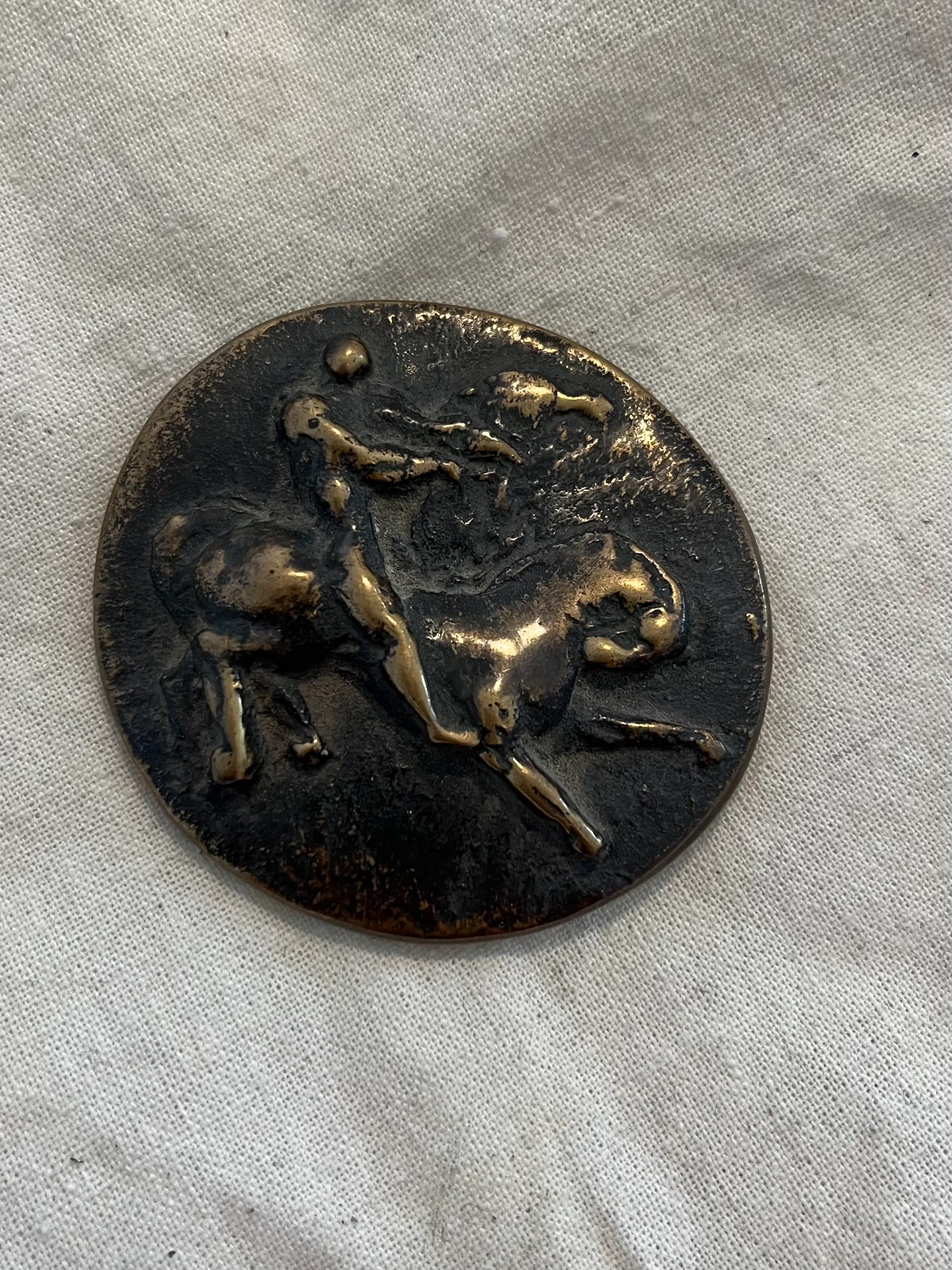 Deze penning is ontworpen door de Nederlandse beeldhouwer en medailleur Fons Bemelmans. Bemelmans verwierf bekendheid met zijn krachtige, figuratieve sculpturen en reliëfs, waarin mens en dier vaak een centrale rol spelen. Ook in zijn penningen komt zijn beeldhouwkundige benadering duidelijk naar voren: met een plastische modellering en een sterke aandacht voor beweging en vorm. Het motief van man en paard sluit aan bij zijn interesse in klassieke thema’s en de relatie tussen mens, dier en natuur.