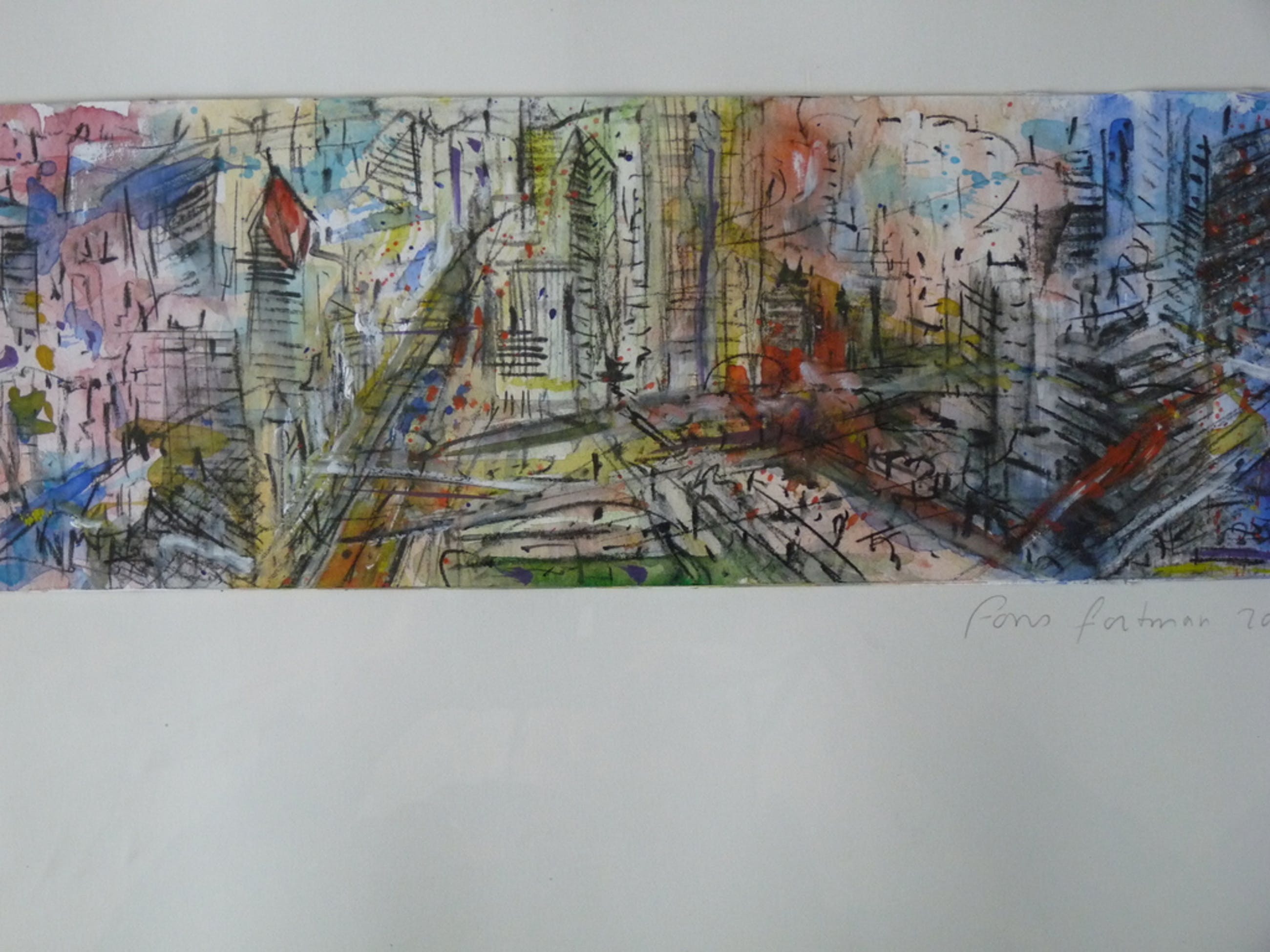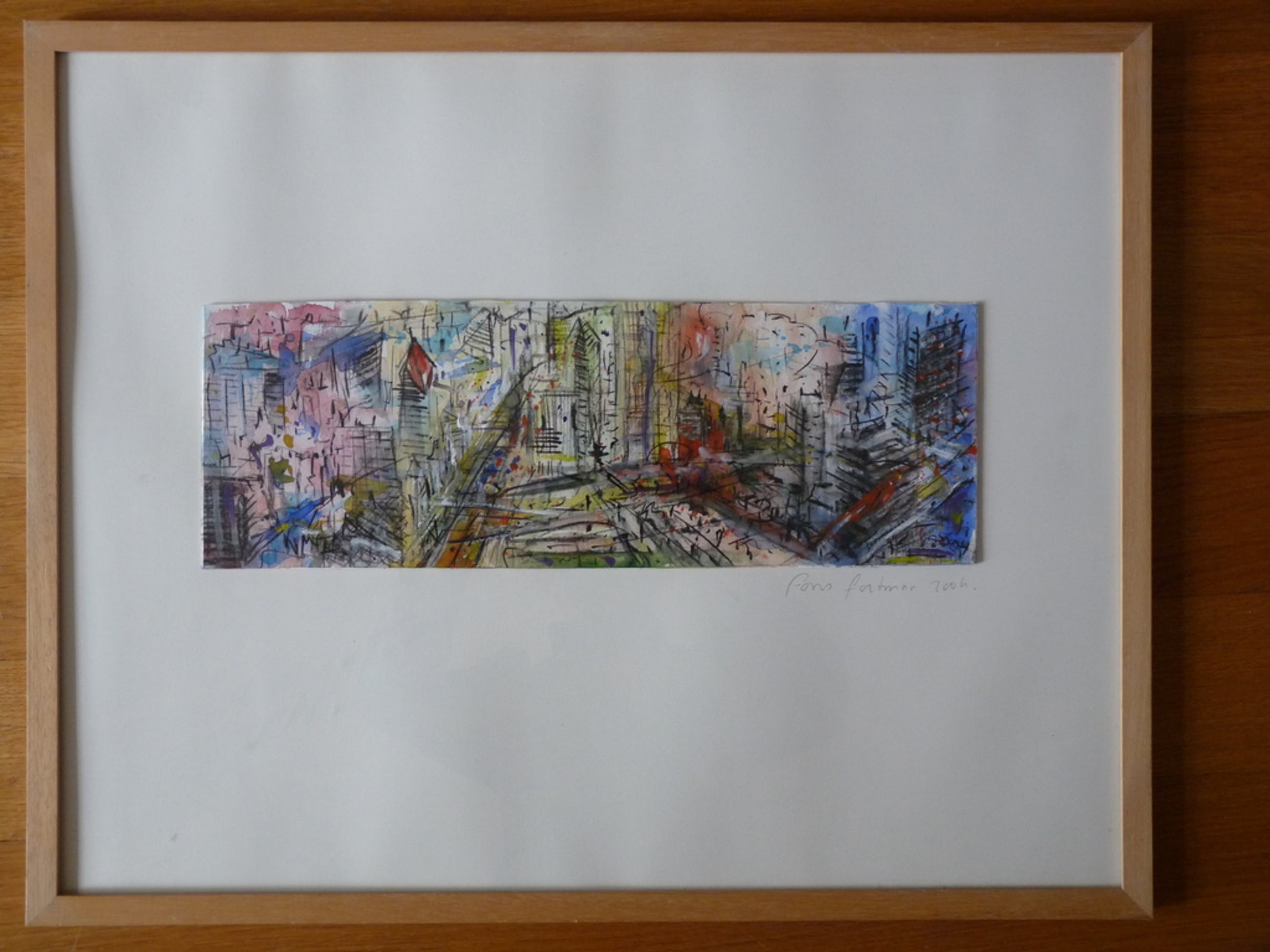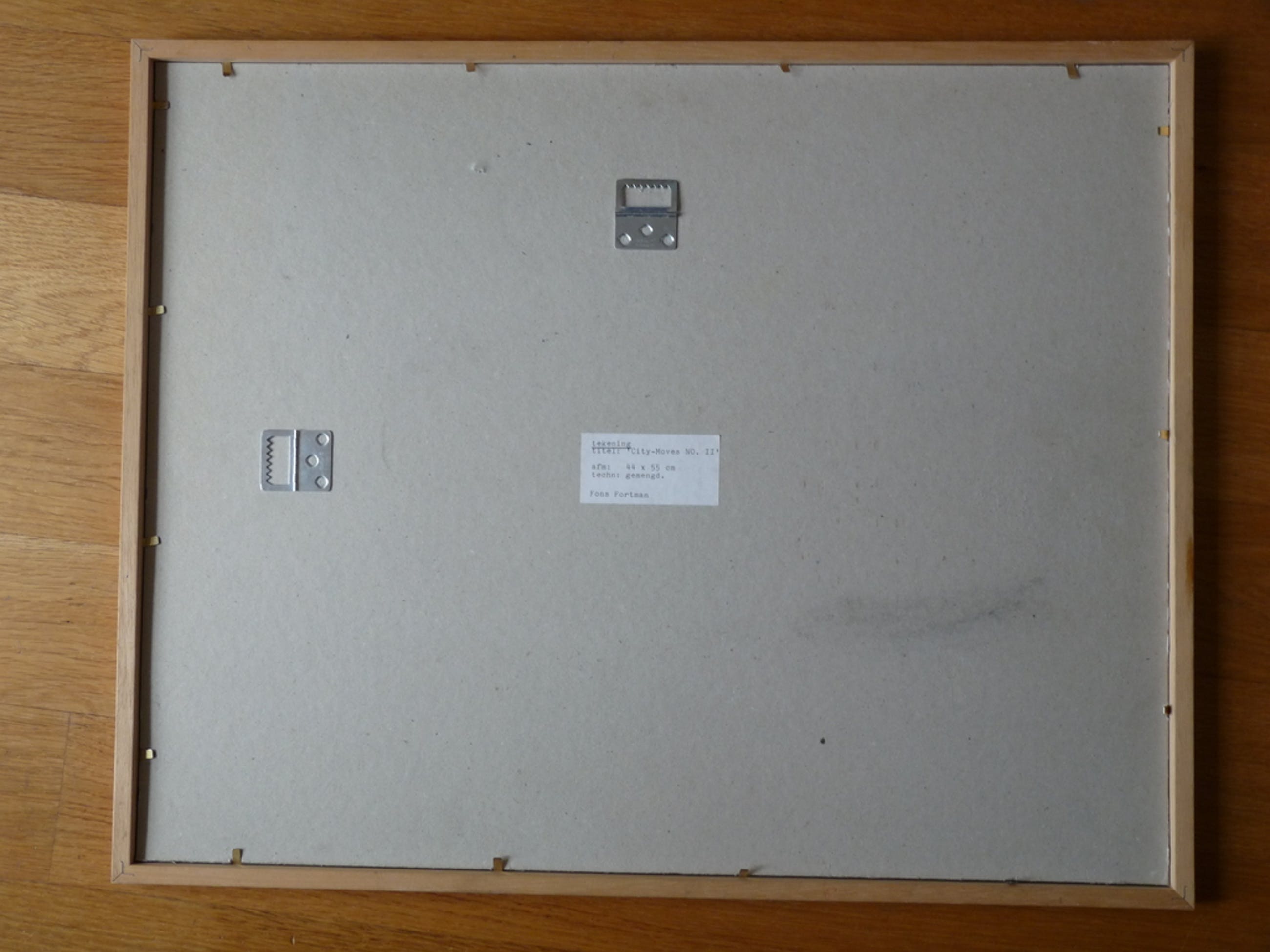 Afmeting "City Moves 2" 13x38 cm. "City Moves 15" 14,5x33 cm. Inclusief lijst allebei 44x55 cm.