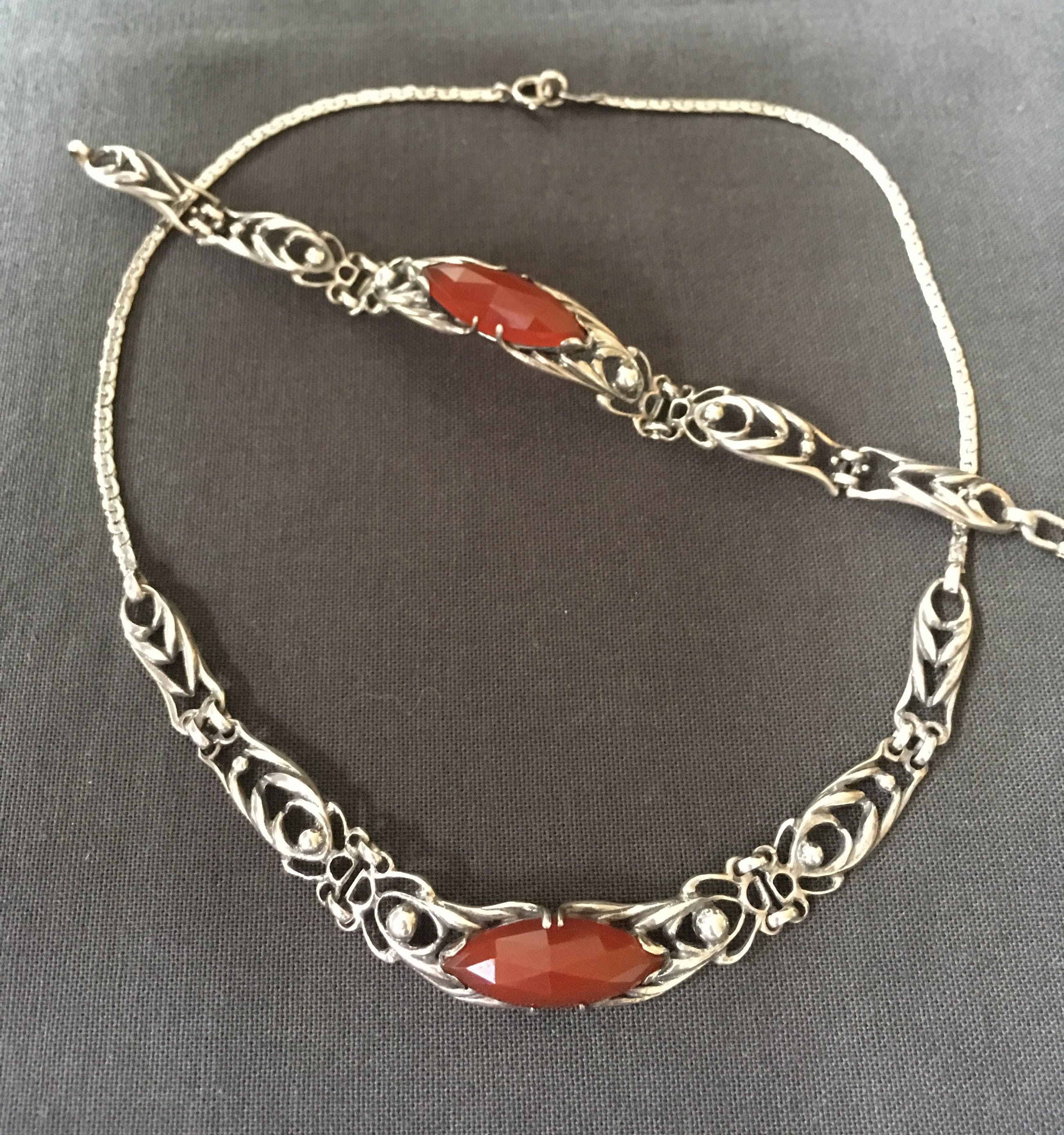 | De set heeft nauwelijks draagsporen en de stenen en het zilver zijn in zeer goede staat | |||