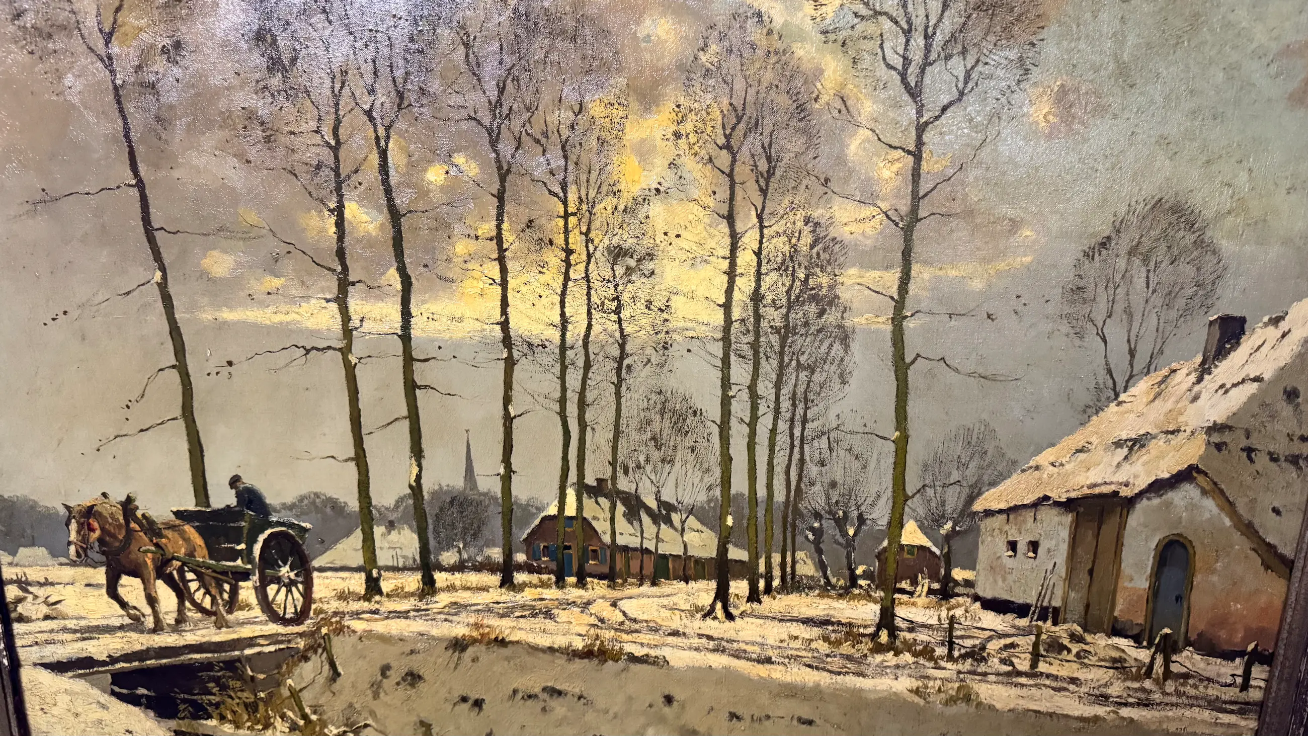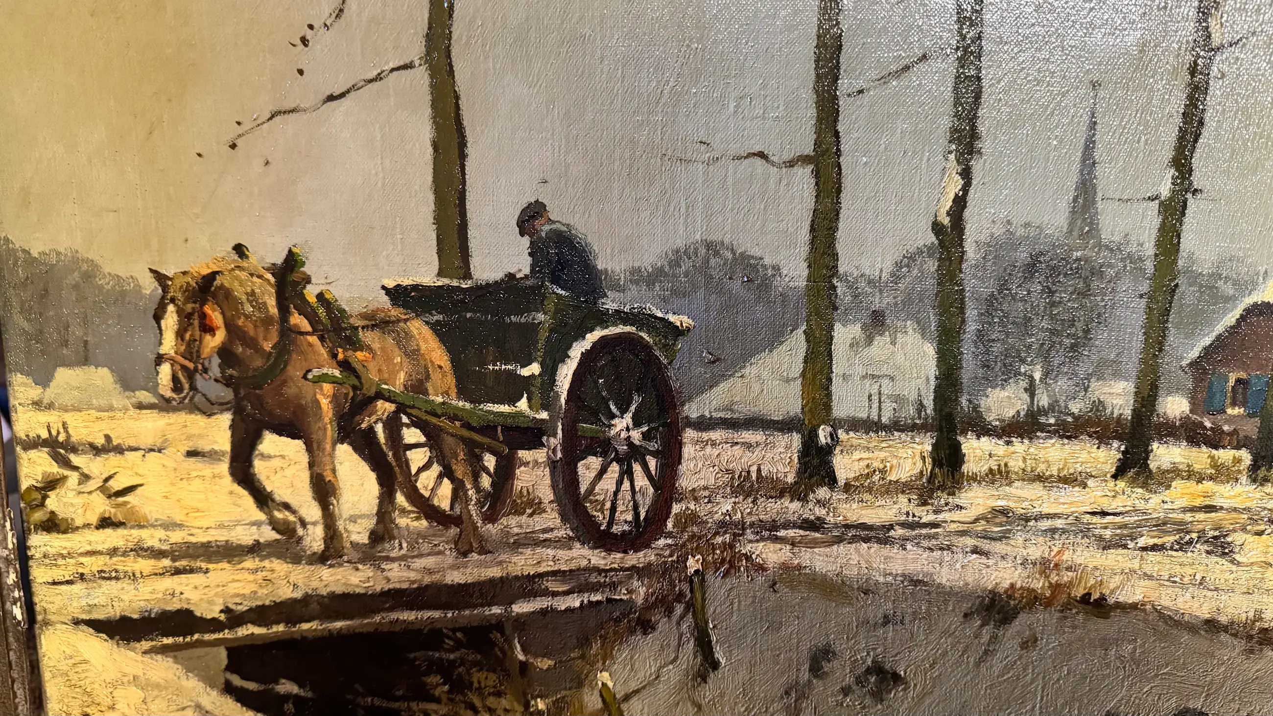 De combinatie van winterse rust, authentieke details en het karakteristieke kleurgebruik van Verstraeten maakt dit schilderij tot een echte blikvanger in ieder interieur.