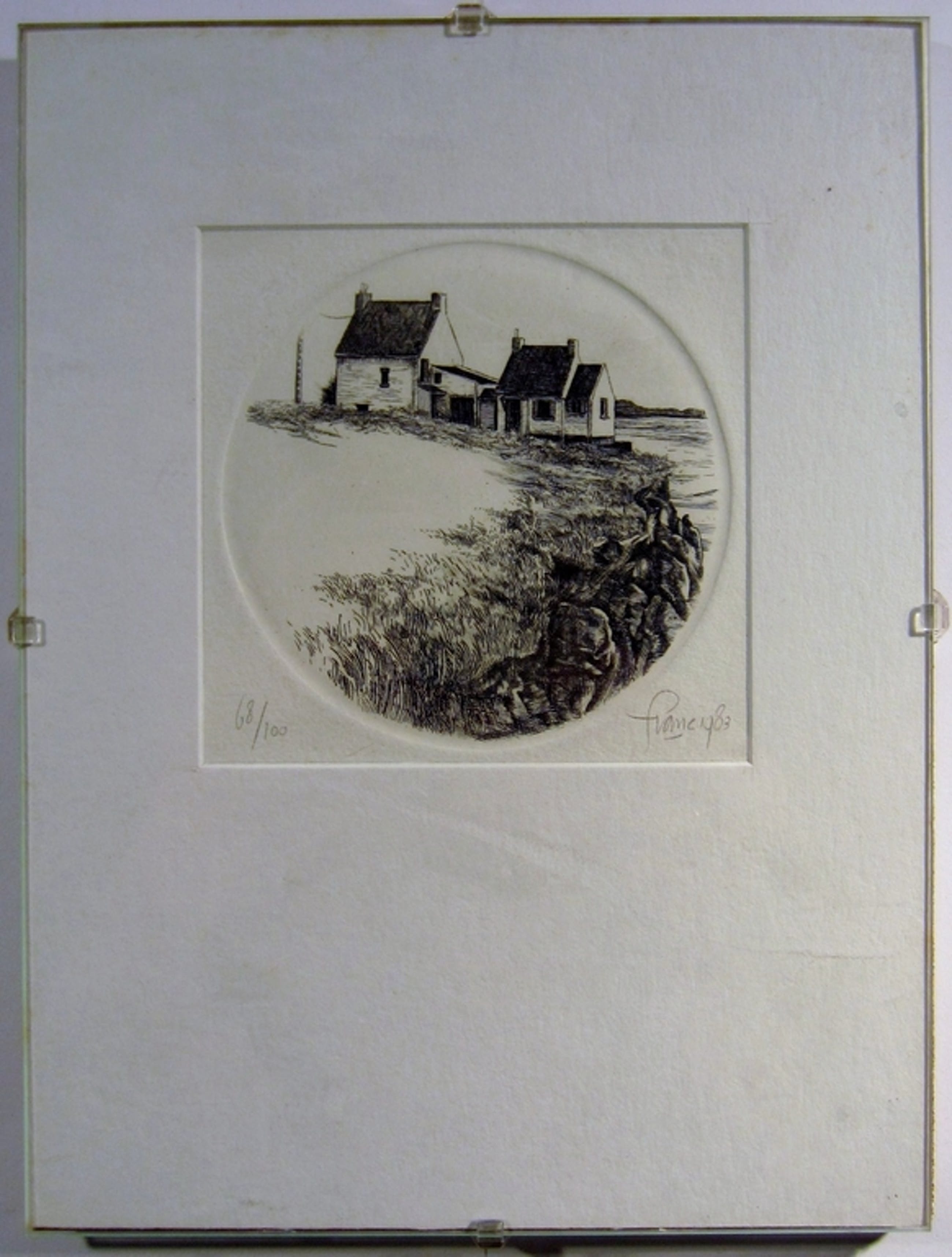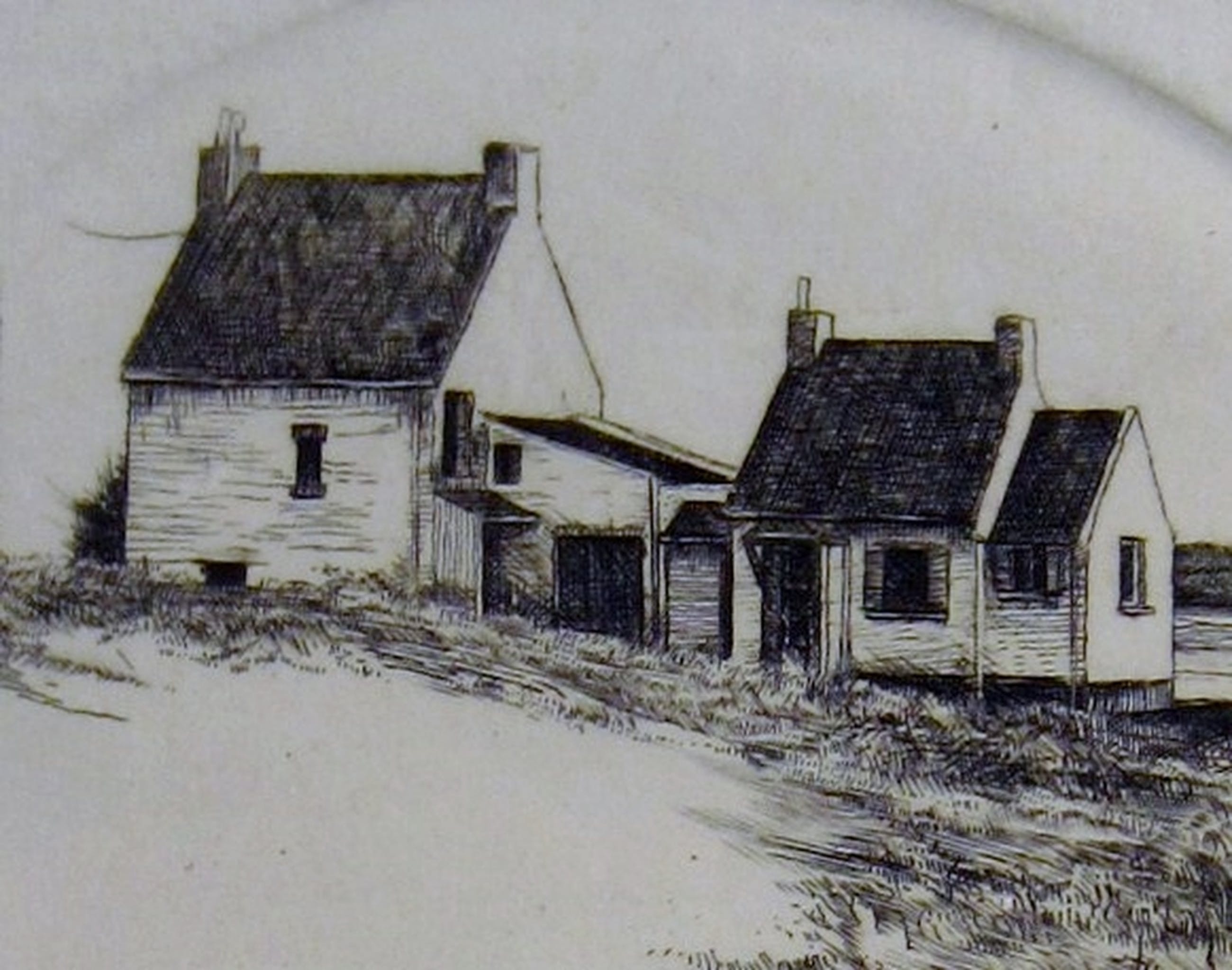 Zeer fijne ets van de kunstenaar Franc van Oort, werkzaam te Kloosterburen.