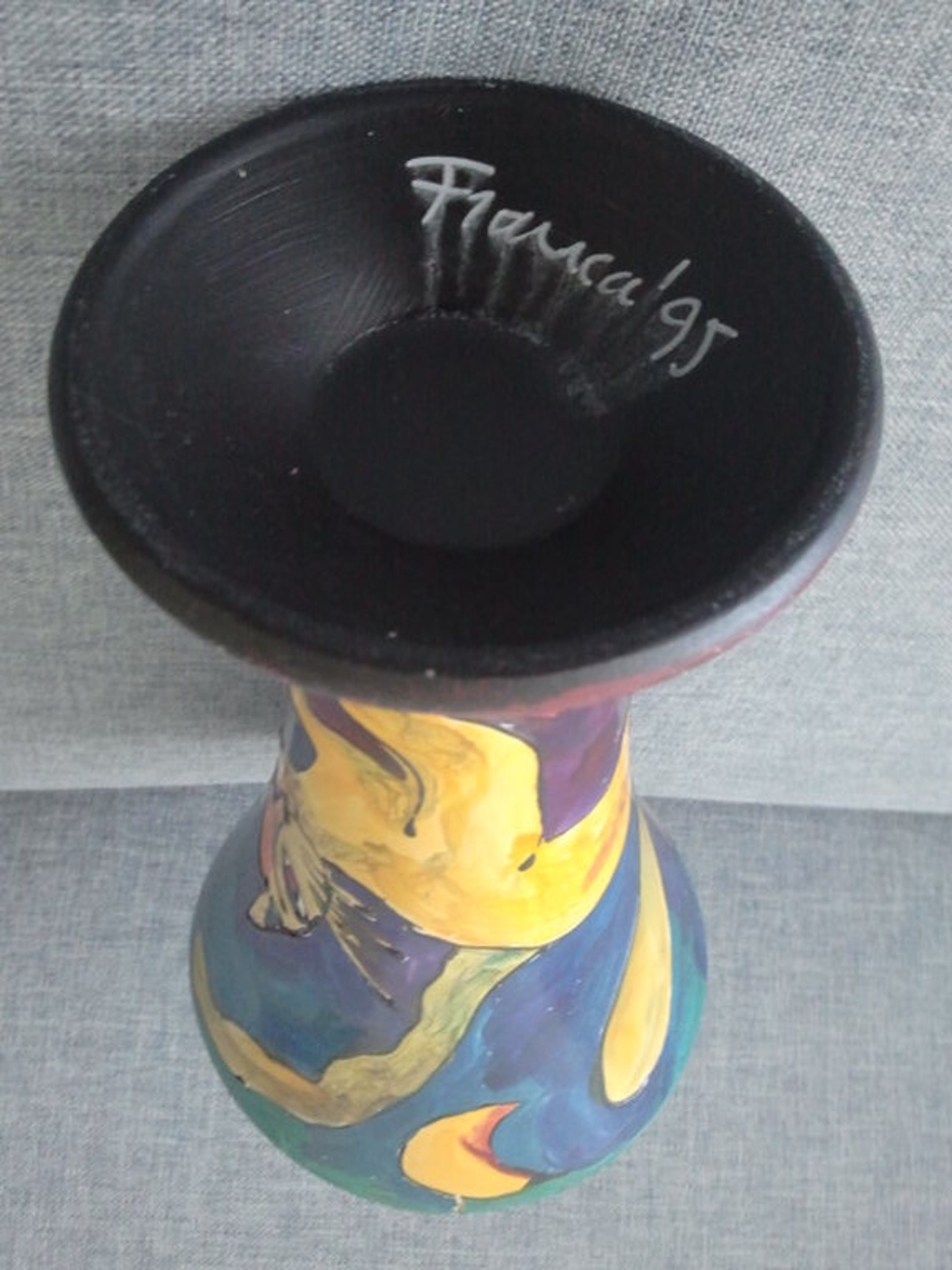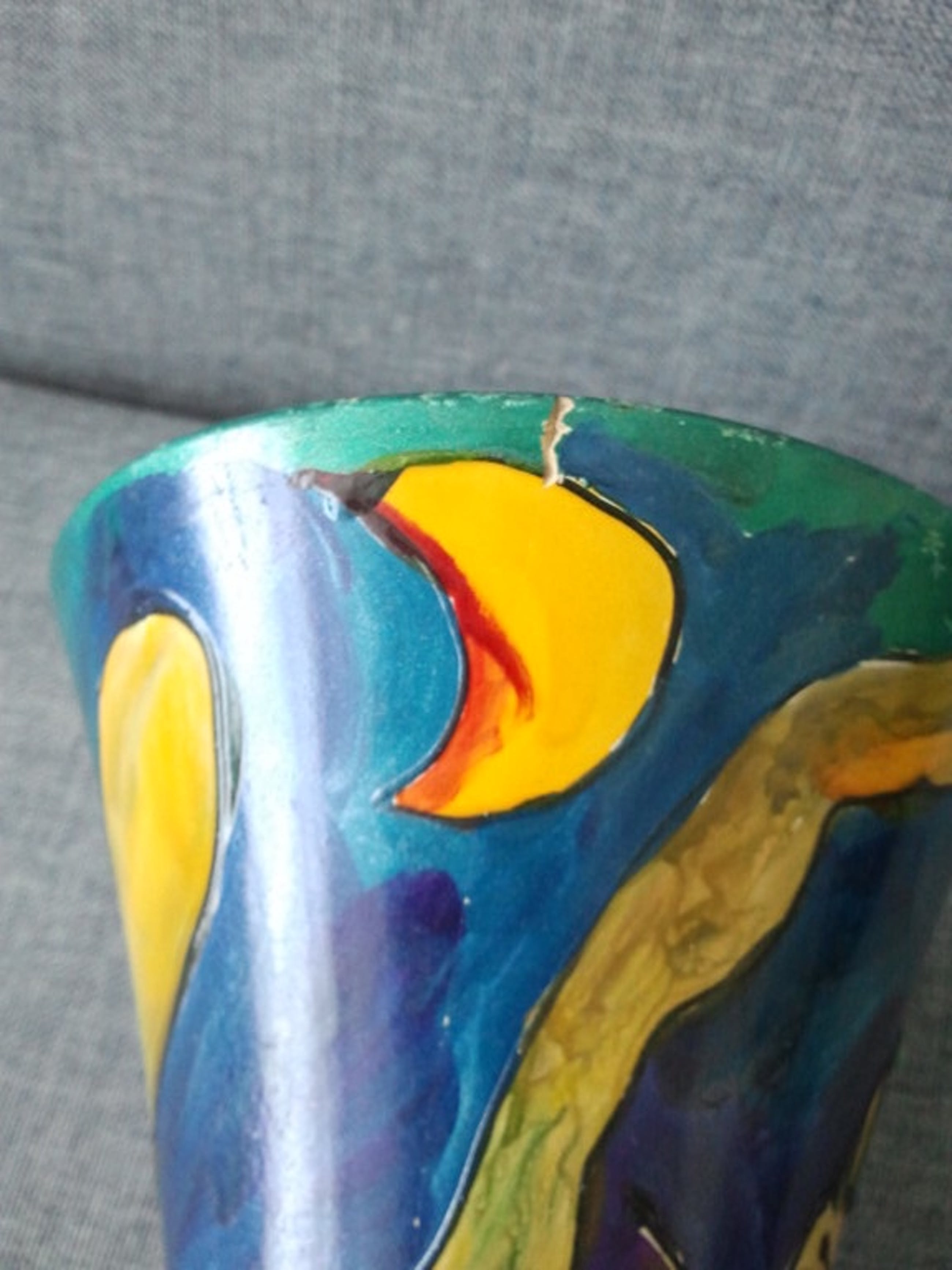 Vaasje met veelkleurige beschildering.