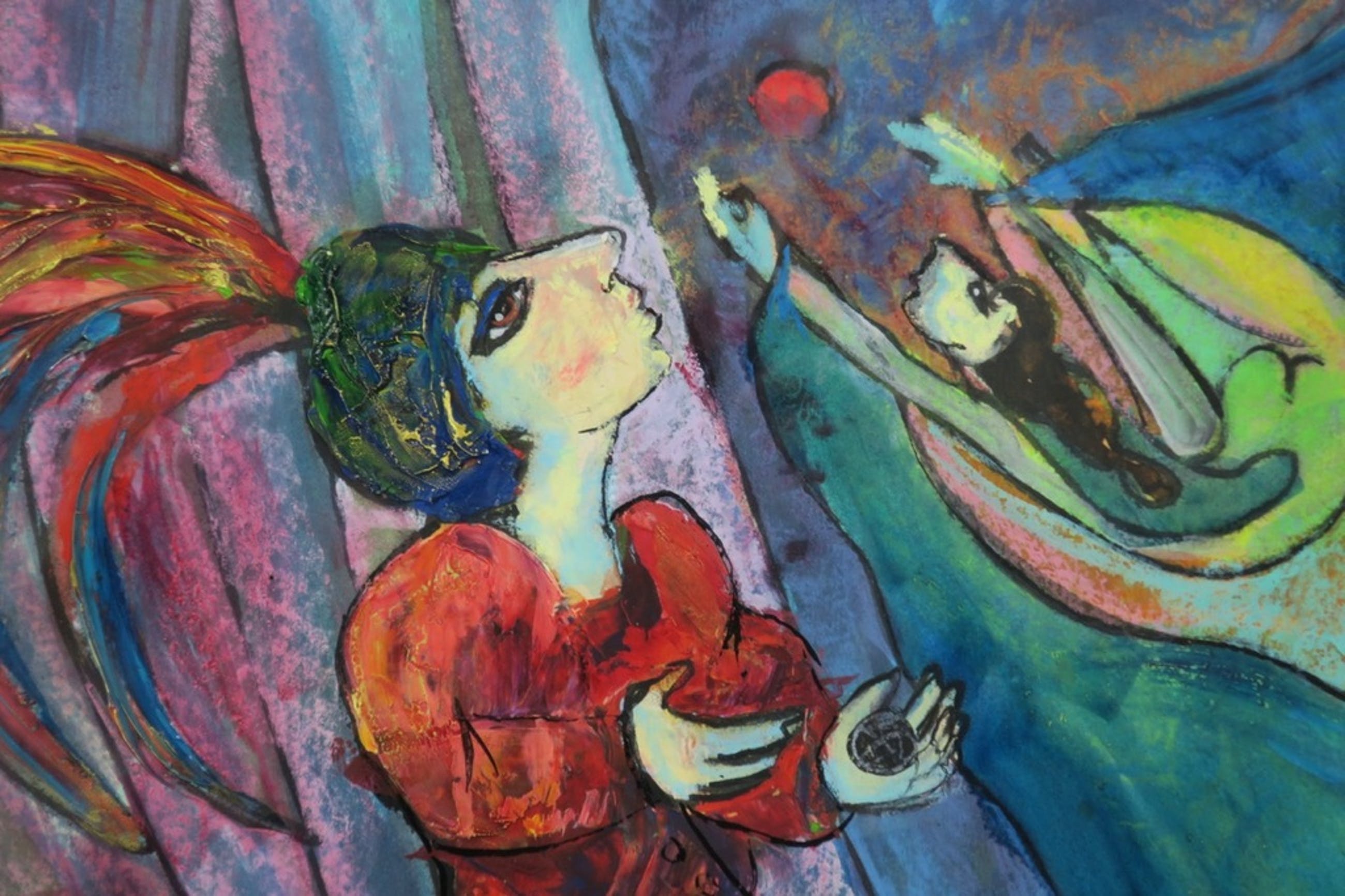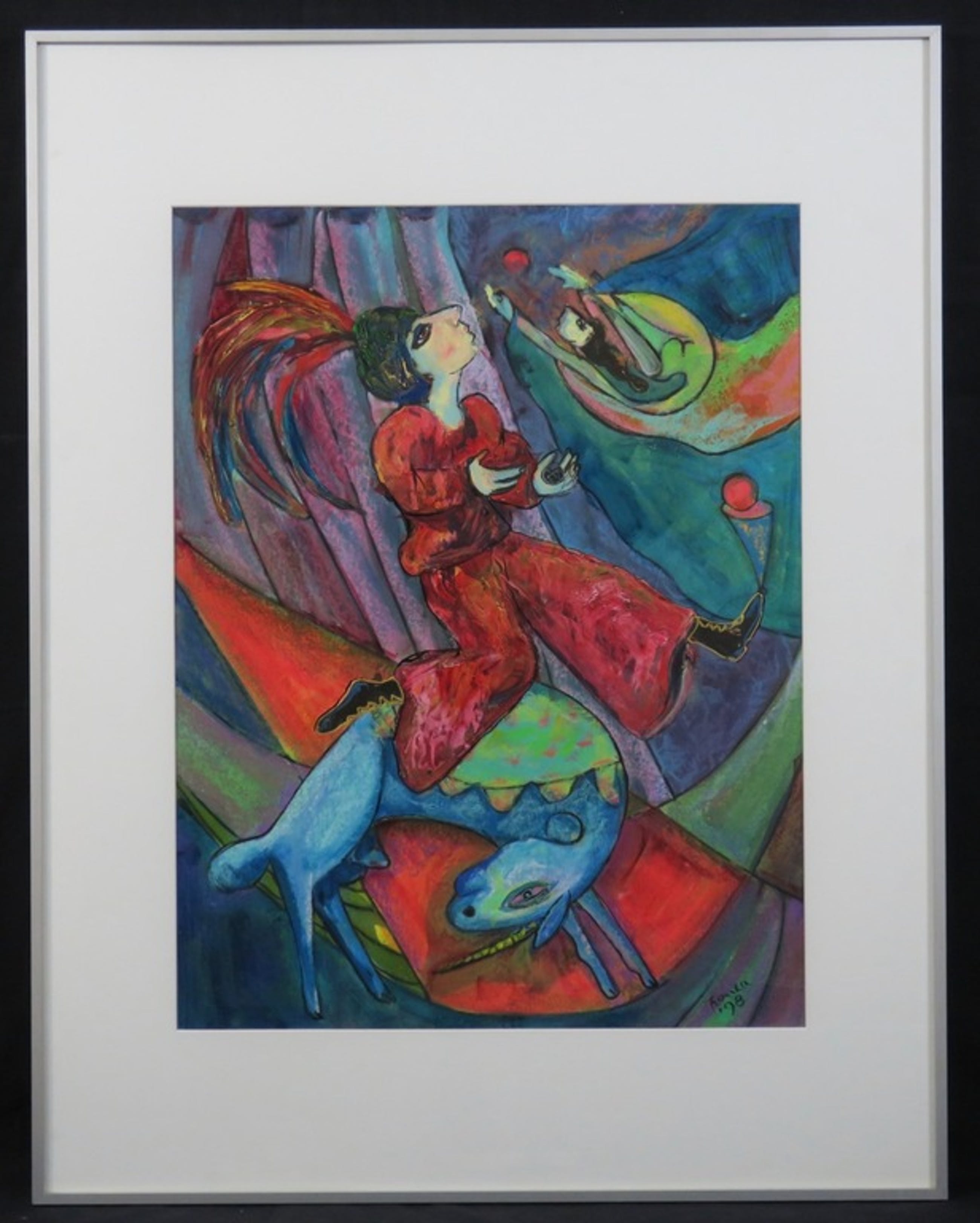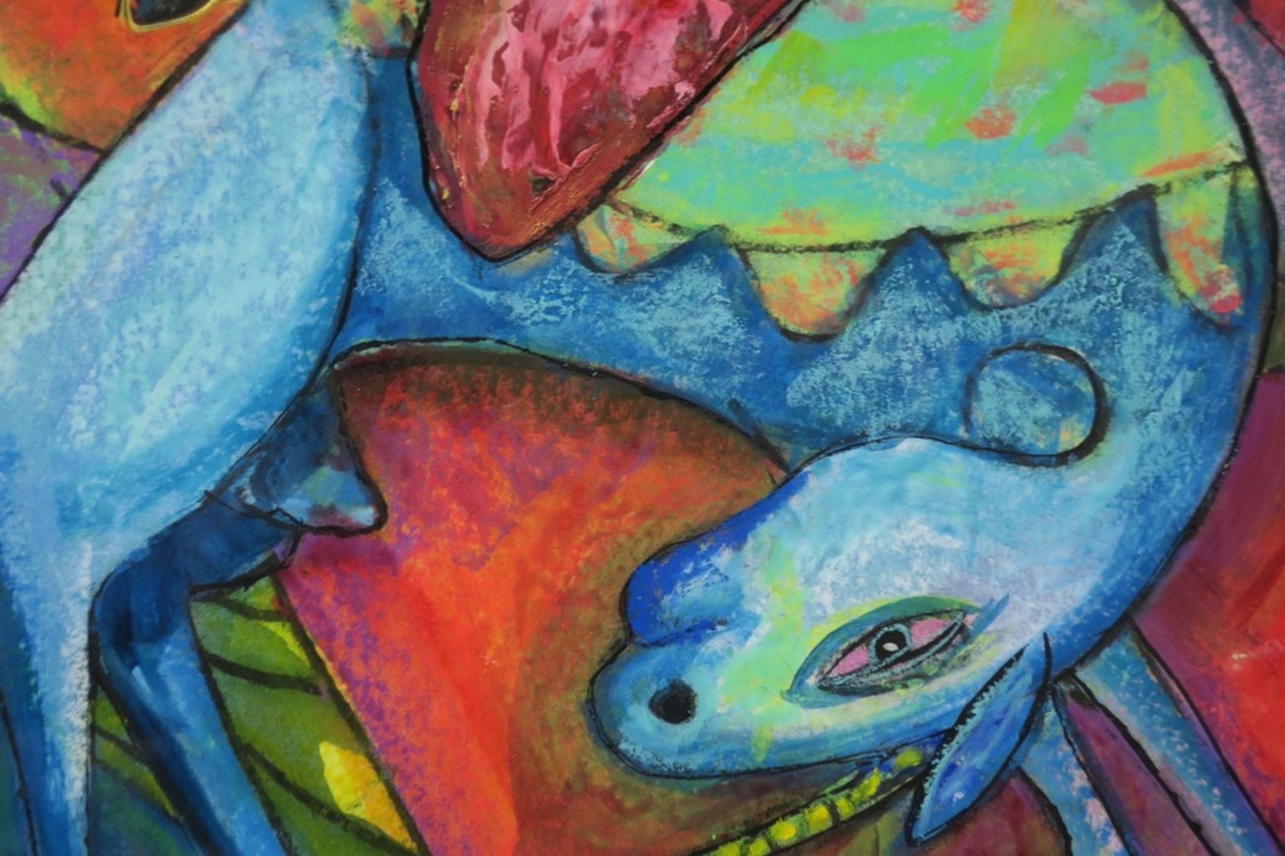 Materiaal: Gemengde techniek op papier, o.a. Gouache, acryl en krijt