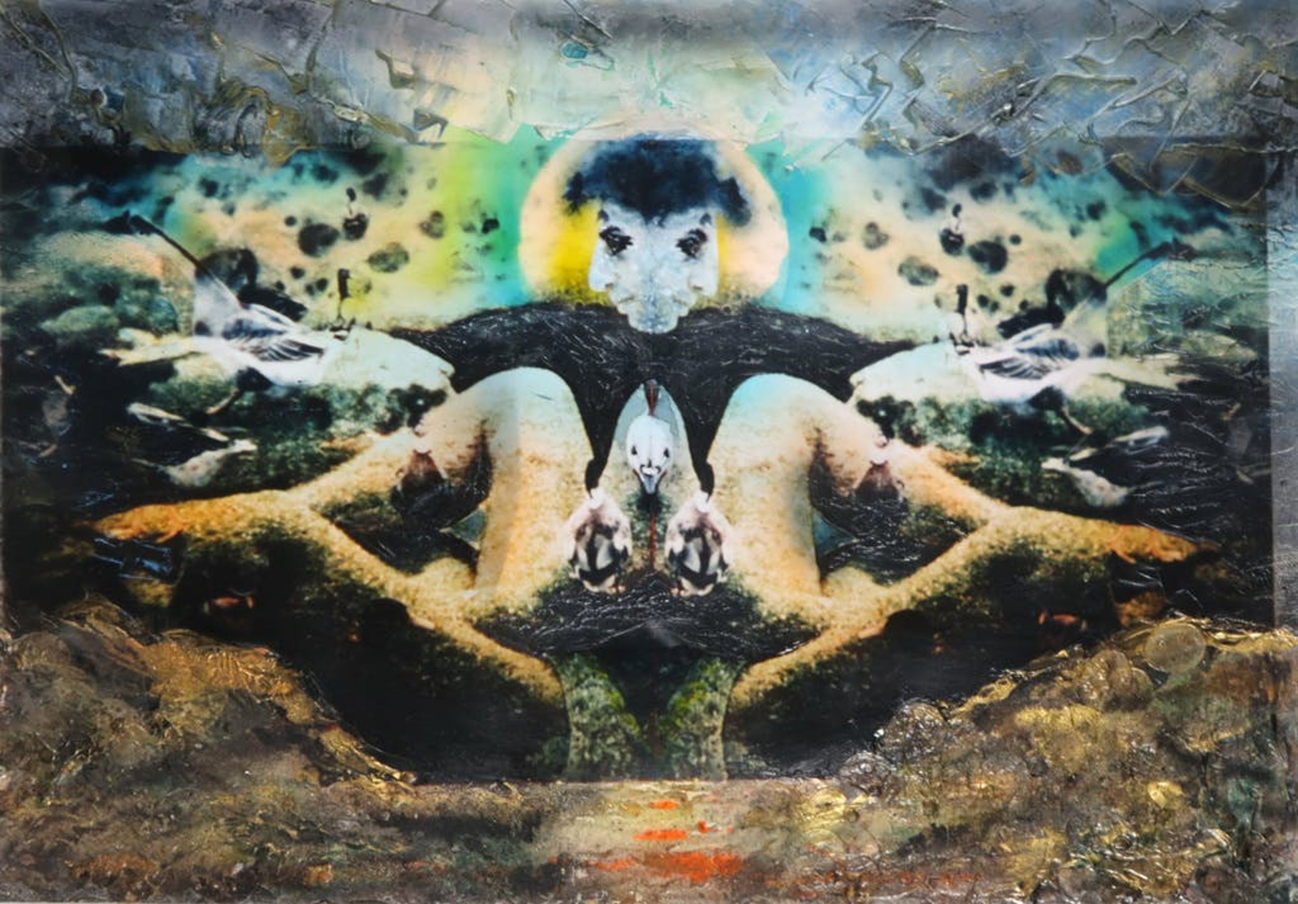 Materiaal:�Gemengde technieken, o.a. olieverf en inkt op fotopapier