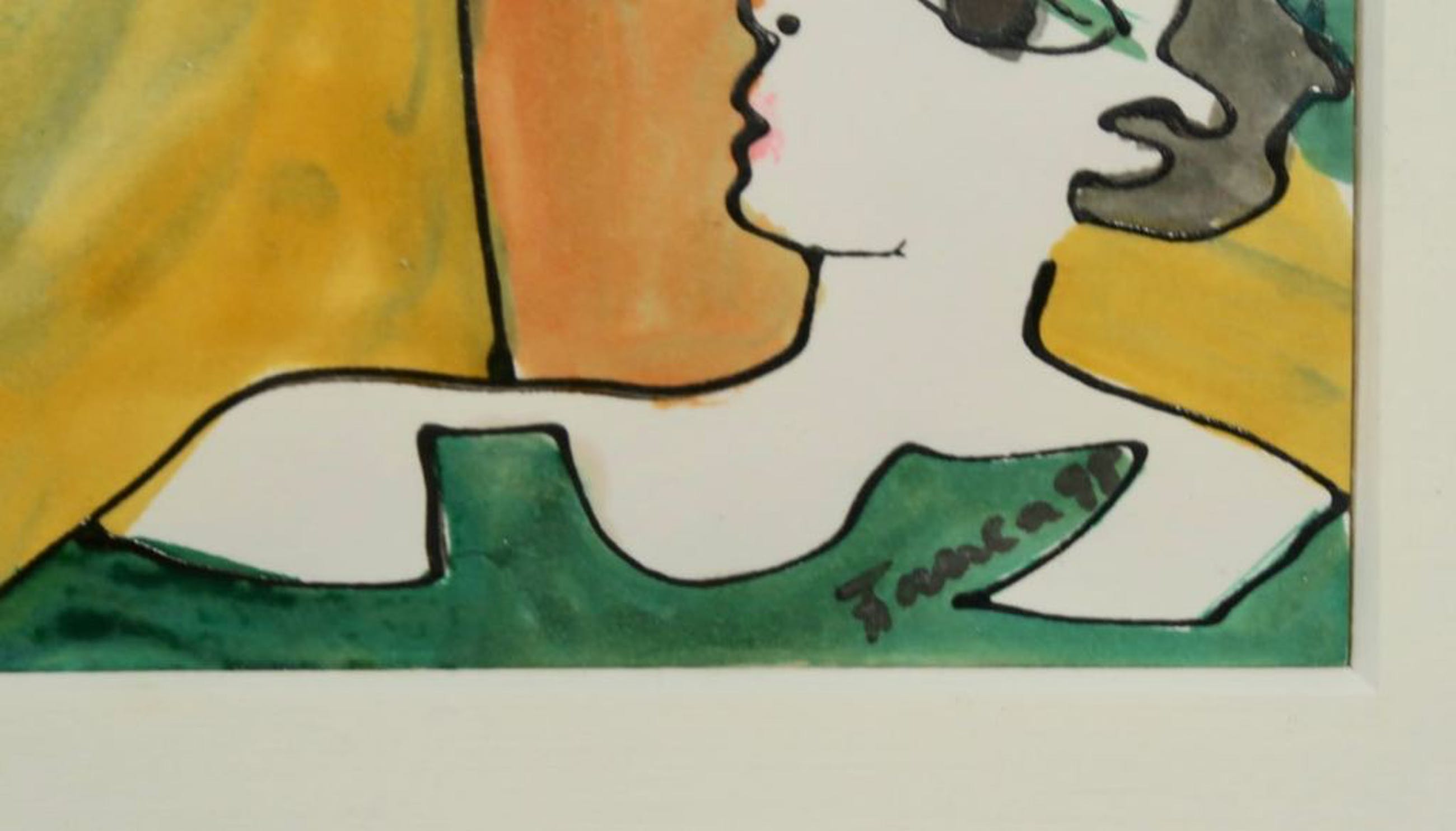 Passe-partout/lijsten: Beschadigingen aan lijsten worden niet beschreven. Indien een werk achter glas is ingelijst en het glas kapot is, zal dit wel vermeld worden. Passe-partouts worden op geen enkele manier gegarandeerd en ook niet altijd meegezonden. Alleen als een werk niet uit het passe-partout te halen is, zal dit vermeld worden.