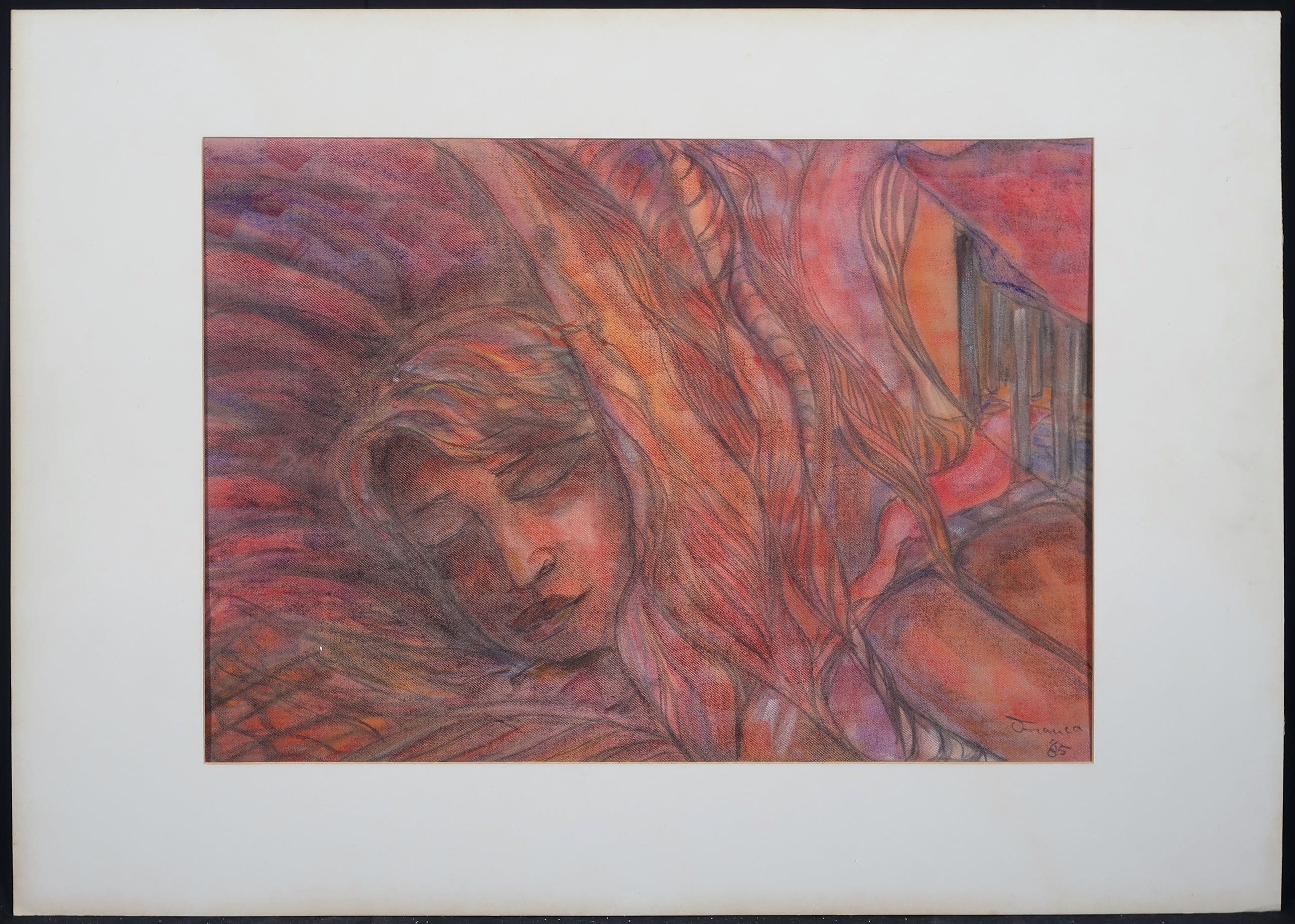 | Beeld is in goede staat, maar het passe-partout is een beetje verkleurd en bevat lichte vegen. | |||
