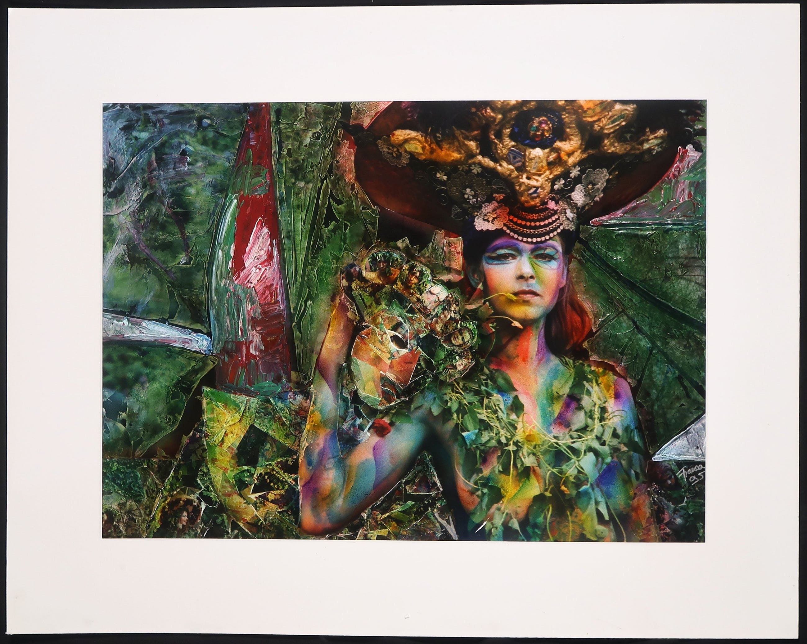 Links onder in het midden zit een kleine scheur in het beeld zie foto. Het passe-partout heeft rondom enkele lichte deukjes en krasjes. | |