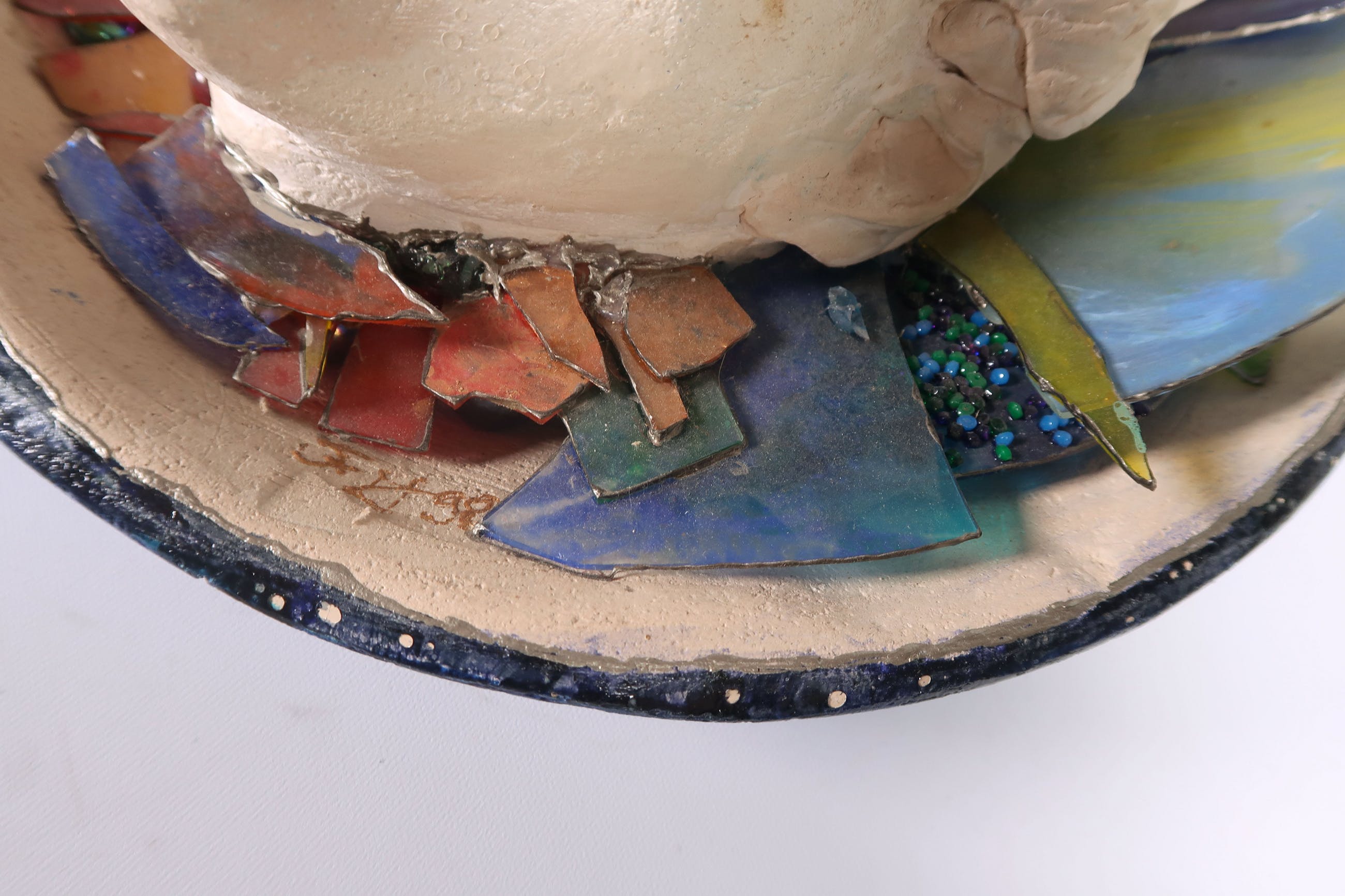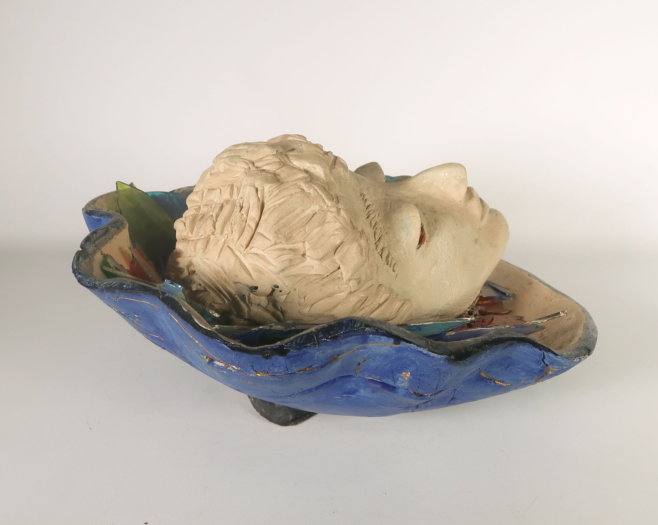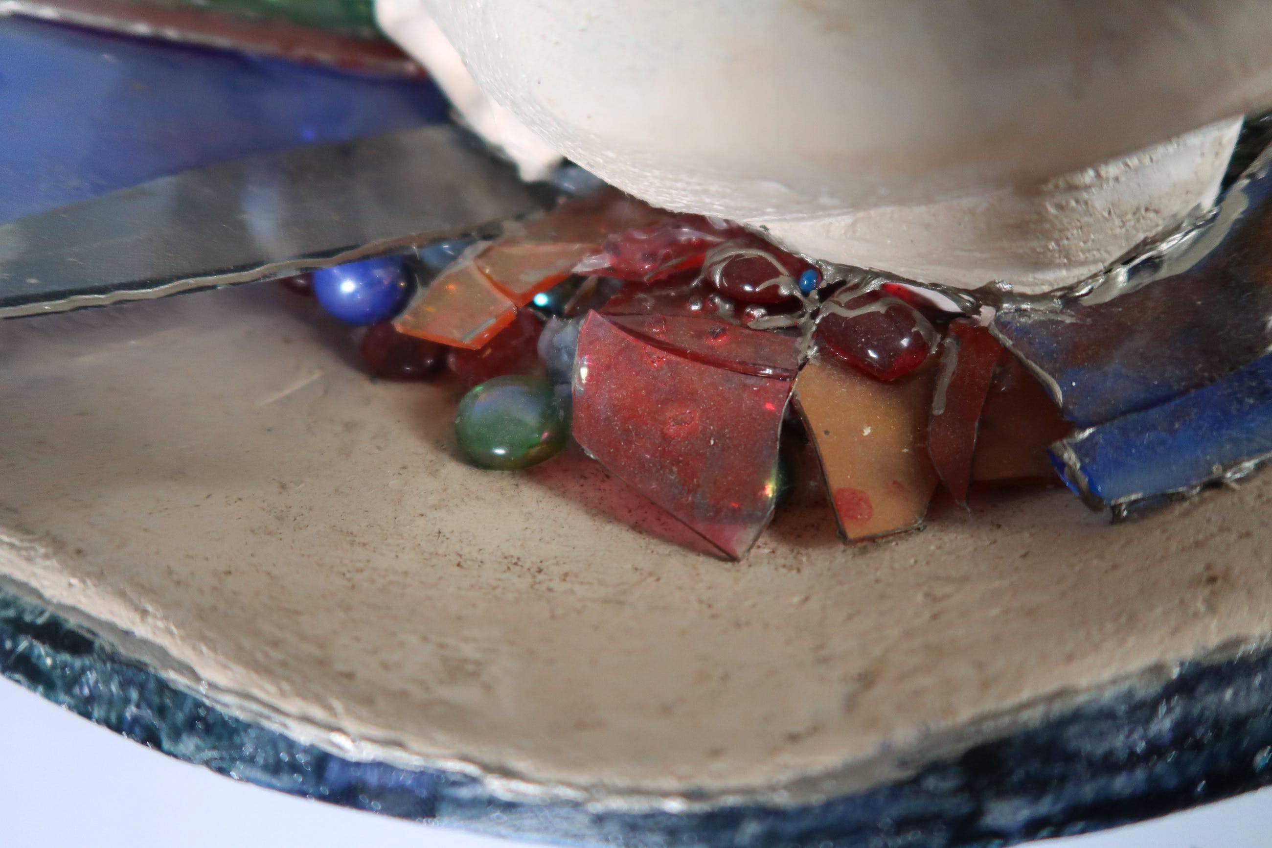 De glazen ornamenten in de schelp zijn stoffig en sommige onderdelen zitten los. | |||