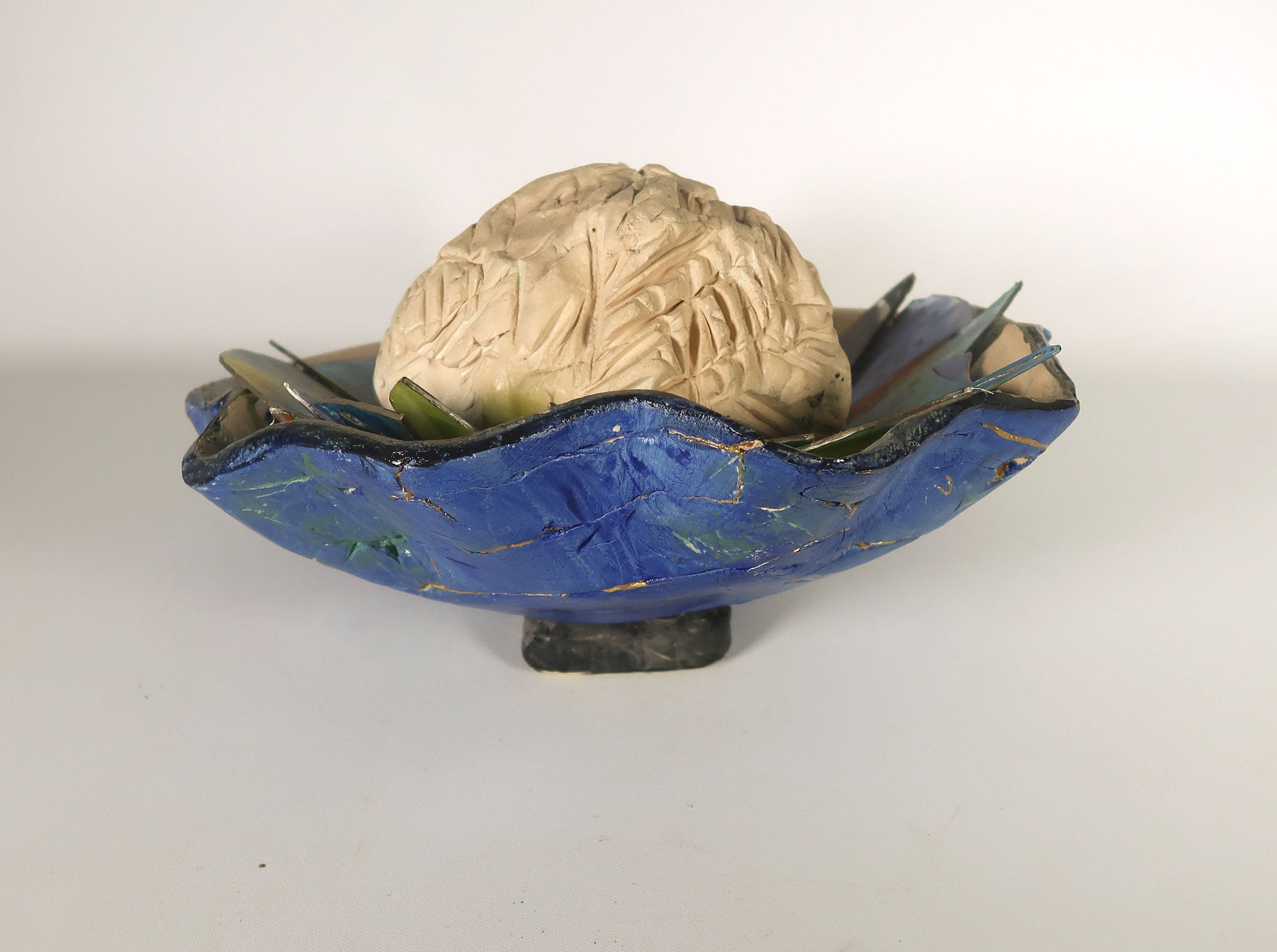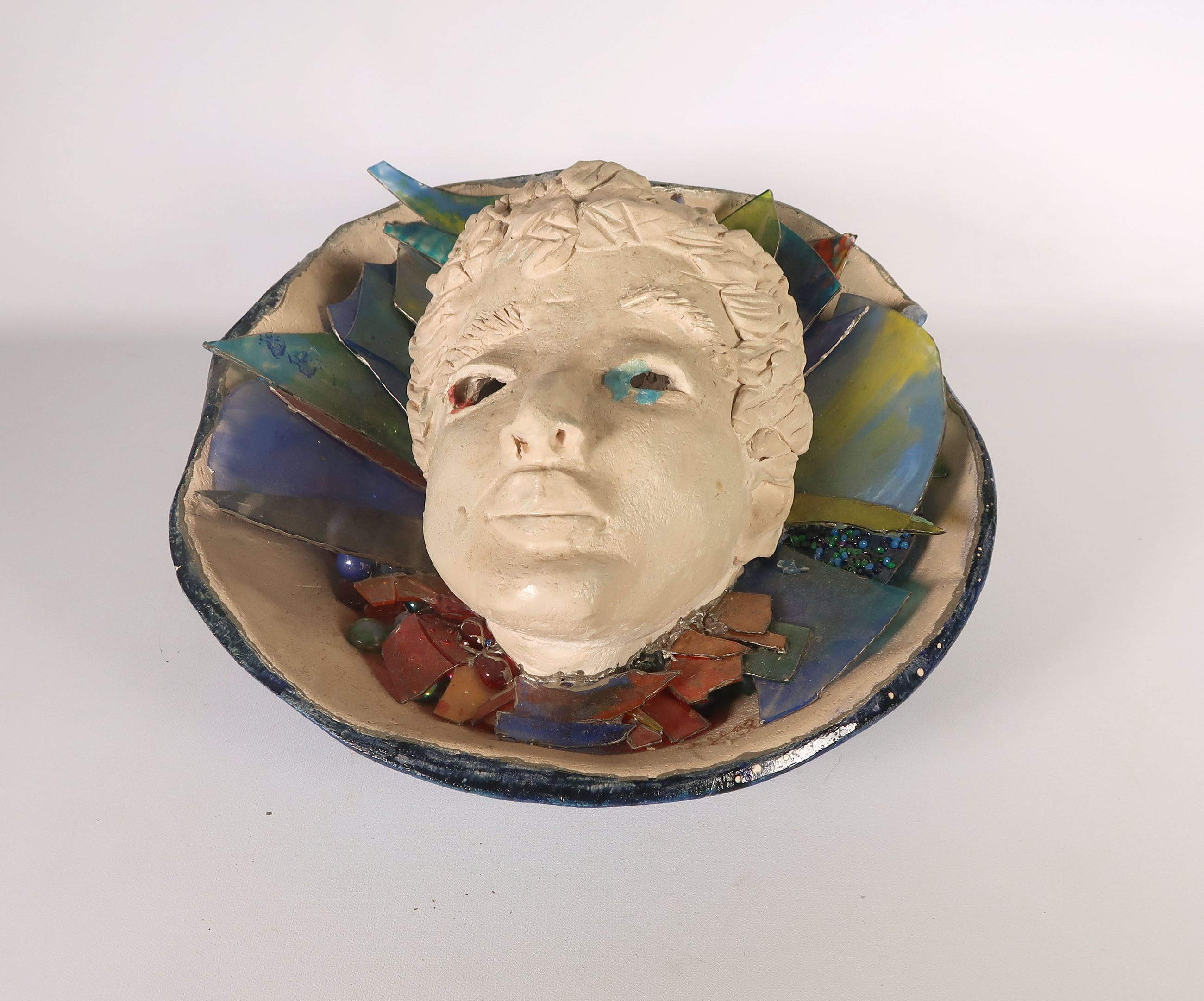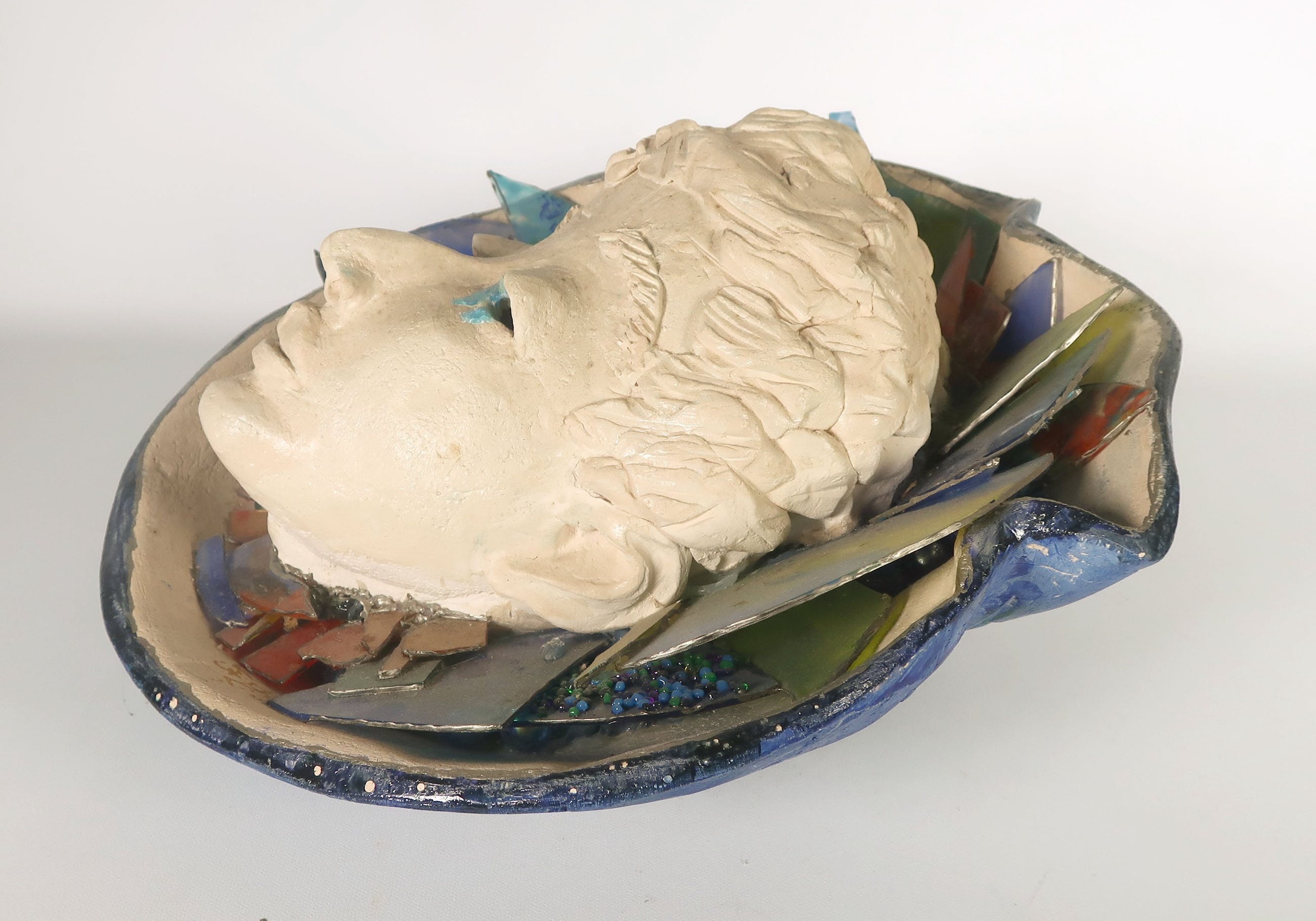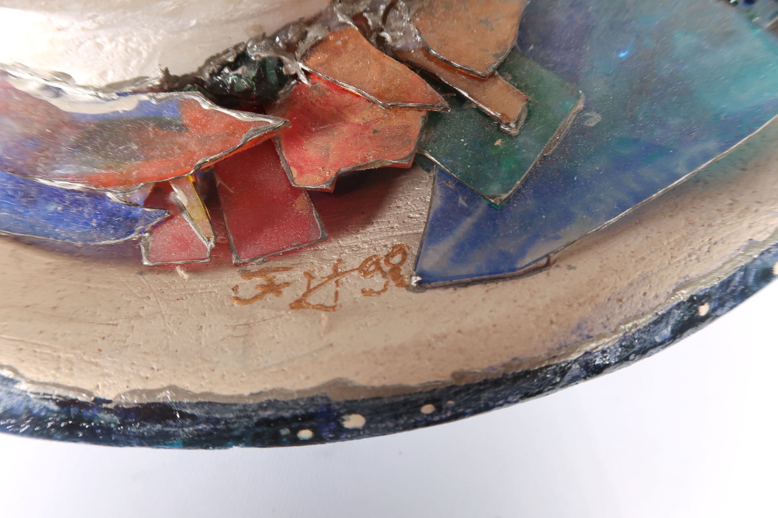 De glazen ornamenten in de schelp zijn stoffig en sommige onderdelen zitten los. | |||