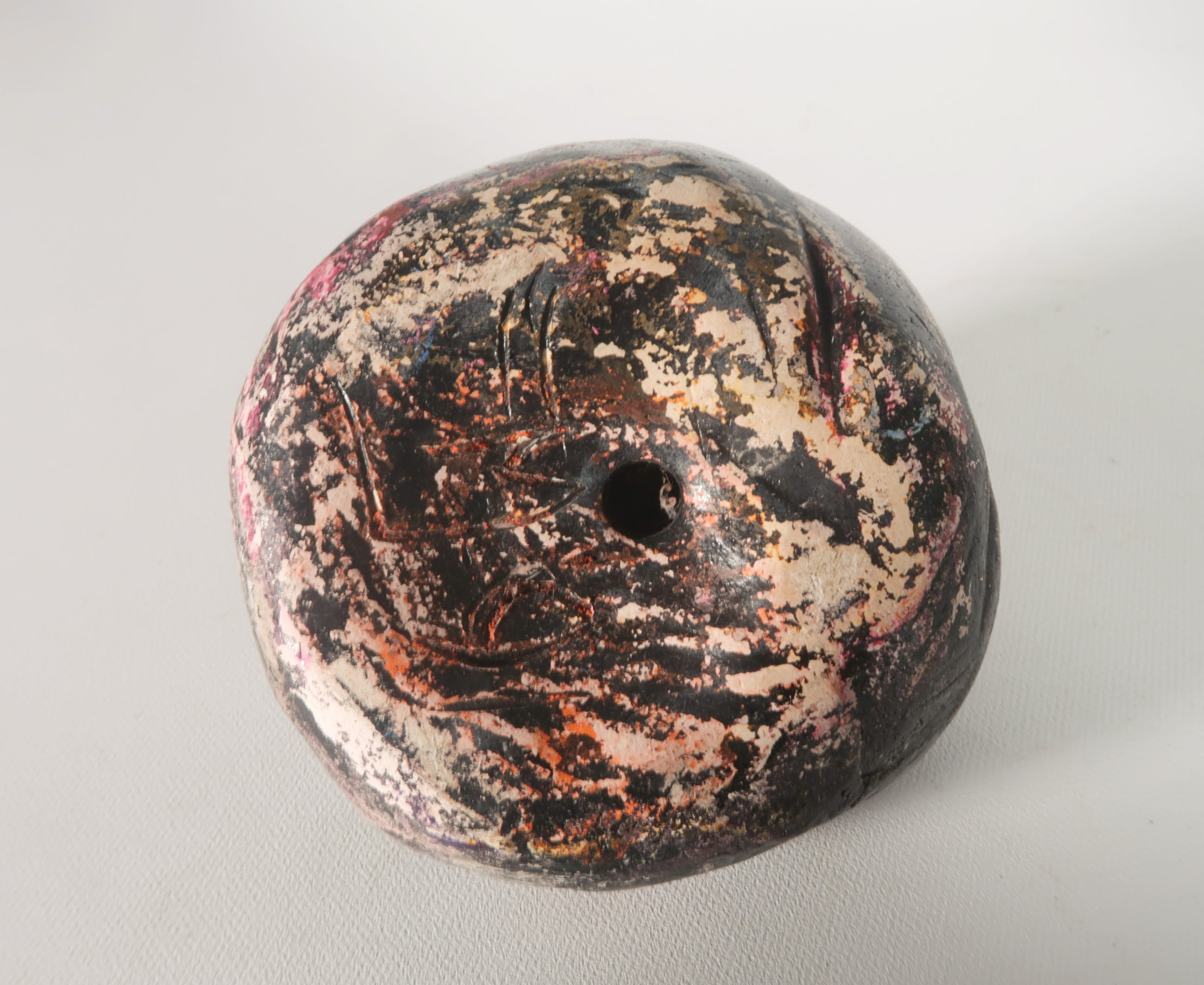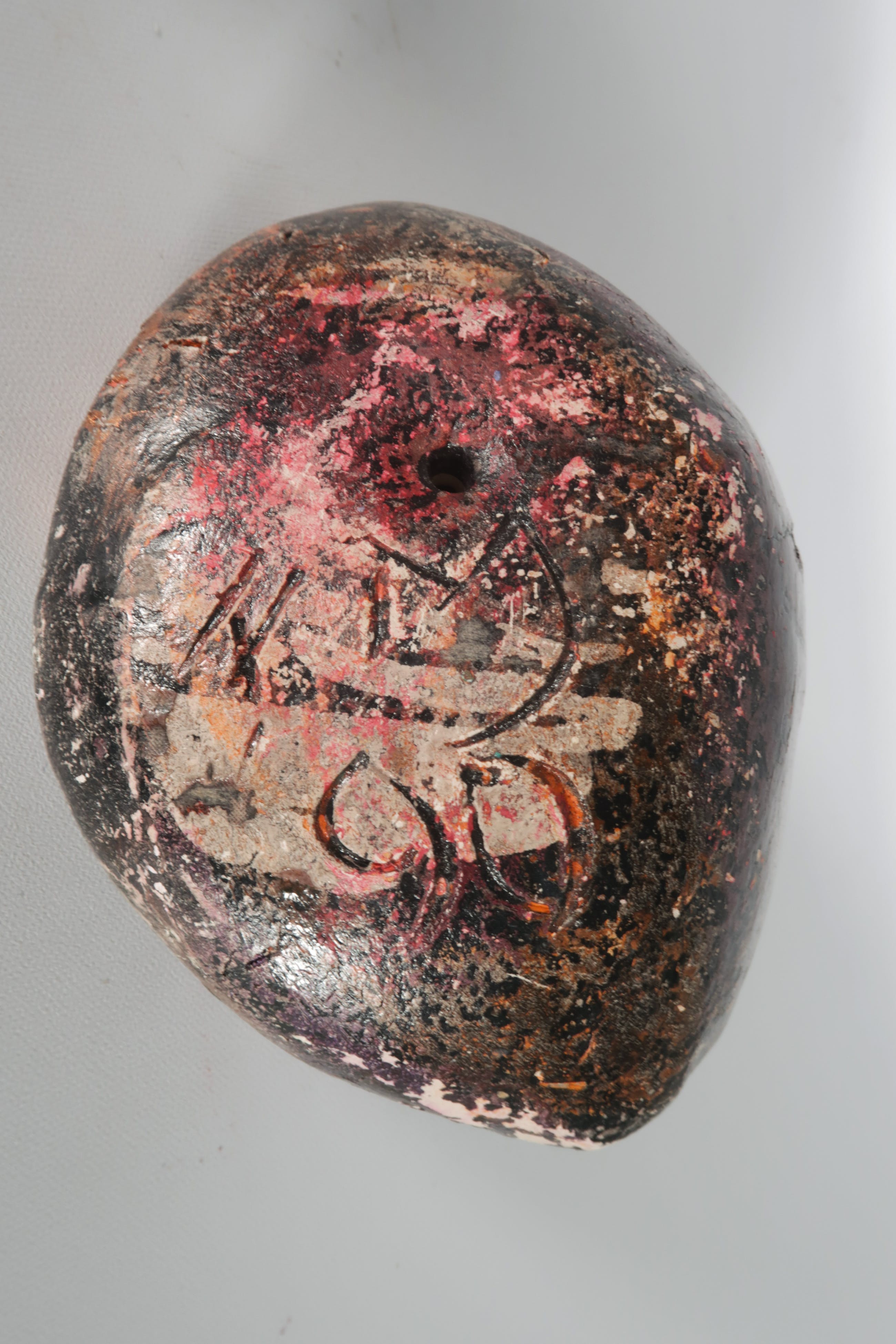 | De grotere 'steen' lijkt schade te hebben. Dit hoort echter bij het object, en is ook door de kunstenaar beschilderd. | |