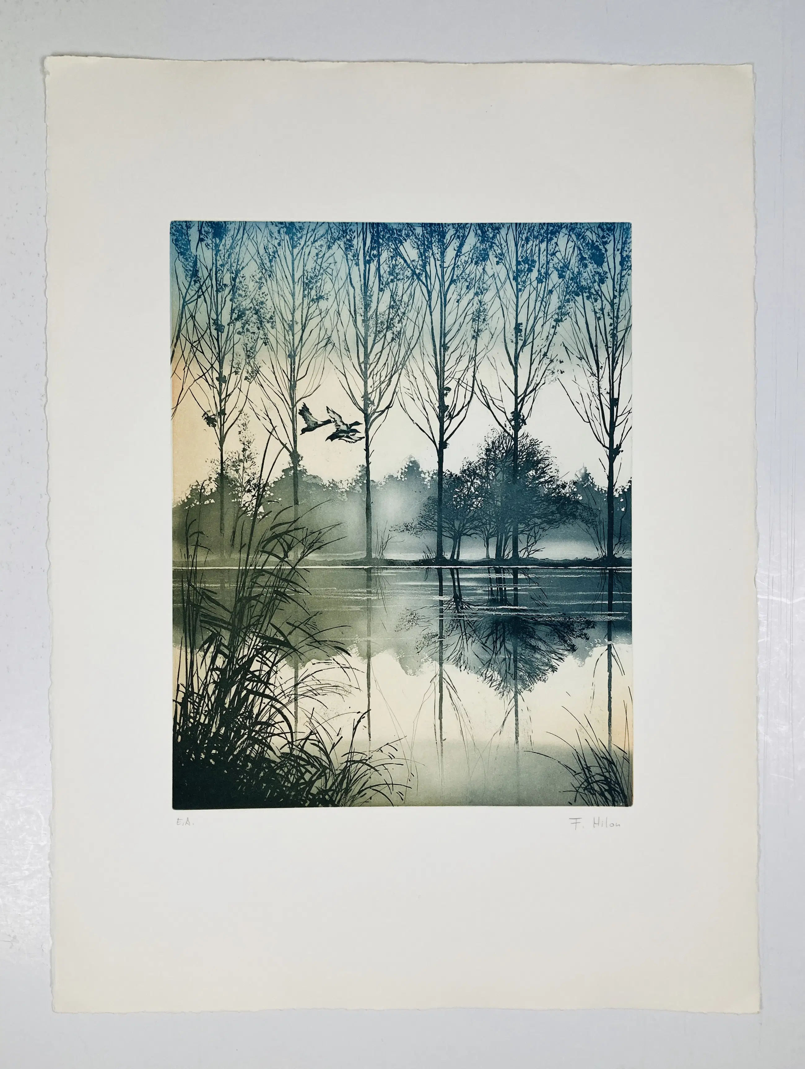 Een mooie ets van de kunstenaar France Hilon (1942). Het werk verkeert in uitstekende conditie en is handgesigneerd door de kunstenaar.