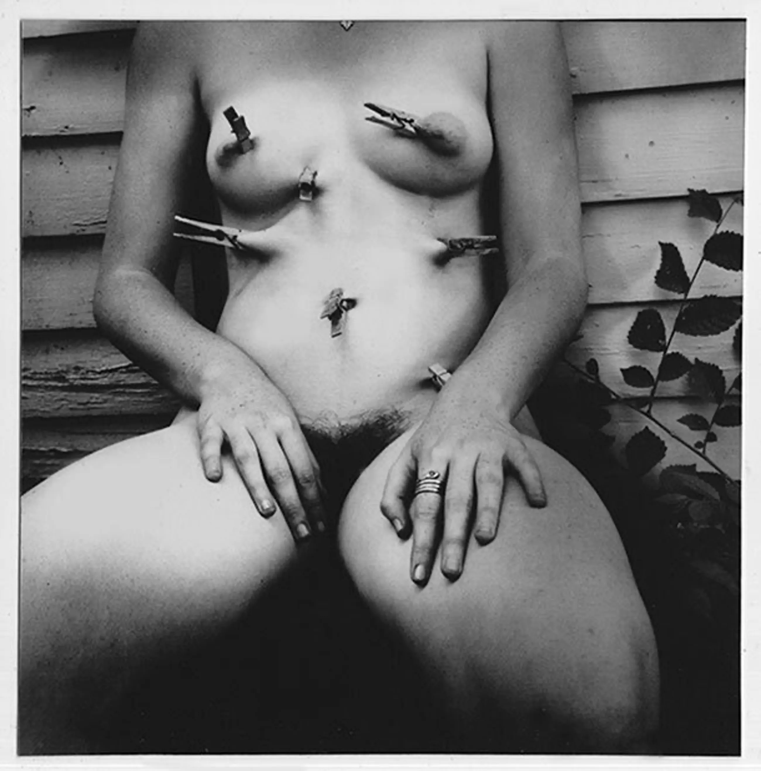 In 1973 maakte Francesca Woodman een van haar allereerste zelfportretten, zonder gezicht, die van haar buste, waarin ze haar lichaam kon manipuleren door wasknijpers op haar vlees aan te brengen, om zo haar fijne vormvervormingen te bereiken. , de achterkant op een muur buiten, verschoten, gemaakt van planken van hout, durfde zijn intimiteit meer te onthullen dan zijn gezicht.