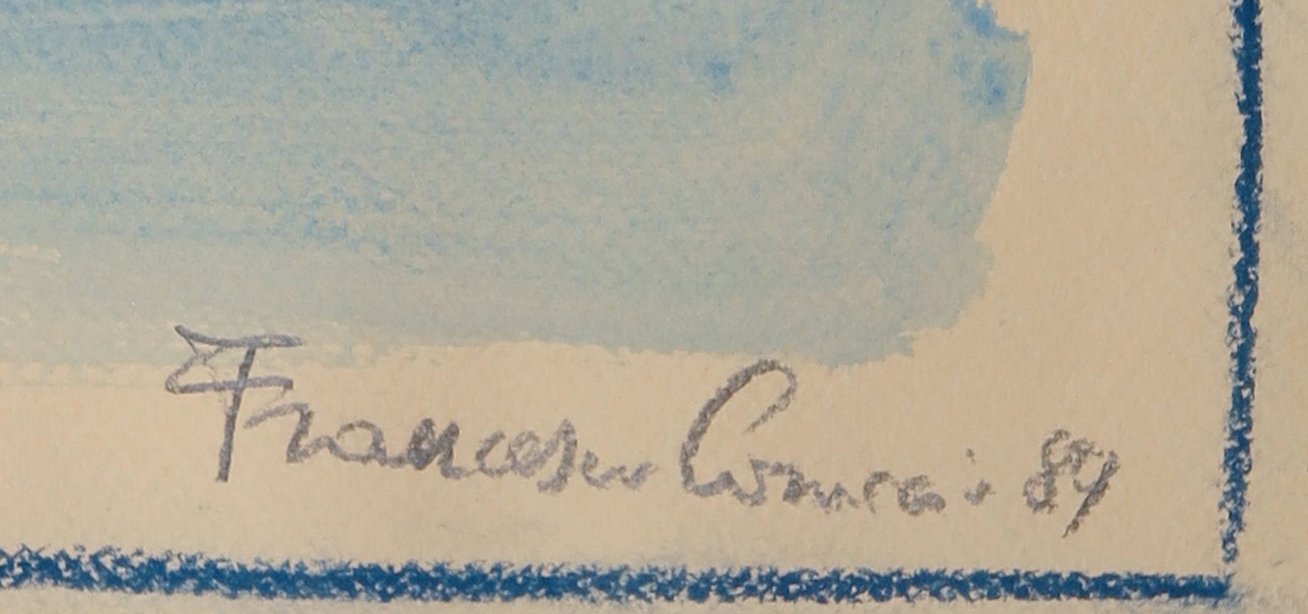| Goede staat, doch oogt het werk wat vlekkerig (door het krijt) en op het passe-partout zitten meerdere vegen/vlekjes van o.a. het krijt. | |