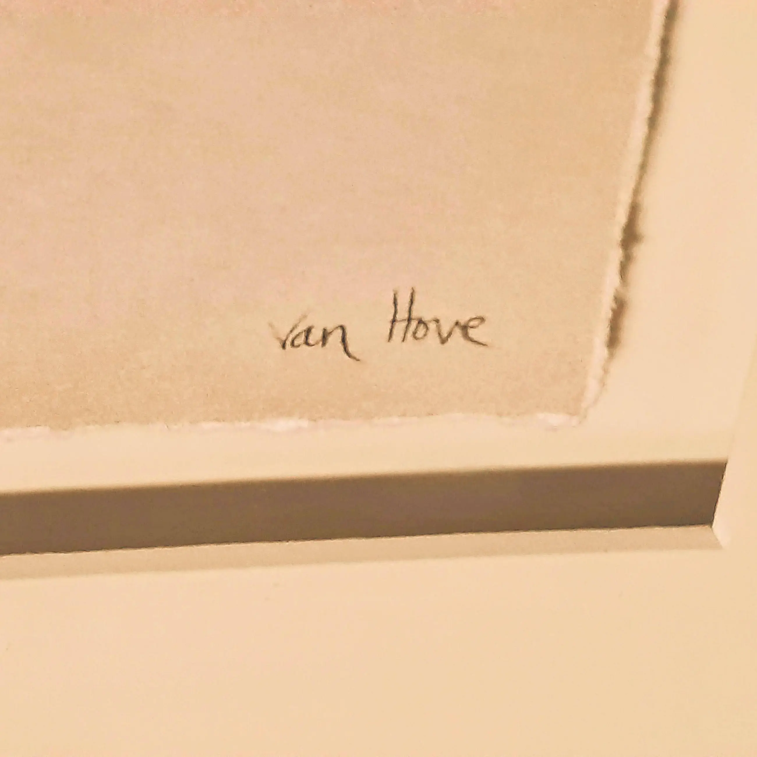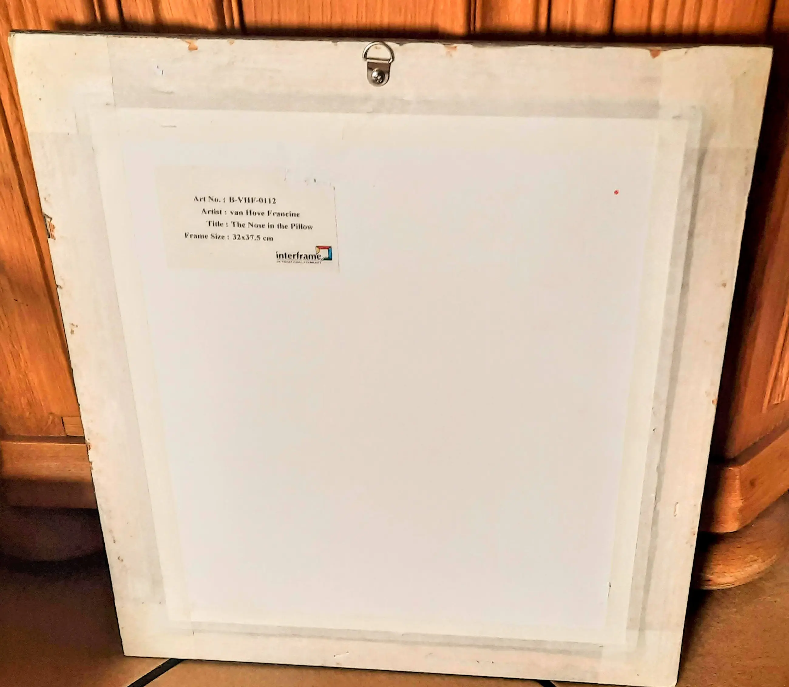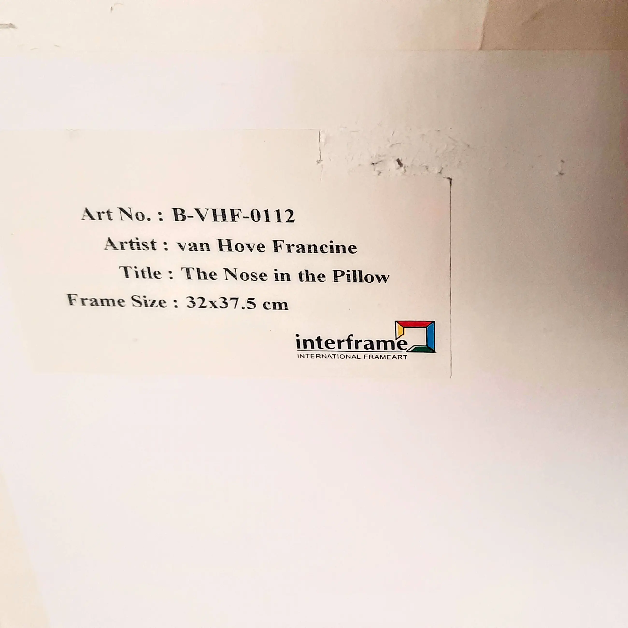 Een zeer fraaie litho, kunstdruk op handgeschept papier van de Franse kunstenares Francine van Hove (1942-2025), getiteld "De neus in het kussen" -