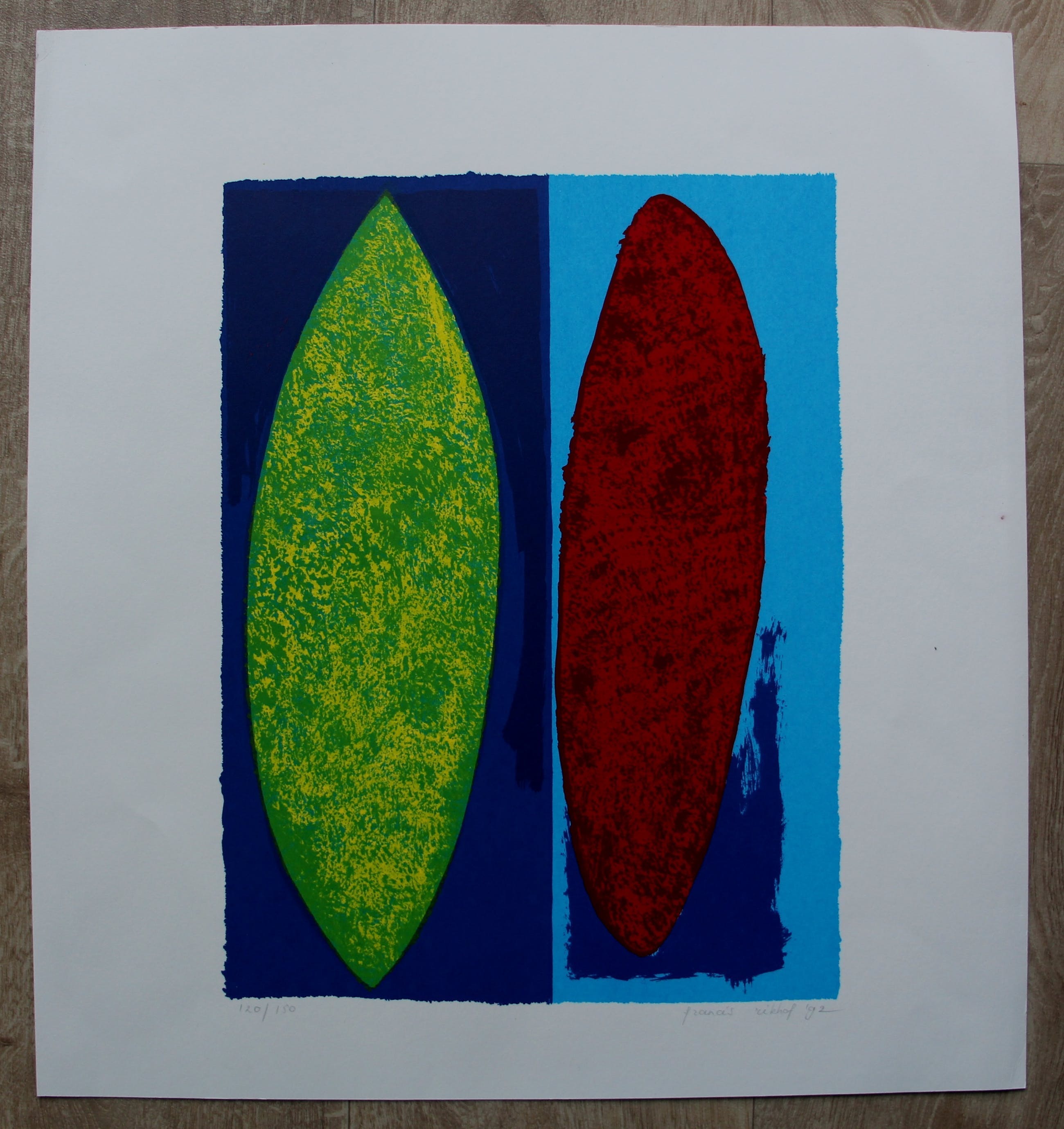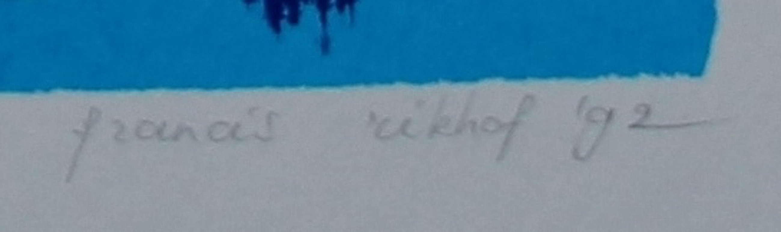 Zeefdruk van Francis Rikhof uit 1992. Nummer 120/150. Afmetingen blad H53.5 x b49.5. Afmetingen voorstelling H41 x b30. Het werk is rechtsonder gesigneerd door de kunstenaar. De authenticiteit van het aangeboden werk wordt volledig gegarandeerd. Een certificaat van echtheid kan op aanvraag worden gemaild.