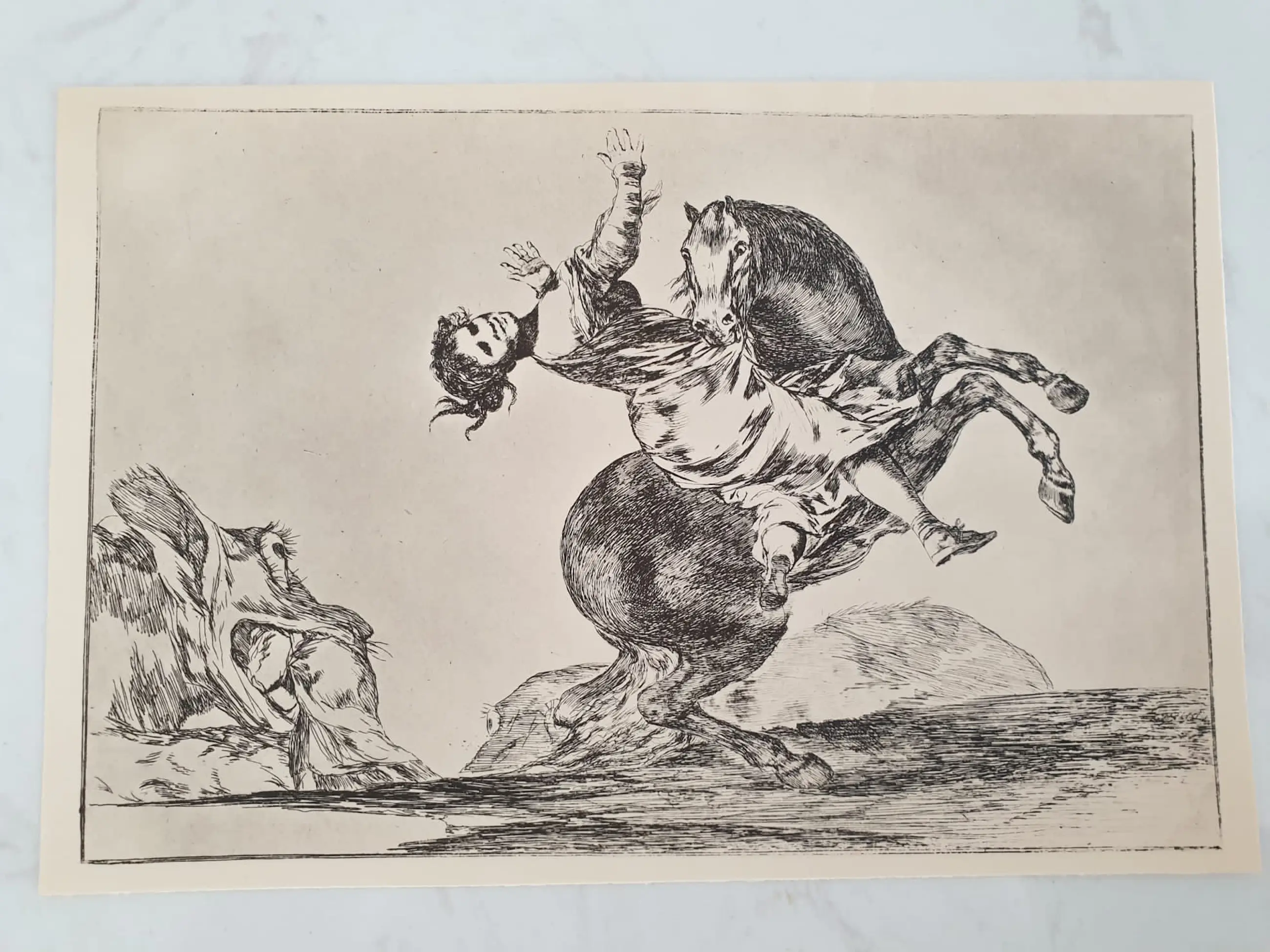 Antieke litho van Francisco de Goya . ca 130 jaar oud. In zeer goede staat. Getiteld: De paardenontvoerder.