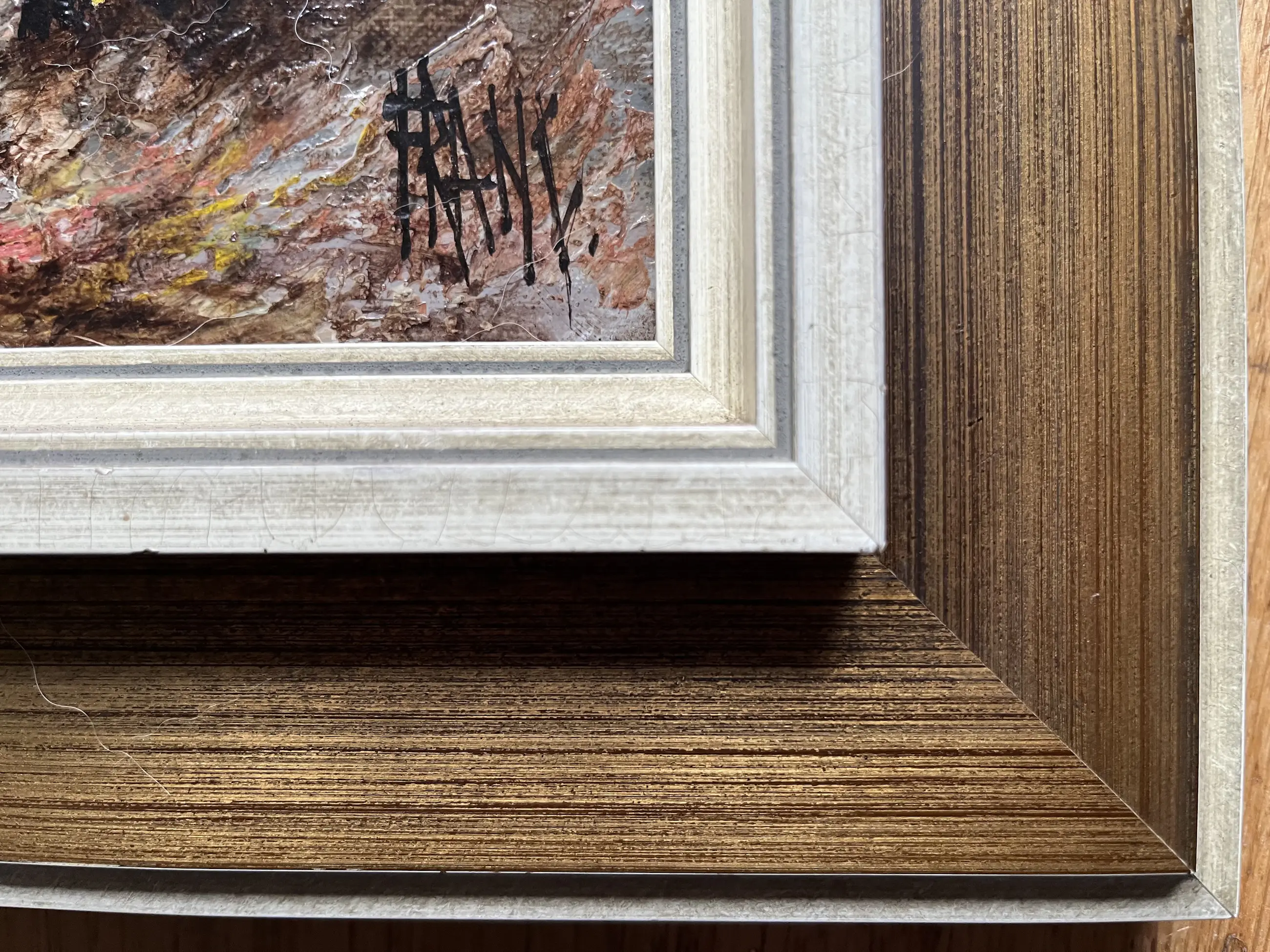 Sfeervol tafereel gelijst in bijpassende lijst. Afmeting afbeelding 25 x 33 cm. Inclusief lijst 38 x 46,5 cm.