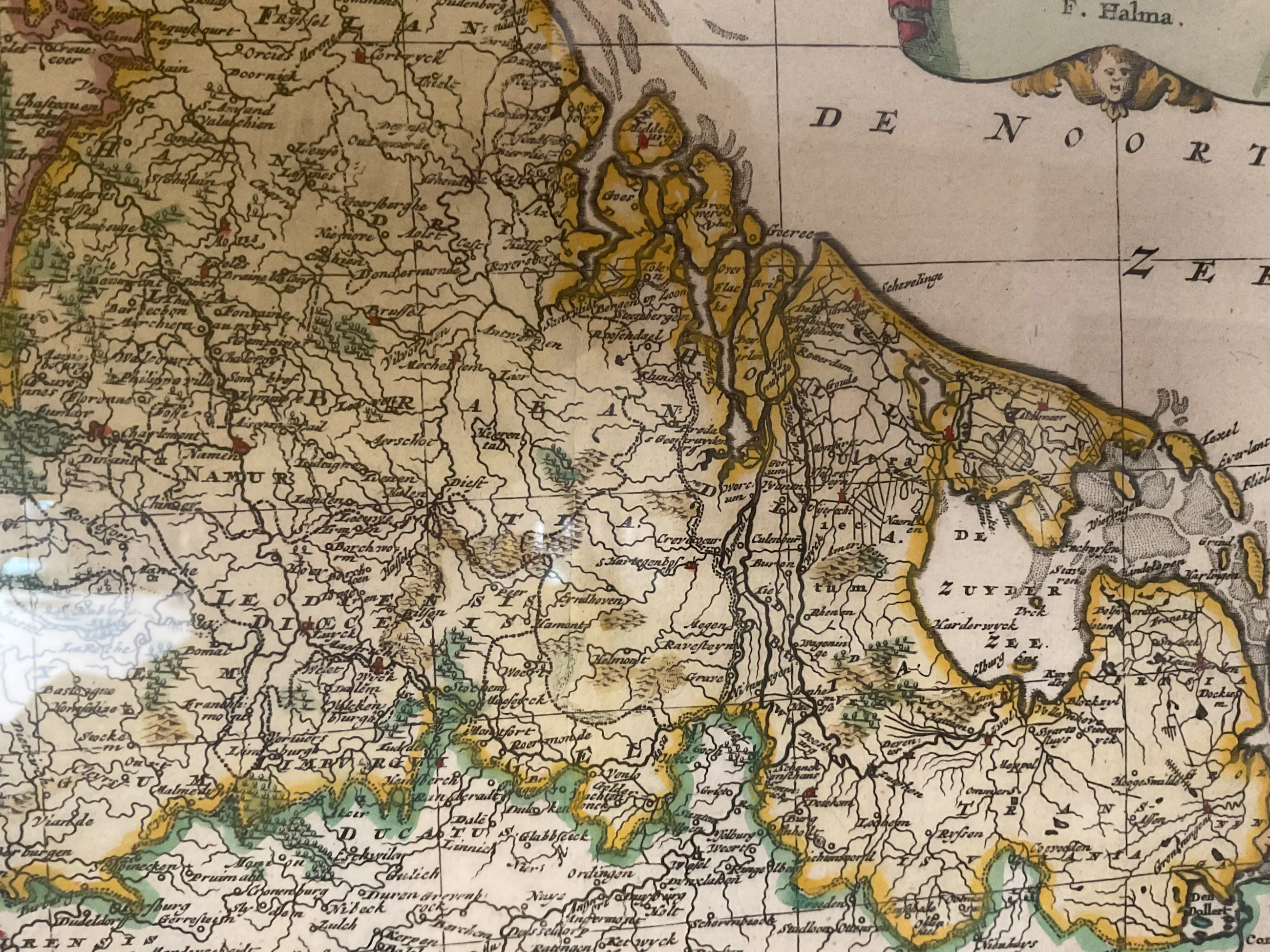 Leuke kaart van de Nederlanden aan het einde van de 17e eeuw. Keurig gelijst