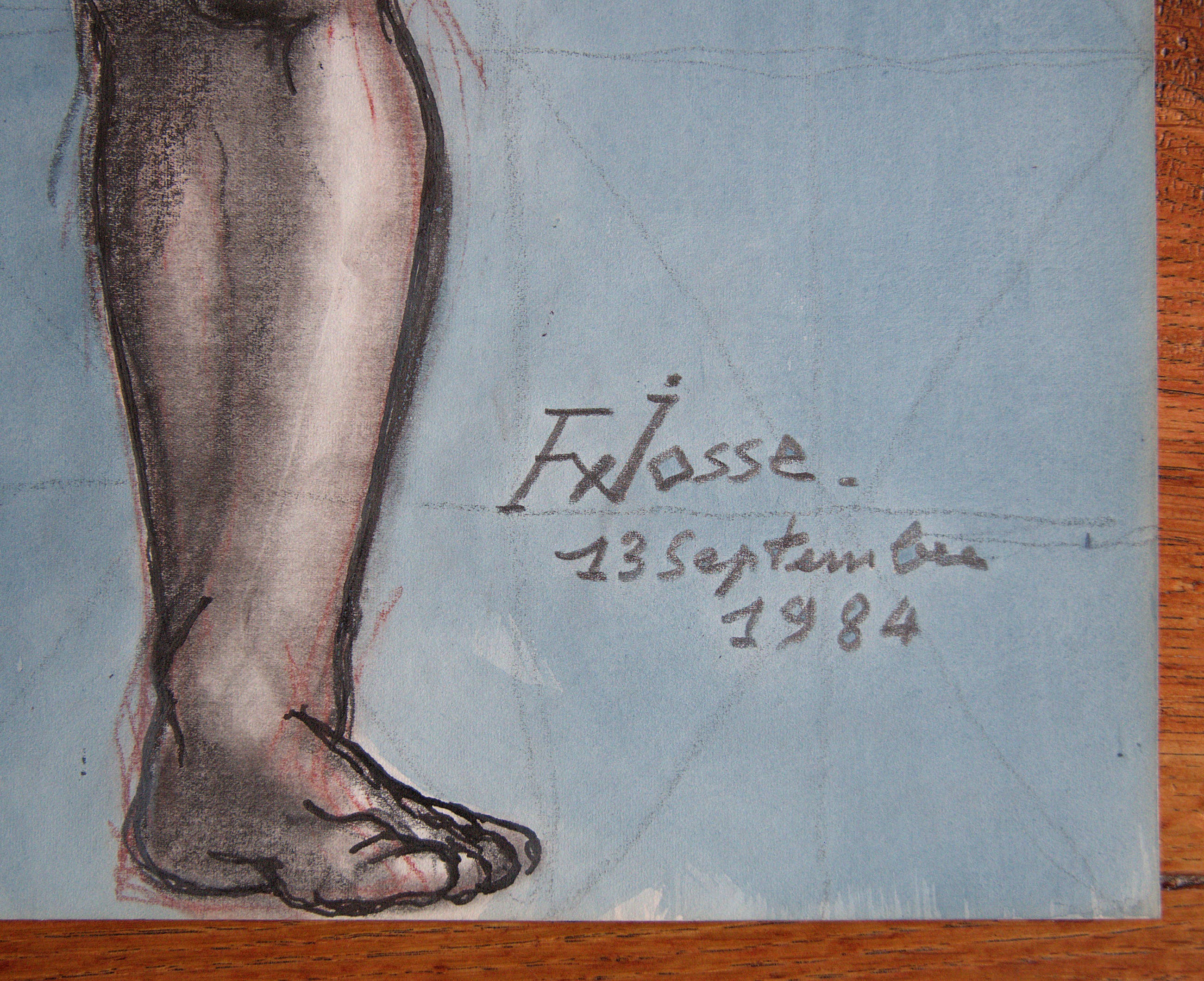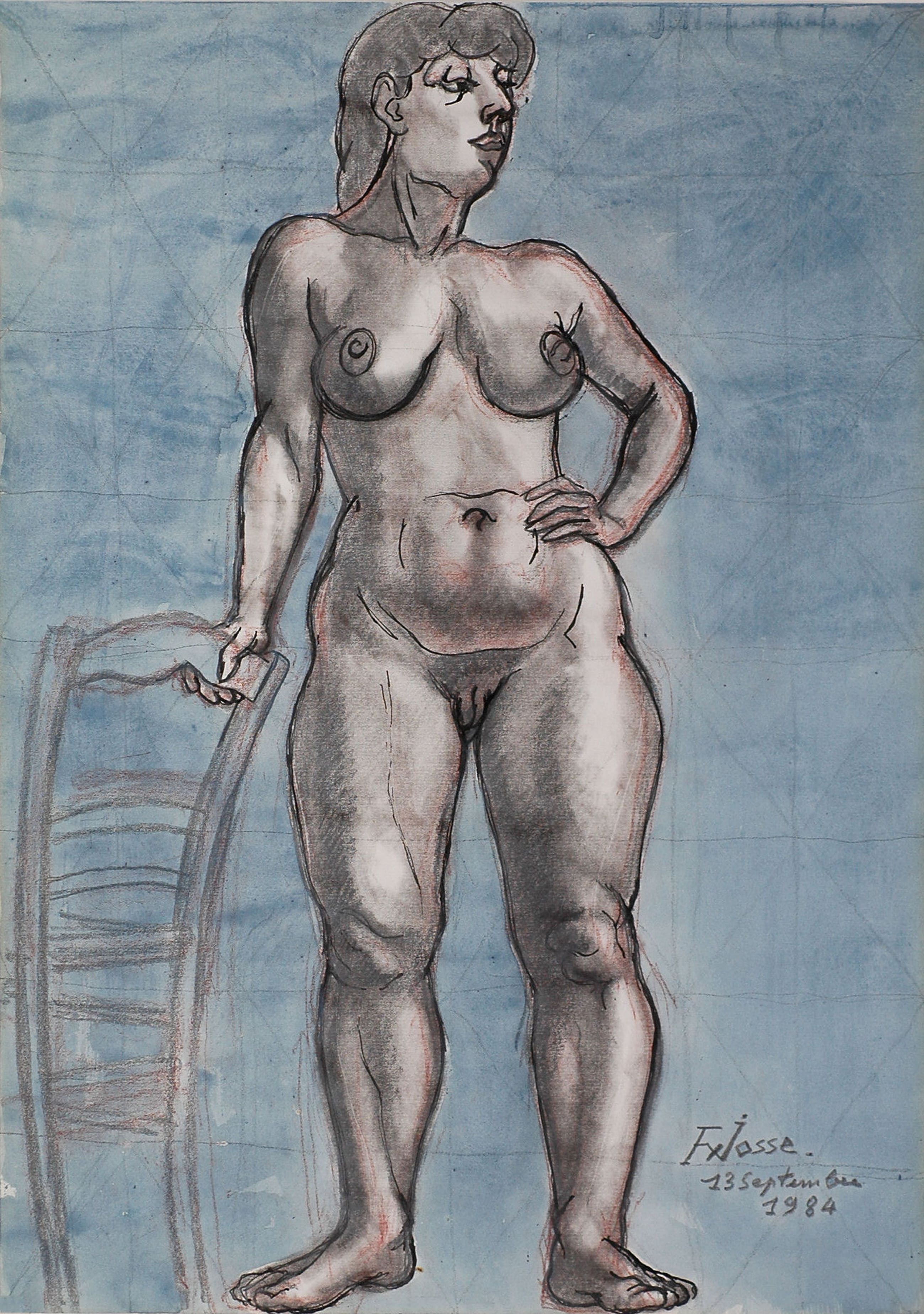 Prachtige tekening (houtskool/aquarel) van een staand naakt.De kunstenaar Francois-Xavier Josse deelde een atelier met Osip Zadkine.