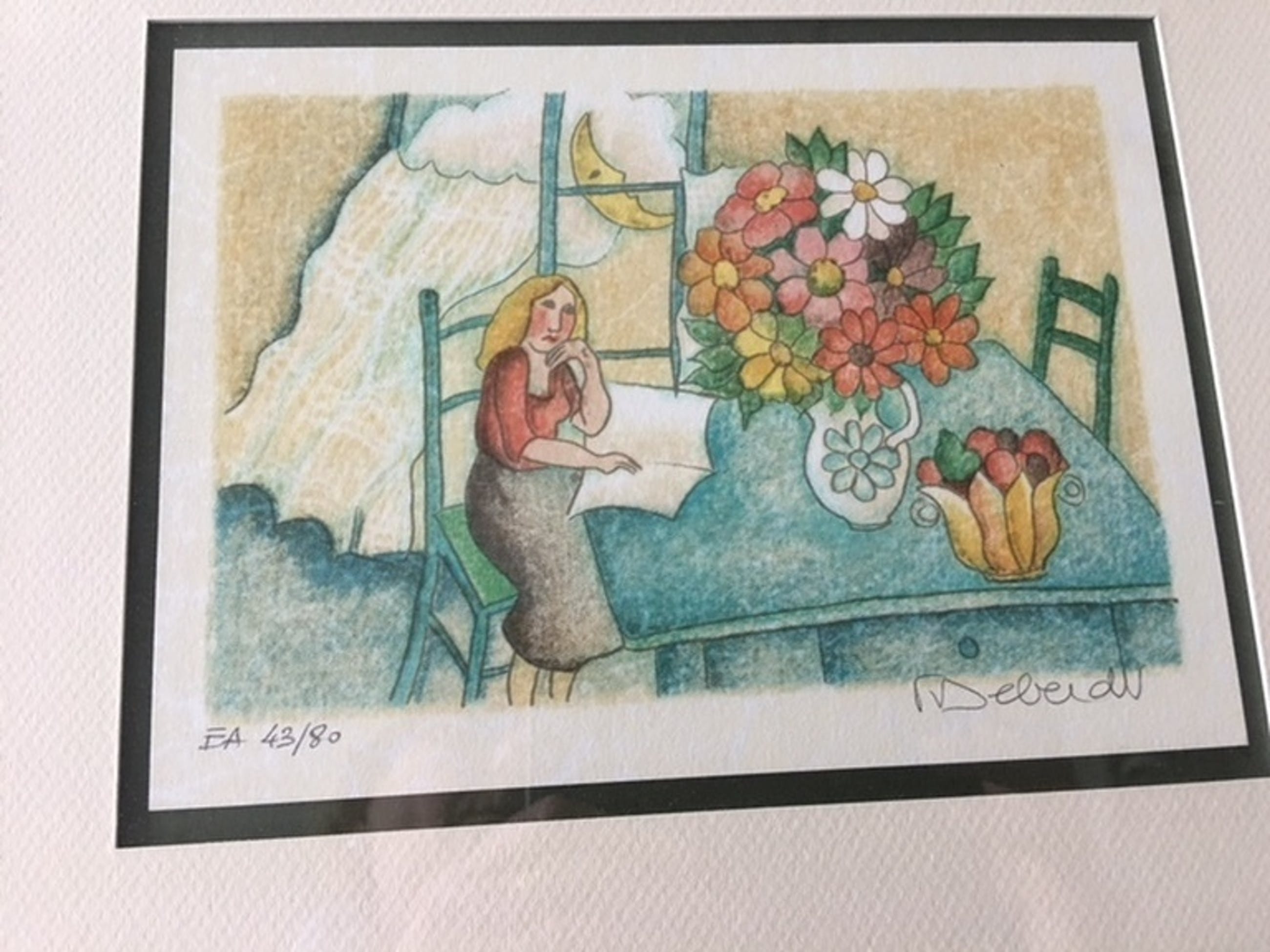 Afmetingen : 19 x 14 cm, mooi ingekaderd 32 x 26 cm.
