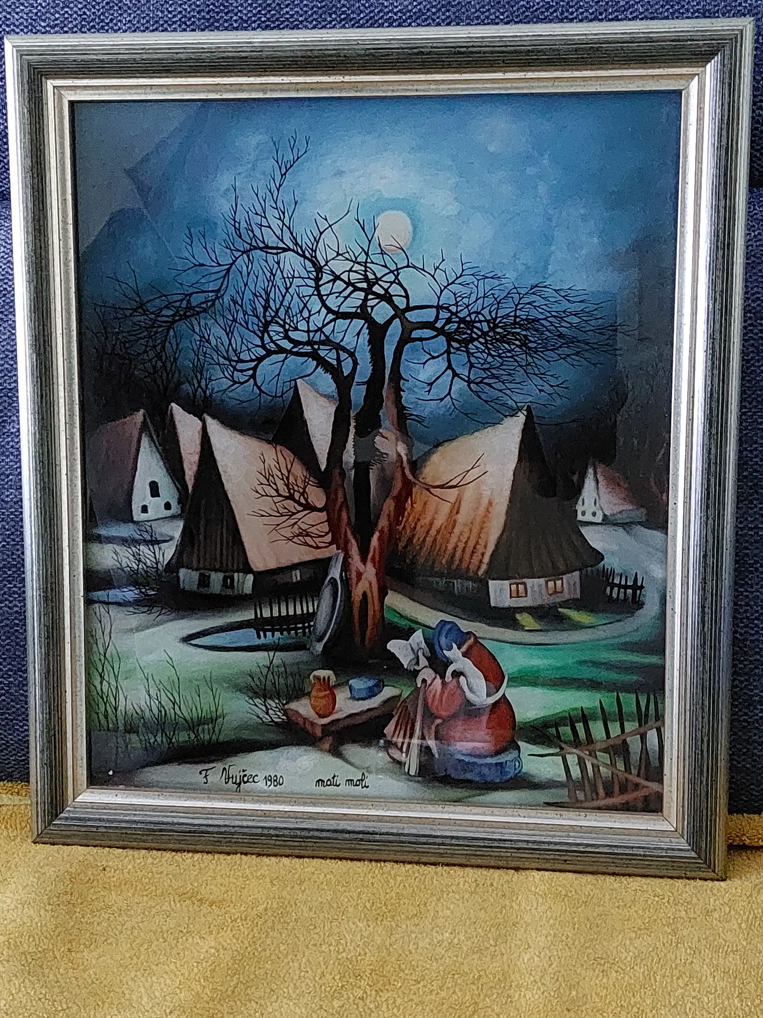 Franjo Vujcec - Lezend vrouwtje met kat in boerendorp