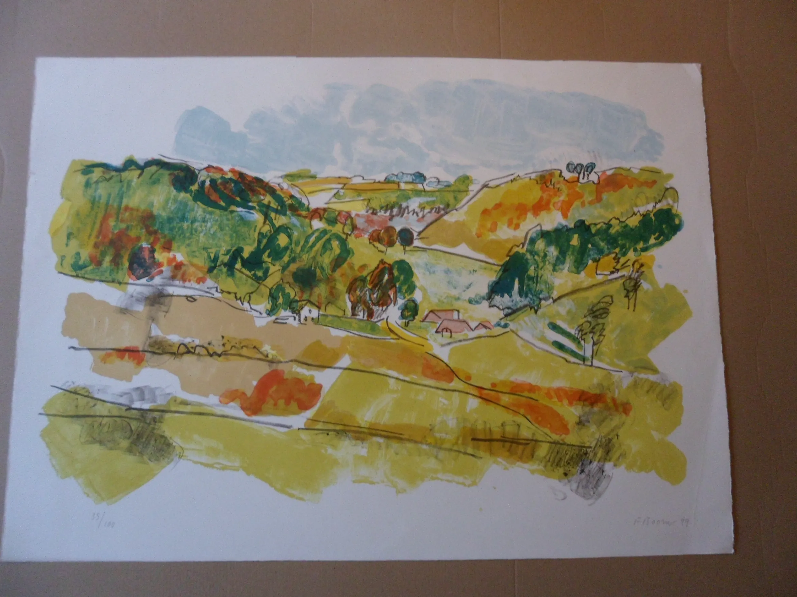 Werk heeft een vouw rechts onder en een klein puntje .Zie de foto's voor een goede indruk.