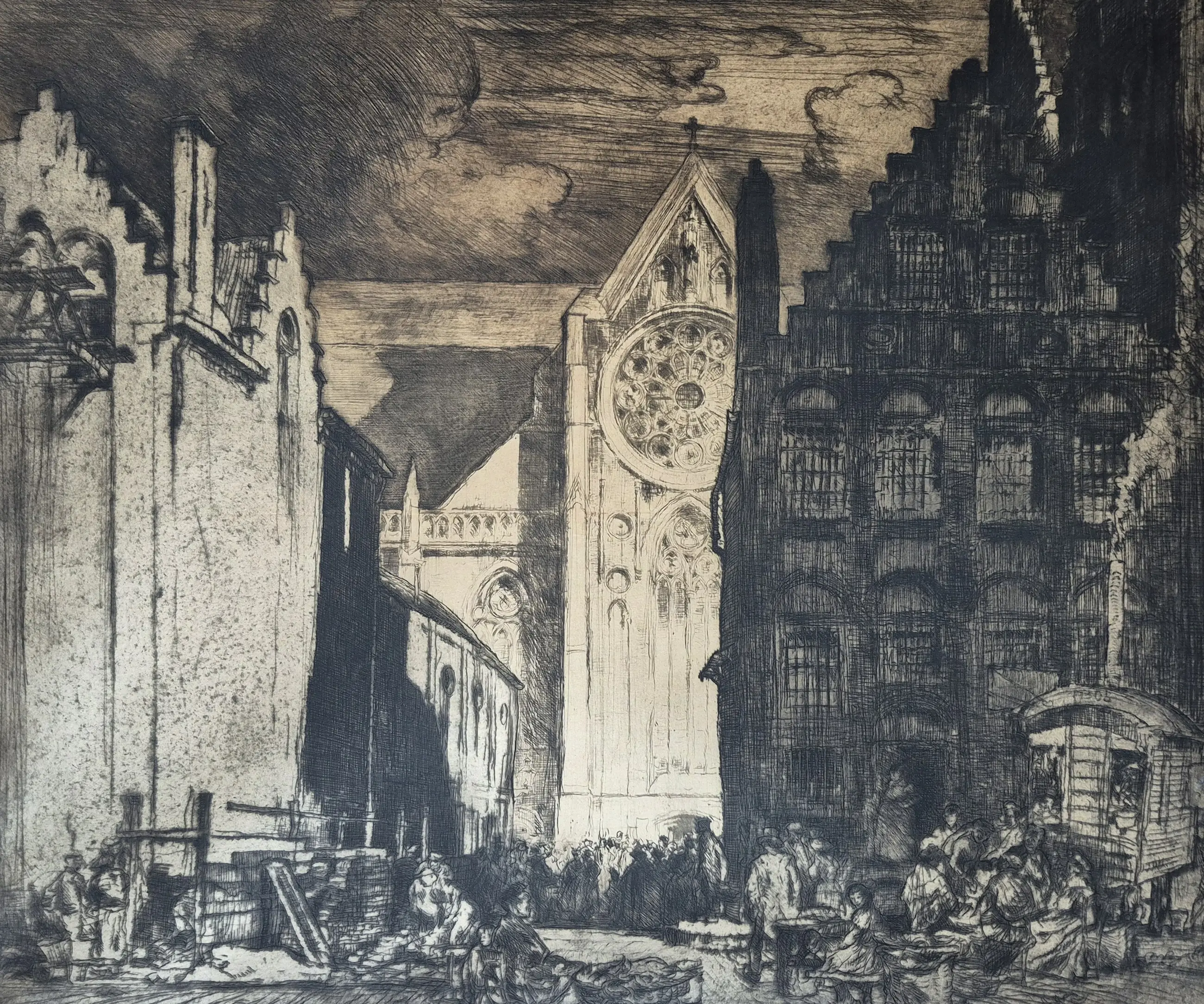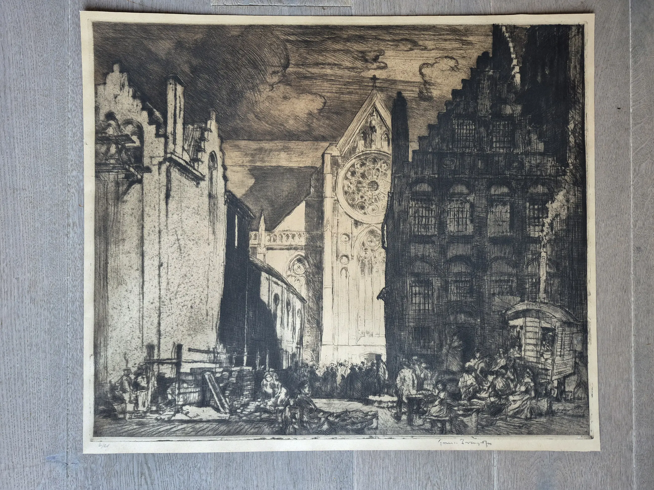 Sir Frank Brangwyn was a British artist born in 1867 in Bruges, Belgium. He was known for his work in painting, watercolour, printmaking, illustration, and design, often depicting the sea and life on the seas. Sir Frank William Brangwyn passed away in 1956 in Ditchling, East Sussex. His works are exhibited in the British Museum, the William Morris Gallery, and Arents House Museum. Brangwyn was the recipient of numerous awards, including the Medal at Paris Salon, Chevalier of the Legion of Honour, Associate member of the Royal Academy, Commander of the Italian Order of Saints Maurice and Lazarus, Commander and Cross of the Order of Leopold I of Belgium, Full member of the Royal Academy, the Albert Medal, Grand Officer of the Order of Leopold II of Belgium, Knight Bachelor, Great Britain. He was influenced by Arthur Heygate Mackmurdo and William Morris, and had notable peers such as Robert Hawthorn Kitson, Diego Rivera, Josep Maria Sert, and John D. Rockefeller Jr.