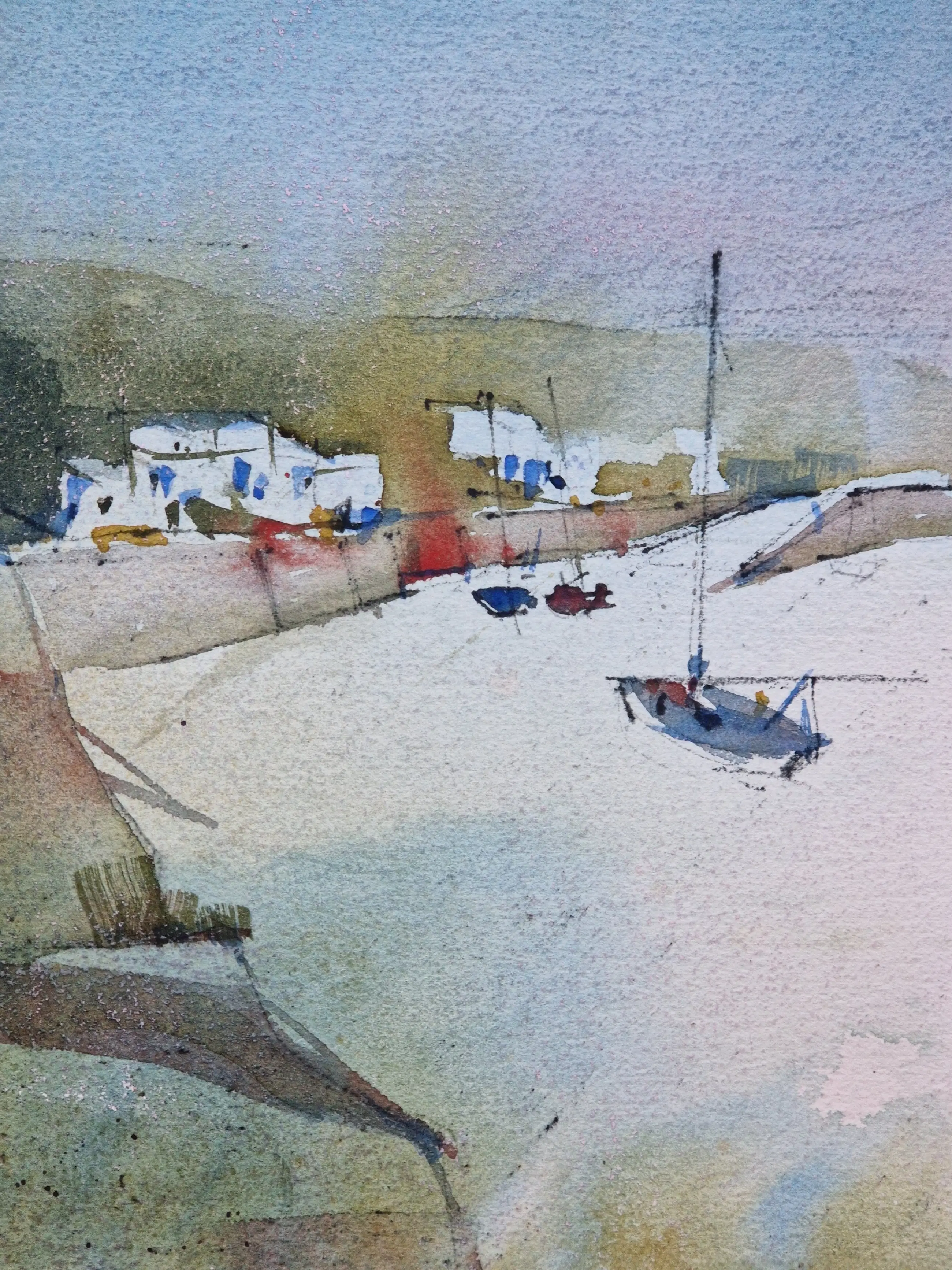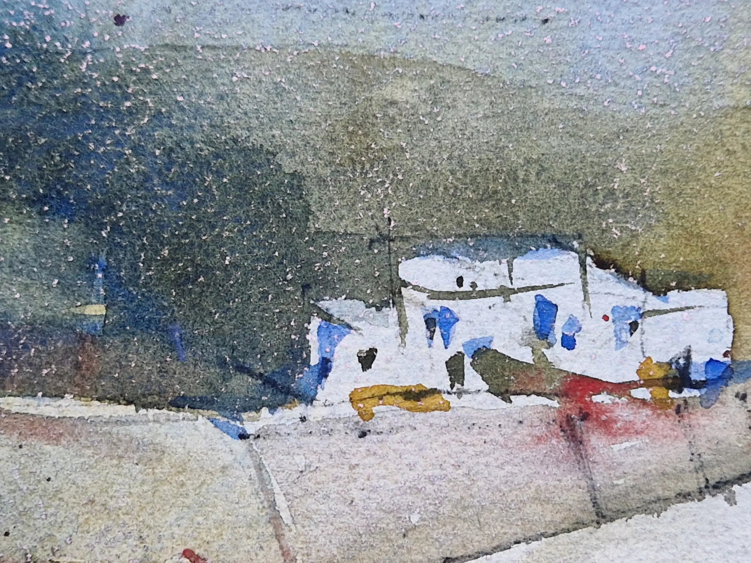 “ Ik gebruik naast acrylaat ook papier, oude jutte, ijzerdraad, zand en ruwe stoffen. Vaak keren 4 grote thema’s terug in mijn werk, Parijs, interieurs, zeilimpressies en havenzichten.” ""
