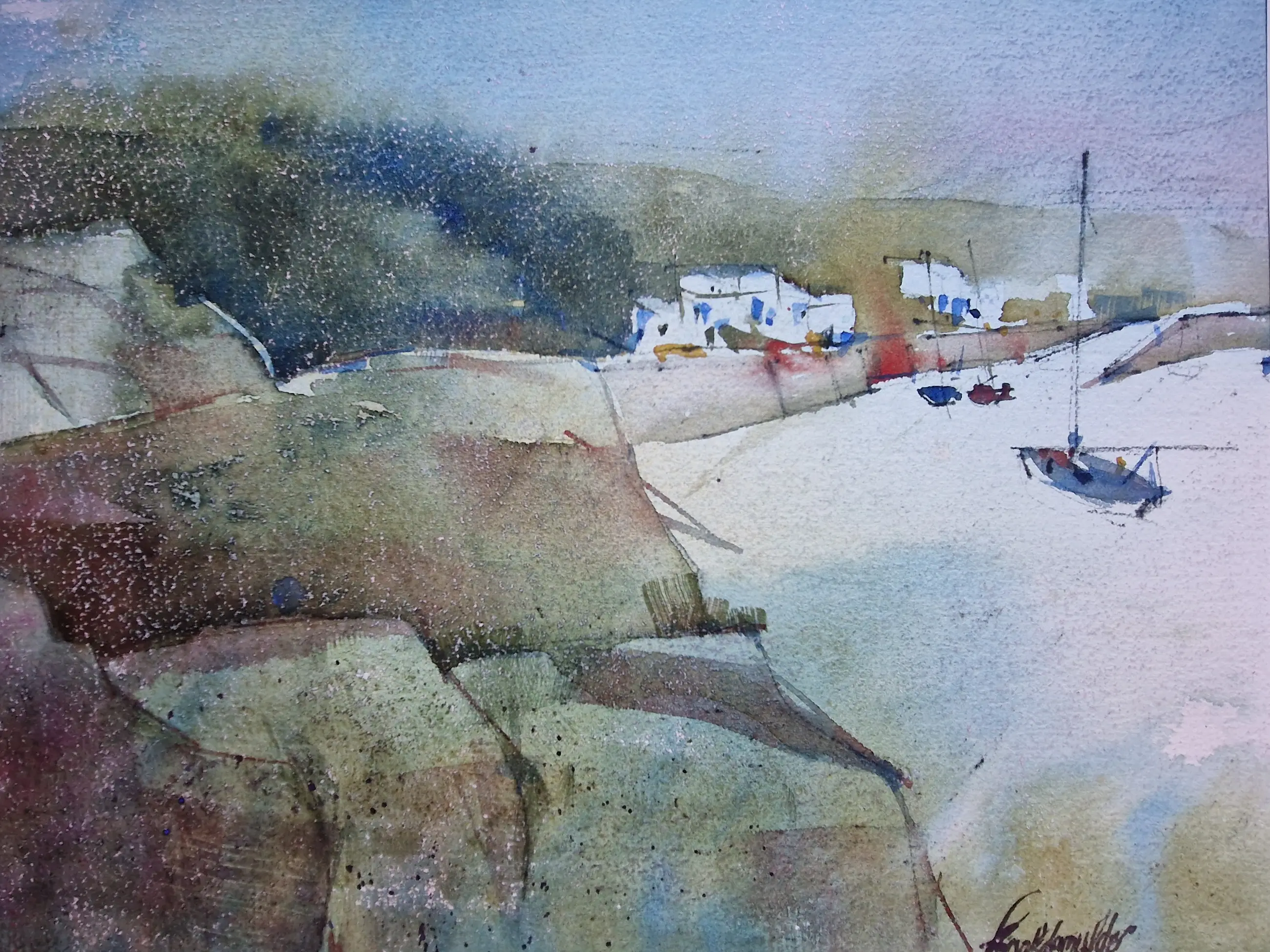 Fraaie, vroege aquarel van de Belgische kunstenaar Frank de Mulder.