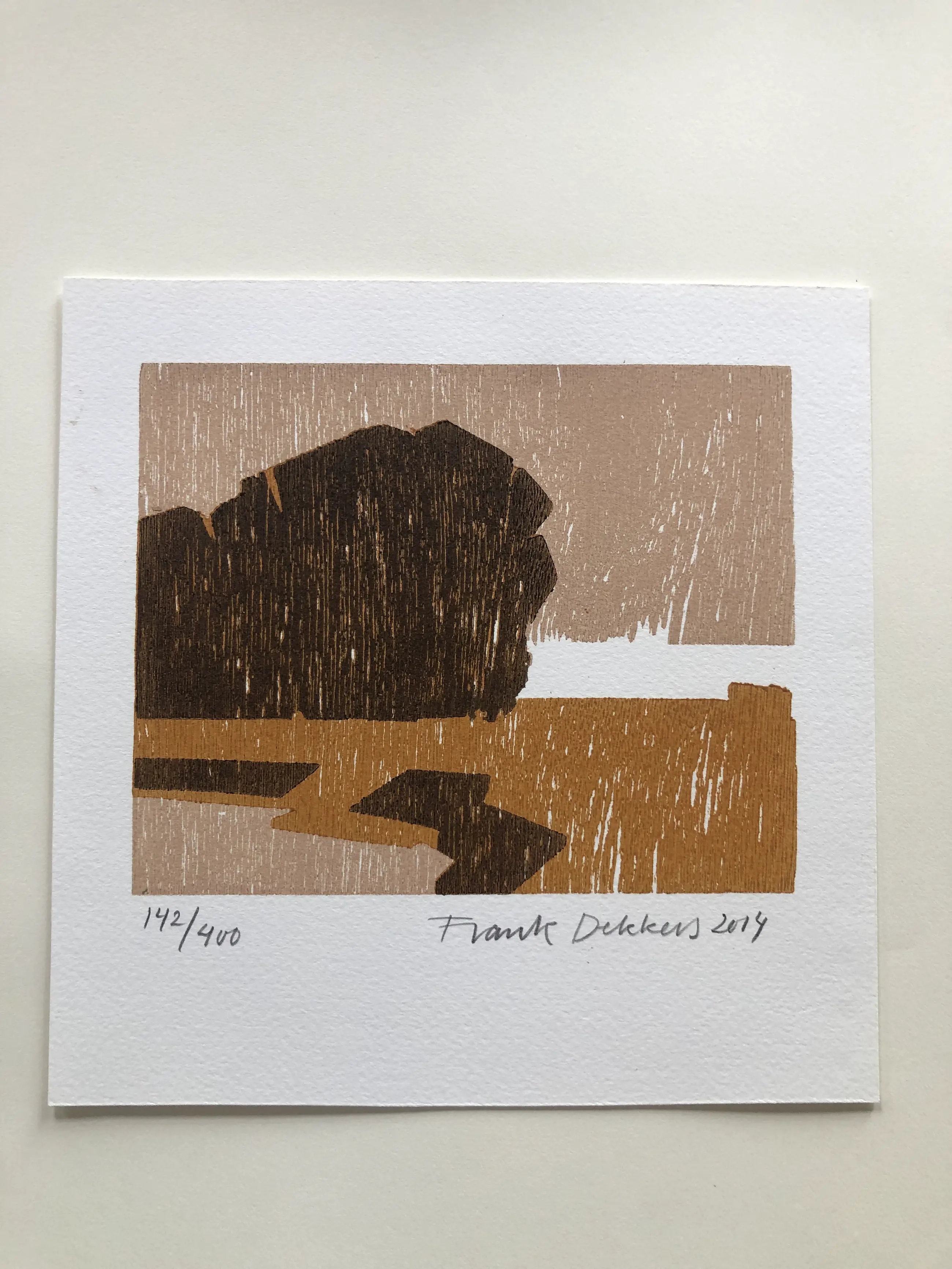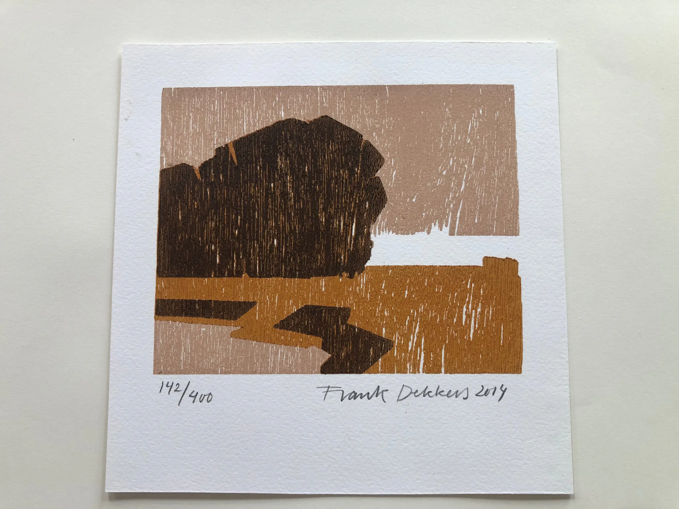Frank Dekkers 1961 Hout/Linosnede Drager Papier Niet Ingelijst Afmetingen 20 x 20 cm Gesigneerd Handgesigneerd Oplage 142/400 Is goed staat