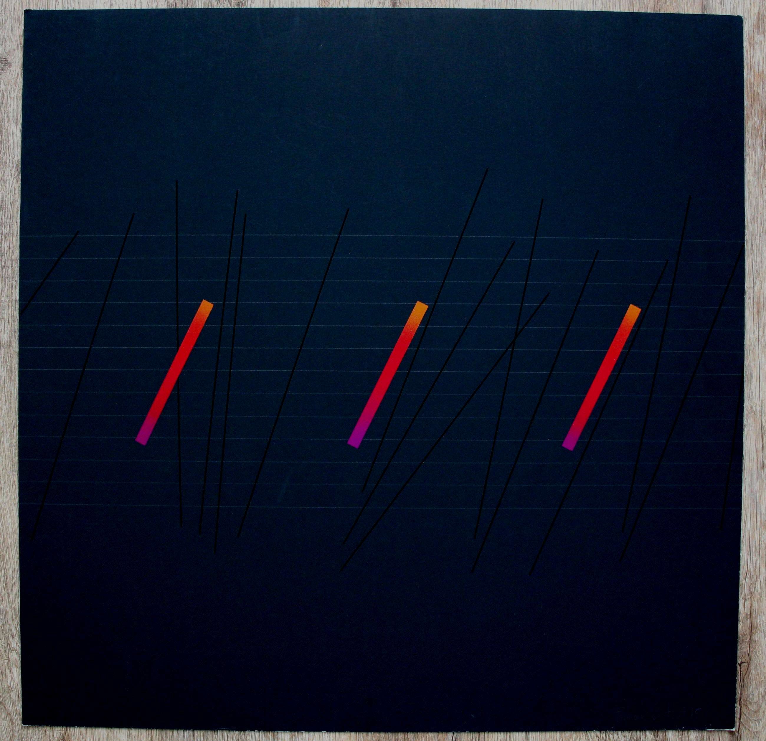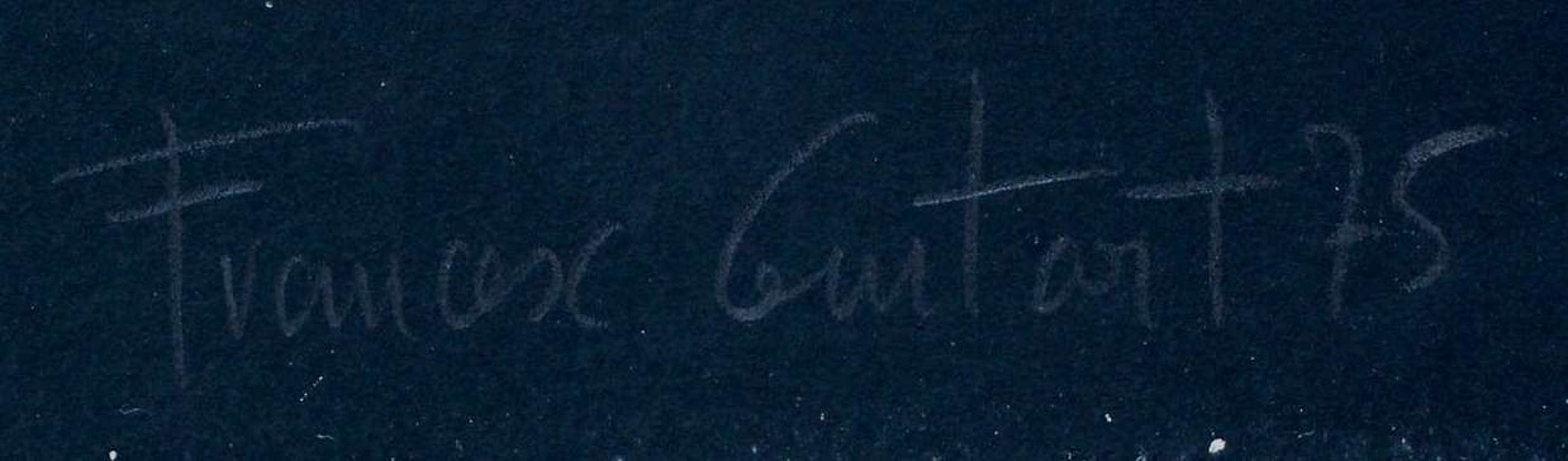 Geometrische compositie van Frank Guitart. Jaar : 1975. Afmetingen blad: H65.5 x b65.5cm. Het werk is rechtsonder gesigneerd met potlood. De authenticiteit van het aangeboden werk wordt volledig gegarandeerd. Een certificaat van echtheid kan, op aanvraag, worden gemaild. De verzendkosten zijn iets hoger i.v.m. de dikte van het papier. Het werk moet plat verzonden worden.