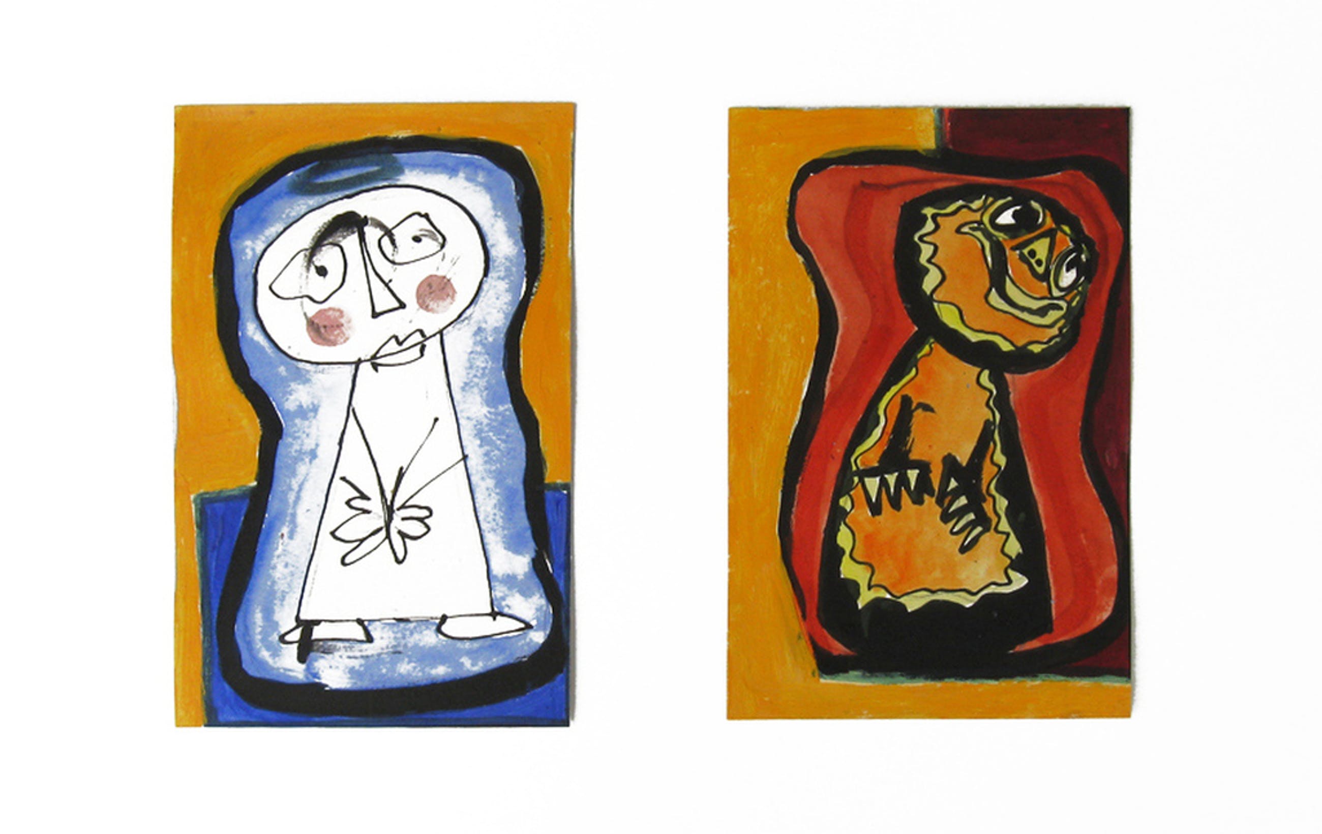Lot van 2 kleine werken op papier, op karton gelijmd. Onderdeel van groter geheel AT THE SUNNY SIDE OF THE STREET van Frank Hulscher, met daarop verschillende grafische danwel schildertechnieken uit 1993. Deze 2 werken, afmetingen 96 x 145 mm zijn uitgevoerd in acrylverf en pen. Verzending NL 6,75 euro. Belgie 12,40 euro.
