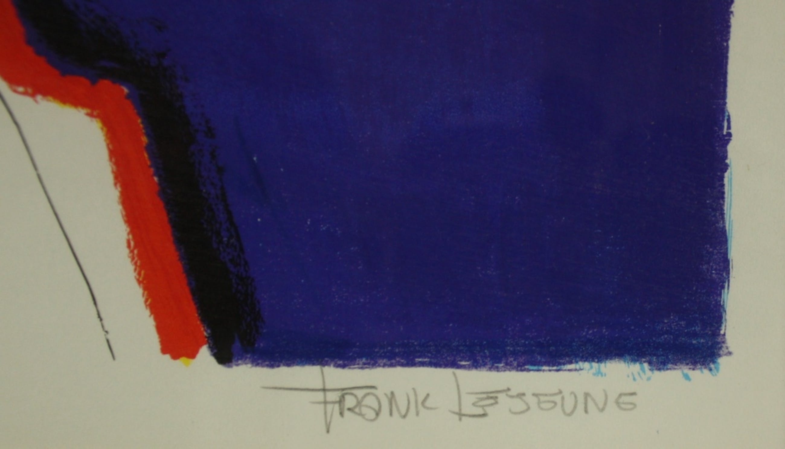 Mooi kleurrijk werk van de hand van Frank Lejeune. Netjes ingelijst in een 'whitewash' houten lijst.