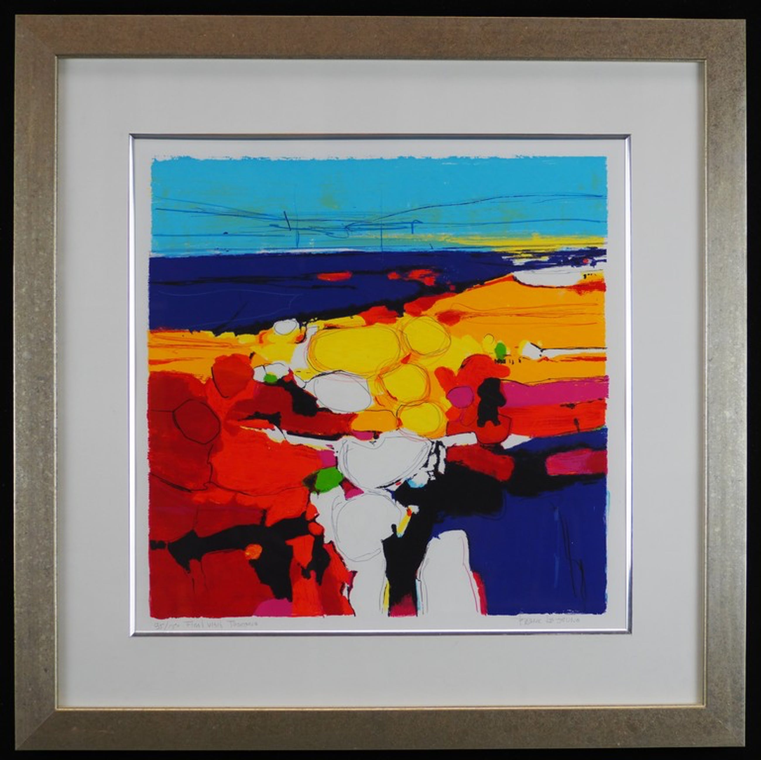 Ingelijste zeefdruk, oplage 95/150. Afmeting 72x72.