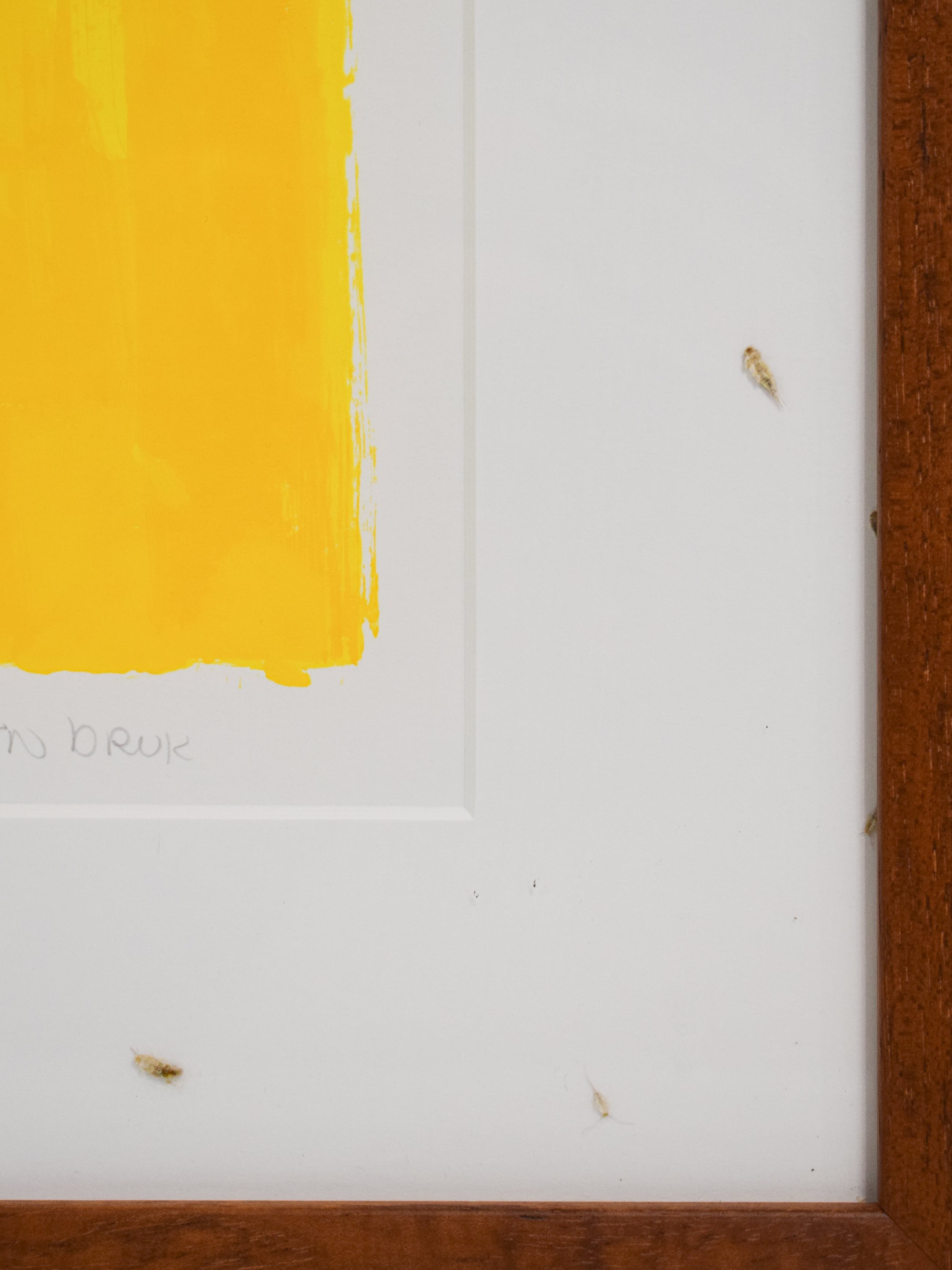 Aangezien het werk uit een bedrijfscollectie komt, kan de lijst wat gebruikssporen overeenkomstig met de leeftijd tonen, deze zijn eenvoudig te verwijderen door de houten lijst licht op te schuren