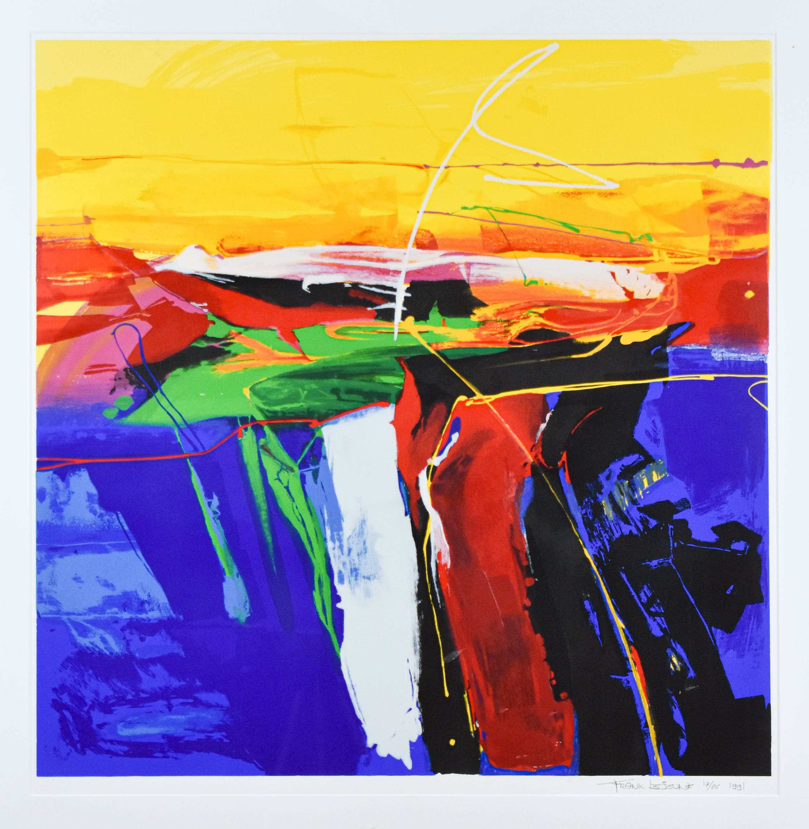 Frank Lejeune, Northampton (Eng. 1952) is autodidact en sinds zijn 30ste werkzaam als zelfstandig kunstenaar. Zijn werk is explosief te noemen. “Het gebeurt allemaal heel snel. Daarom werk ik ook het liefst met acrylverf. Met olieverf kan ik niet doorwerken, omdat het drogingproces zo langzaam gaat. .