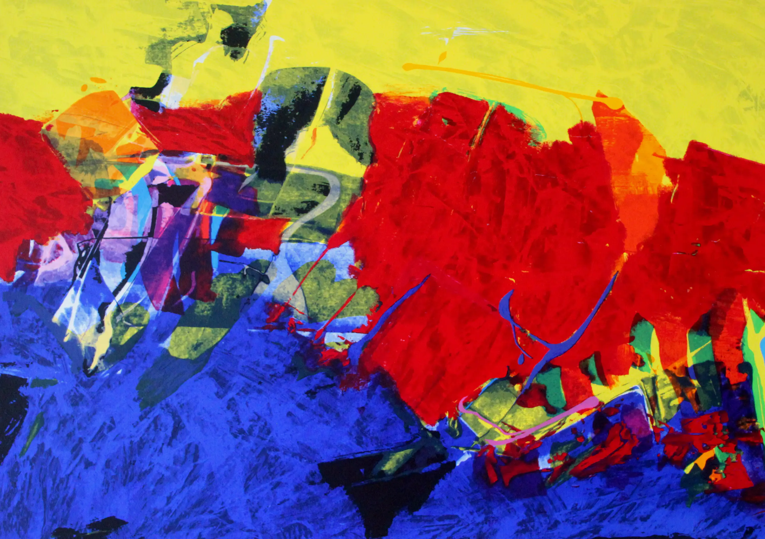 Later wordt de spanning tussen kleur en vorm heviger en er ontstaan overlappende kleuroppervlakken die bijna in maskerachtige taferelen ontaarden. Kenmerkend is ook de periode waarin taalkennis en merknamen hem inspireerden waarbij felle primaire kleuren soms met een transparante witte laag acrylverf worden bedekt.