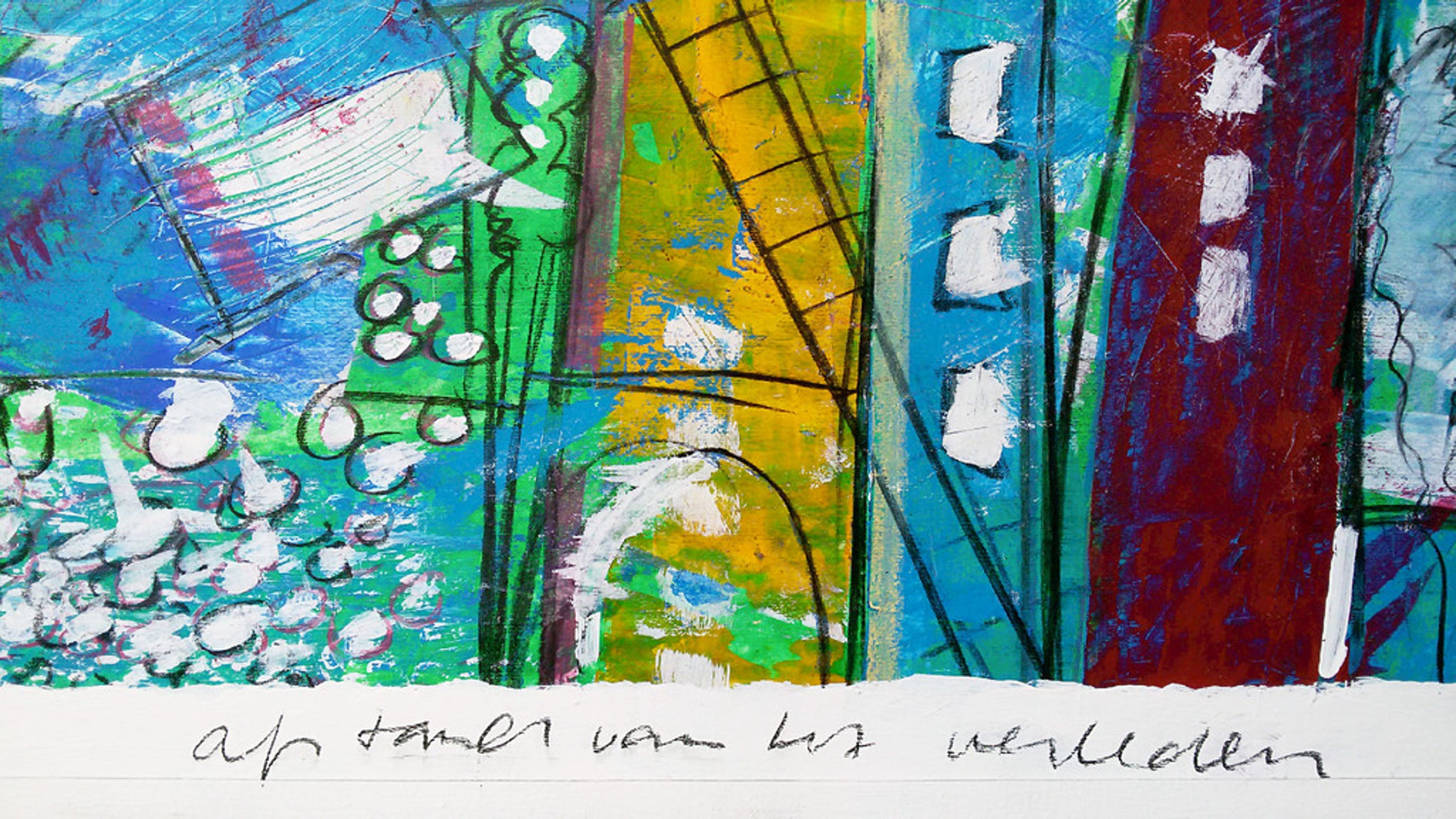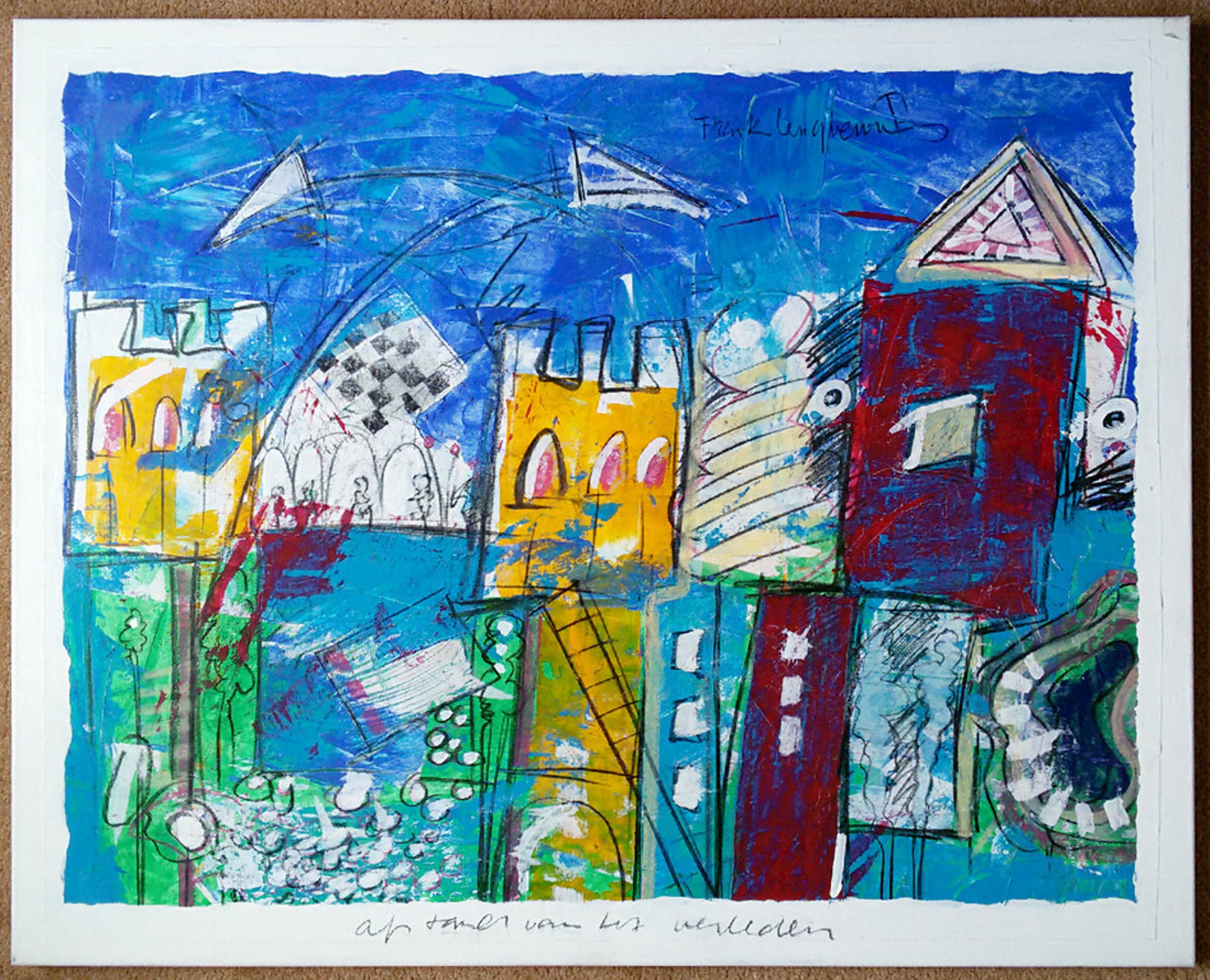 Bijzonder kleurrijk werk van Frank Lengvenius. Gemengde techniek op doek, gesigneerd rechtsboven. In uitstekende conditie. Achterop nog een sticker met een prijs van 1502 euro.