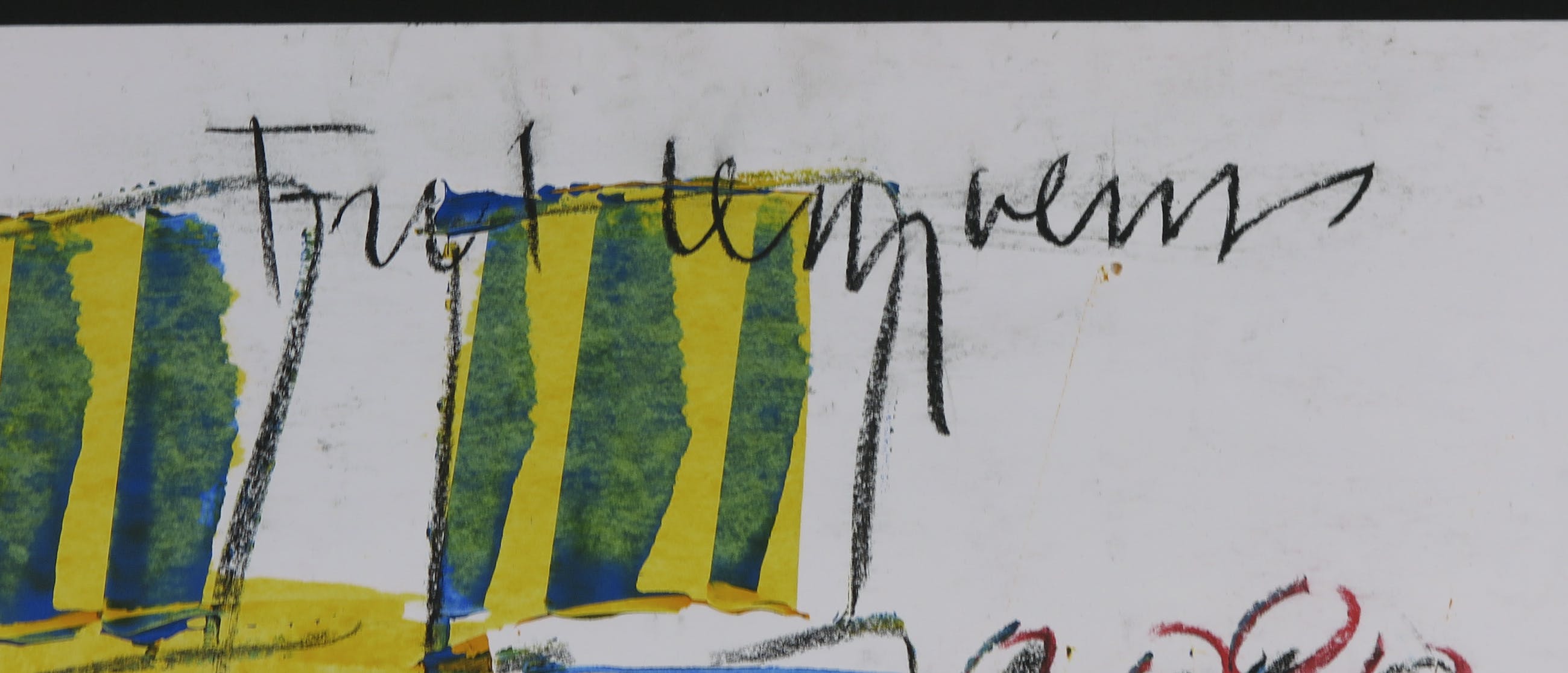 Passe-partout/lijsten: Beschadigingen aan lijsten worden niet beschreven. Indien een werk achter glas is ingelijst en het glas kapot is, zal dit wel vermeld worden. Passe-partouts worden op geen enkele manier gegarandeerd en ook niet altijd meegezonden. Alleen als een werk niet uit het passe-partout te halen is, zal dit vermeld worden.