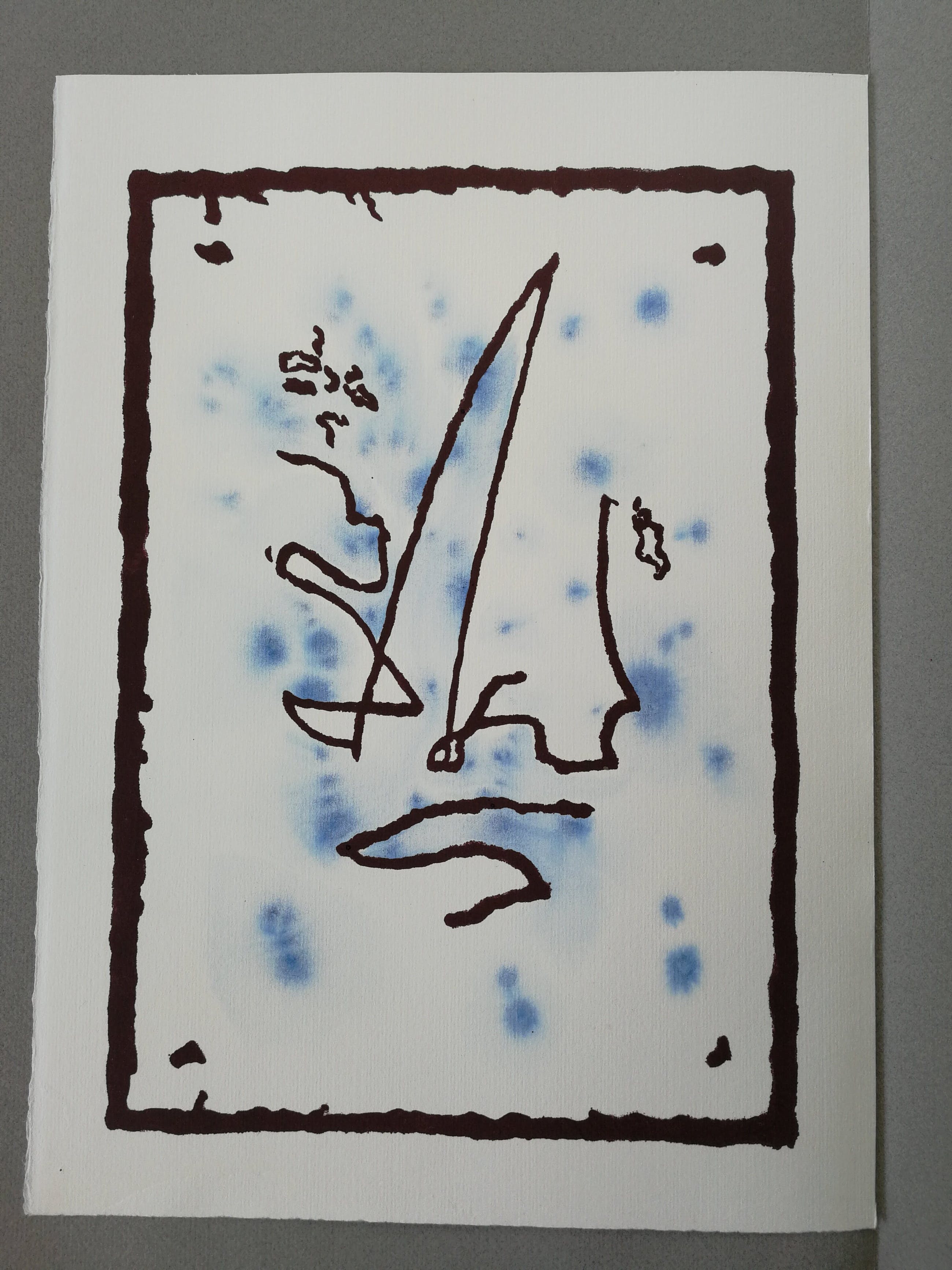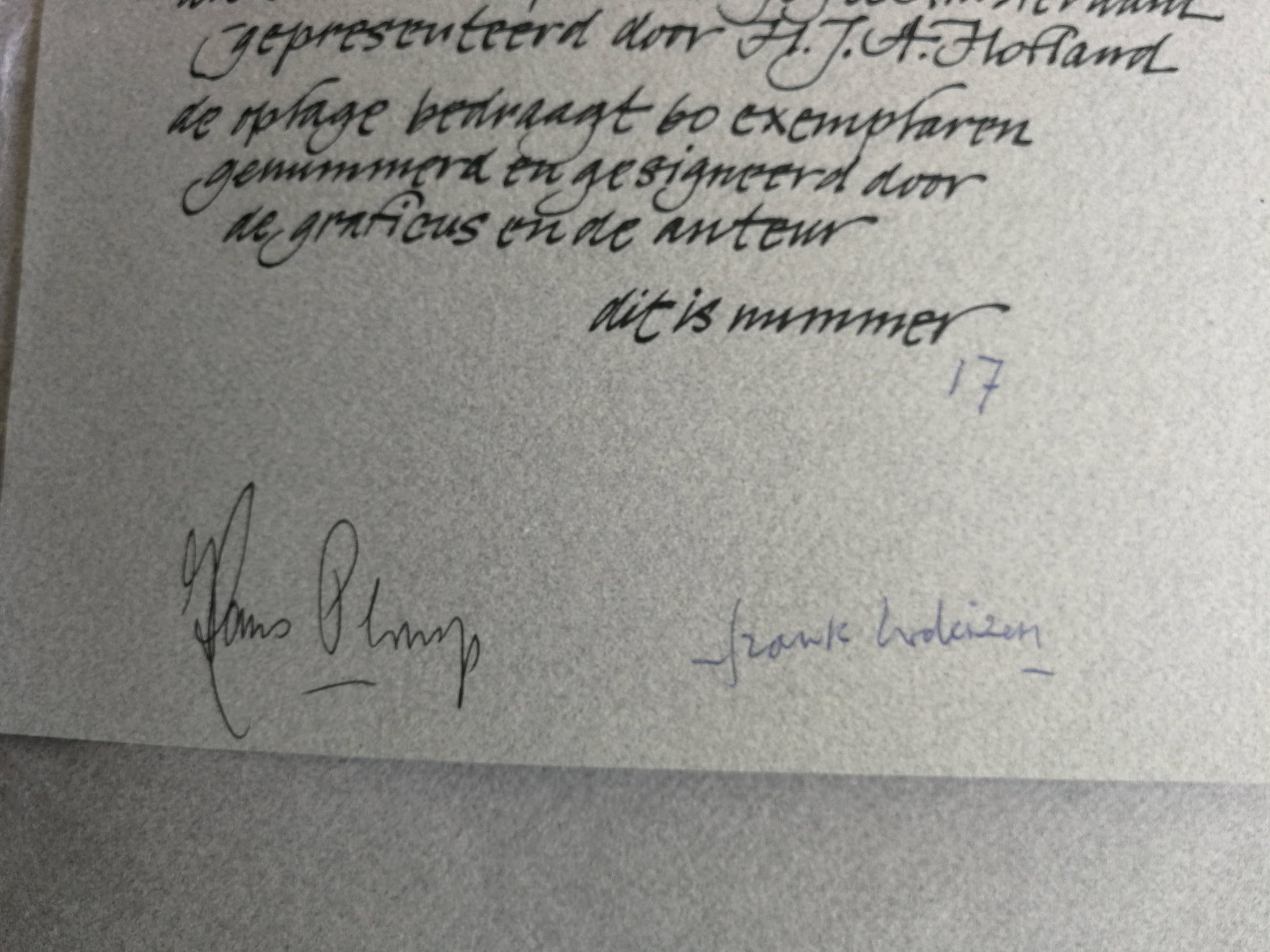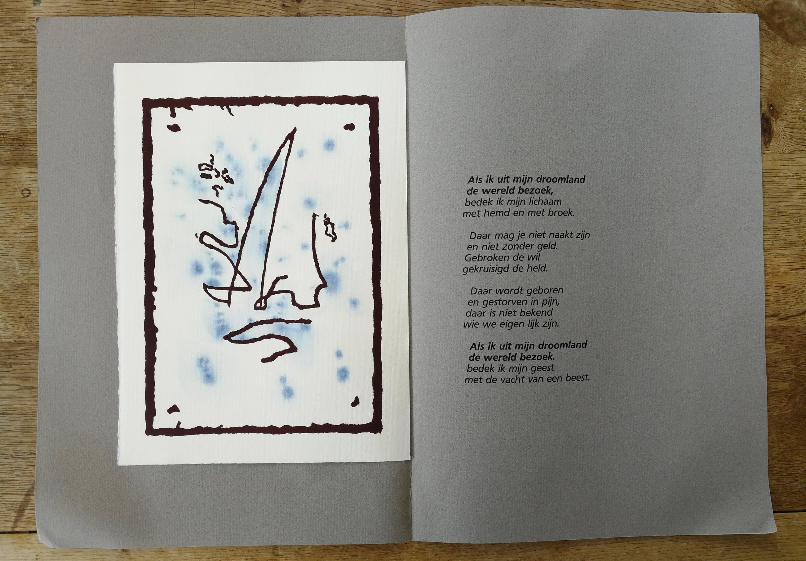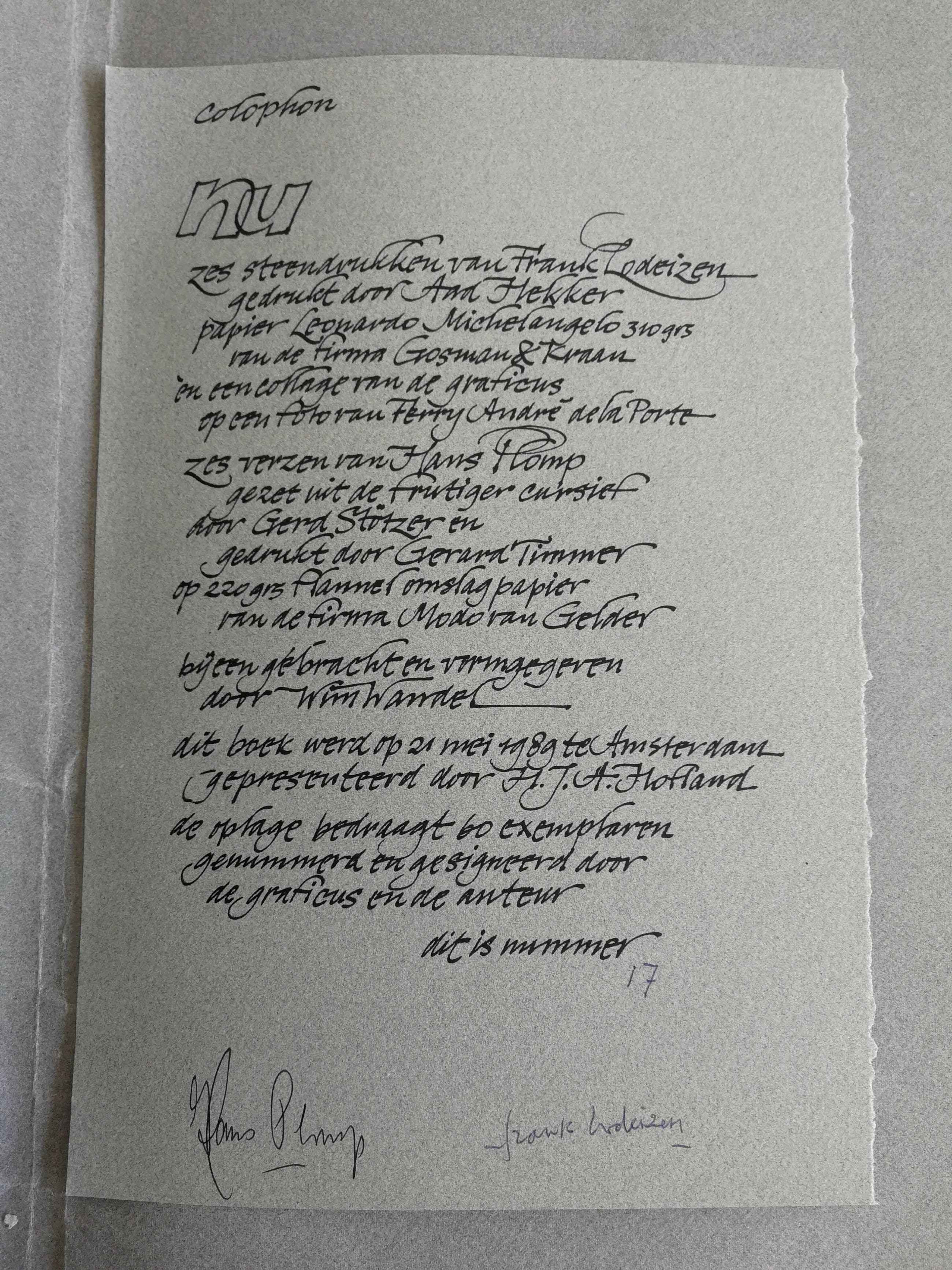 Mooie litho. Uit map Nu ism Hans Plomp. Gesigneerd op los colofon. (Wordt niet meegeleverd.) Opgeplakt op blad. Met gedicht. No 17 van 60 exemplaren. Blad 32x47cm Werk 26x35cm Zie foto's.